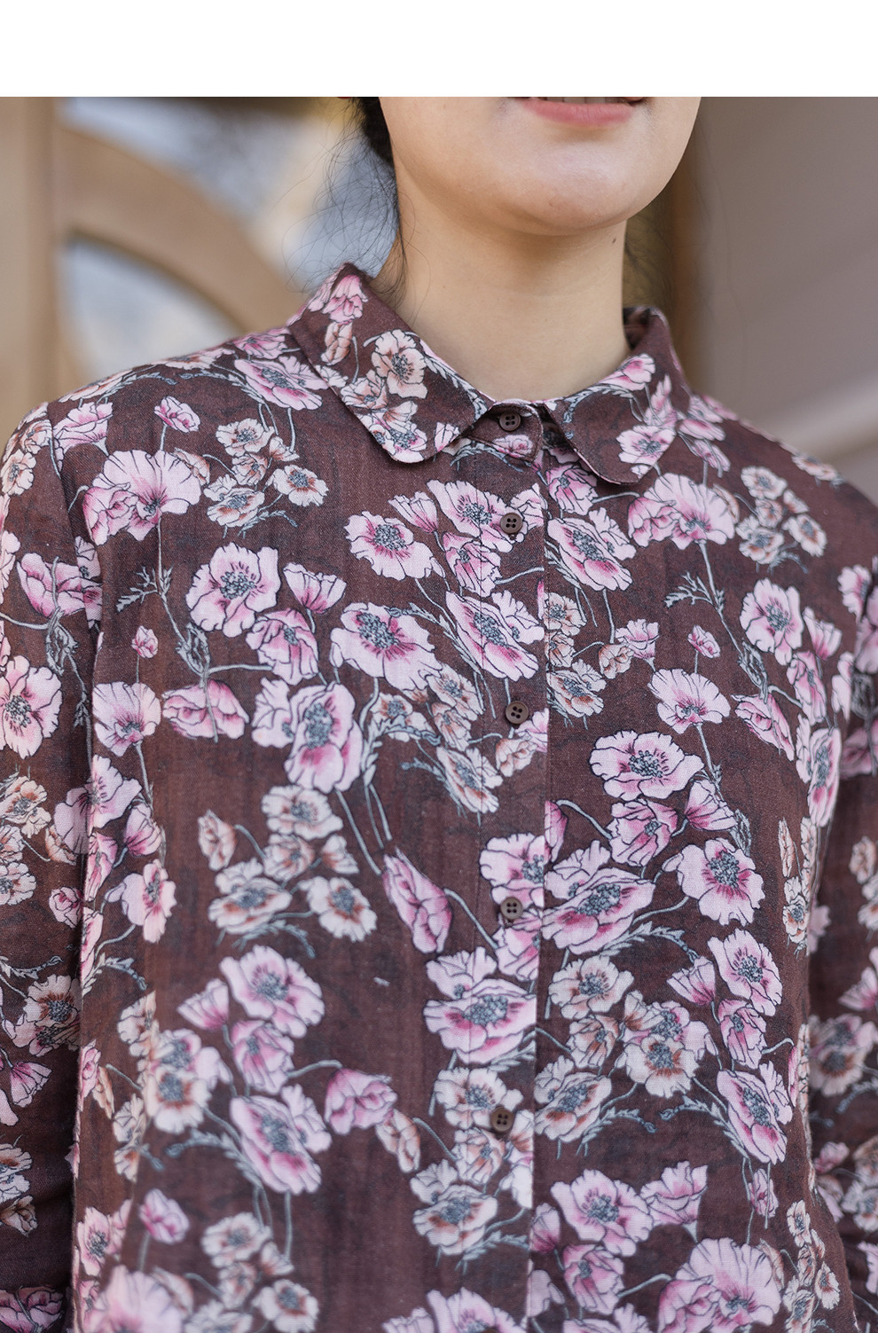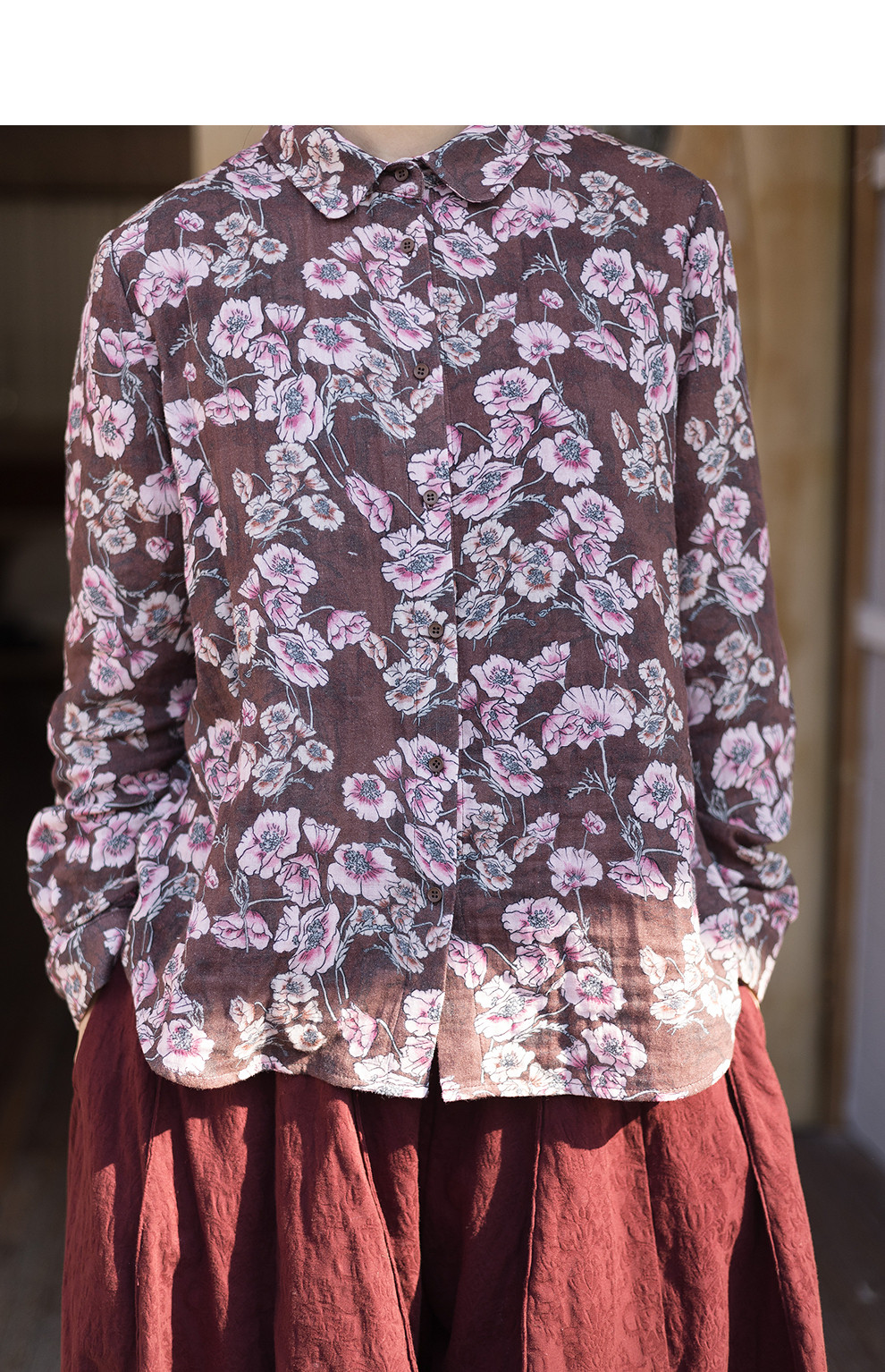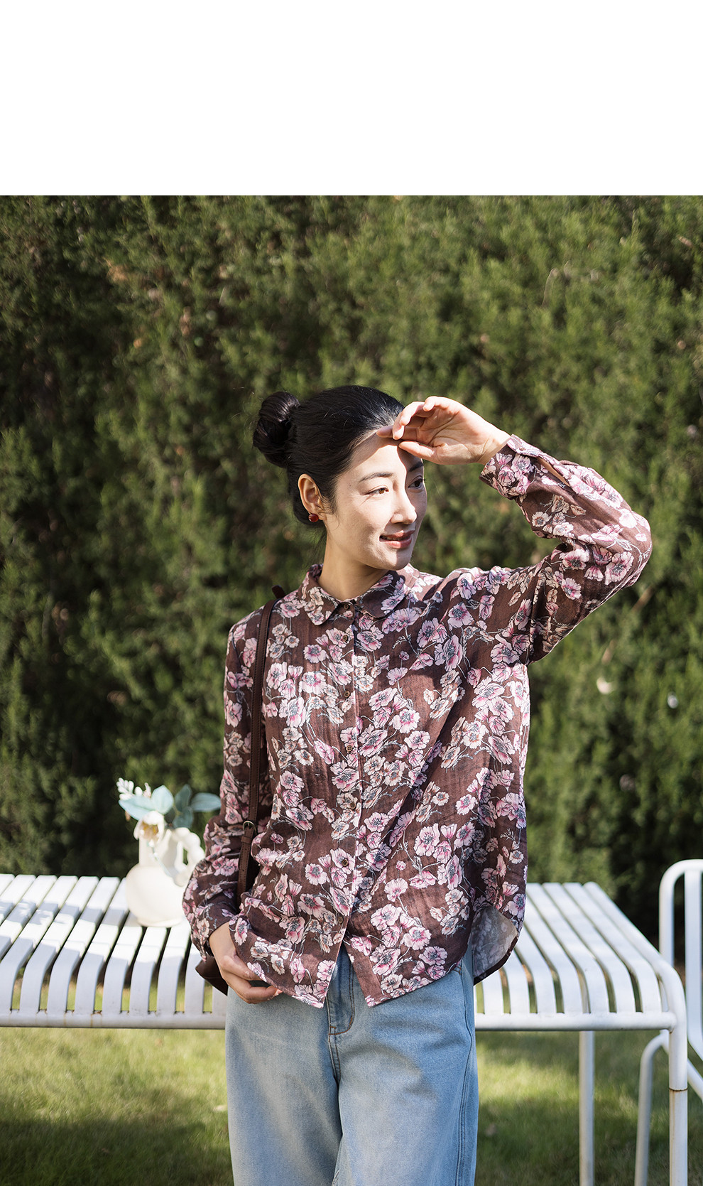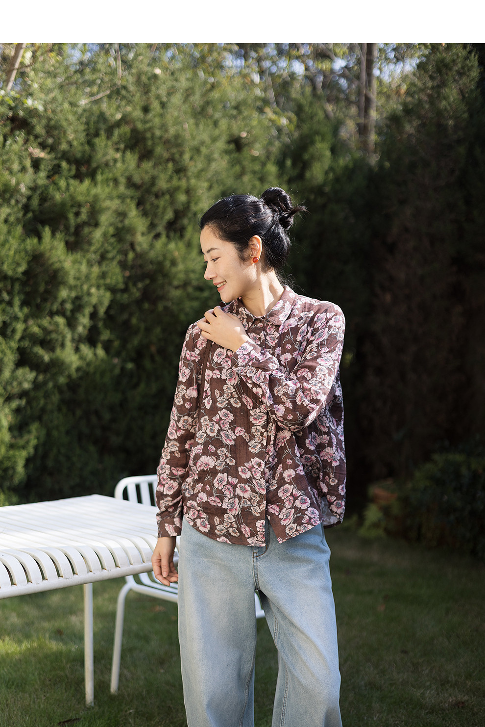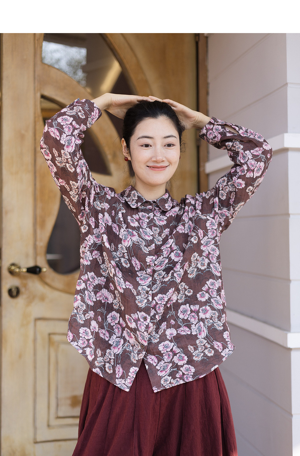 绽放029朵/"马上笑开花"衬衫·双纱微皱棉感花卉印花长袖衬衫女春