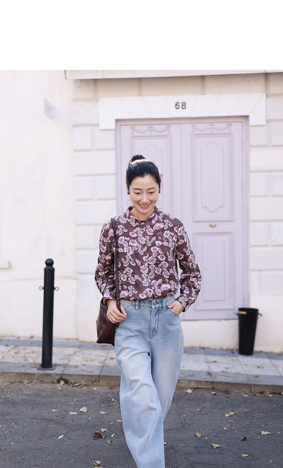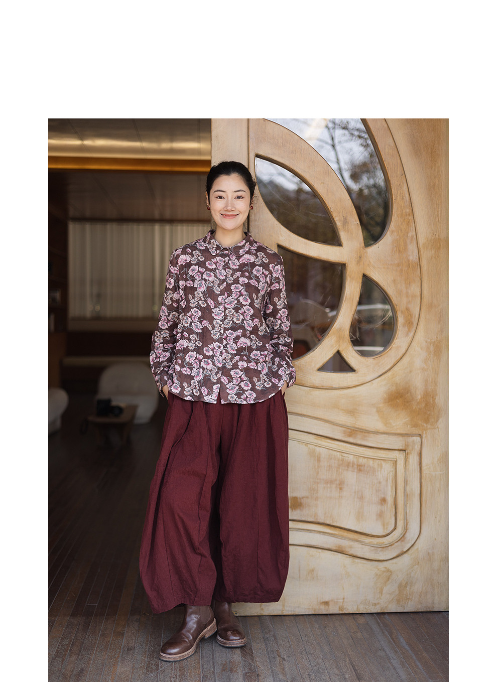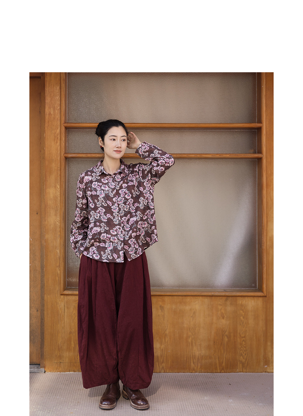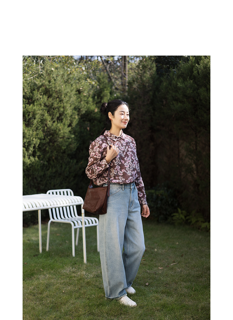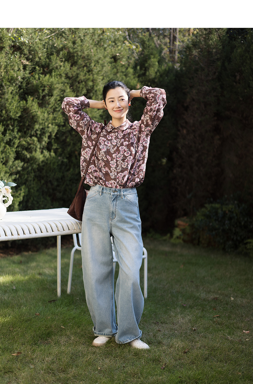 绽放029朵/"马上笑开花"衬衫·双纱微皱棉感花卉印花长袖衬衫女春