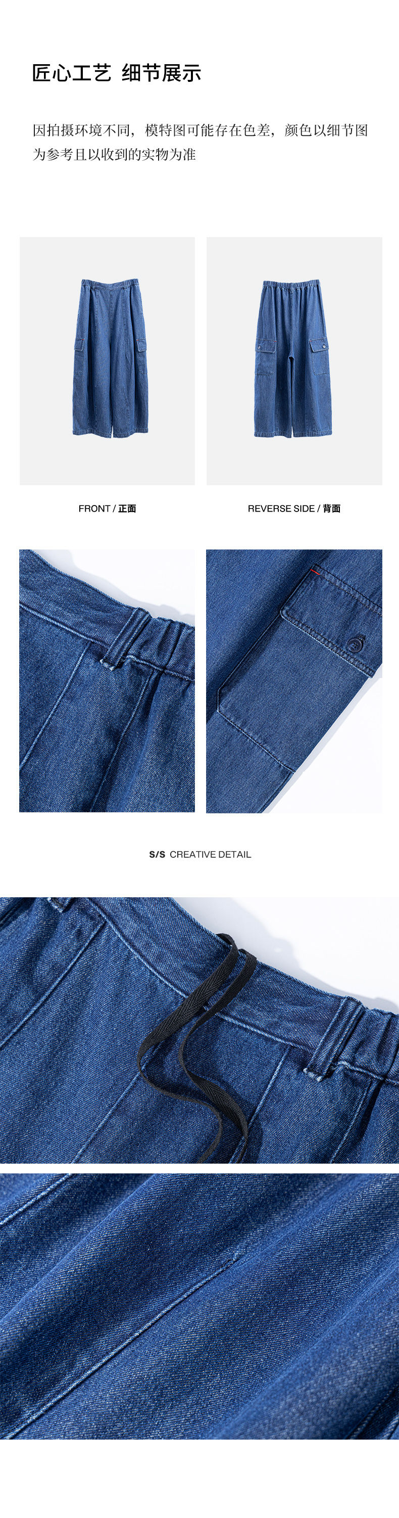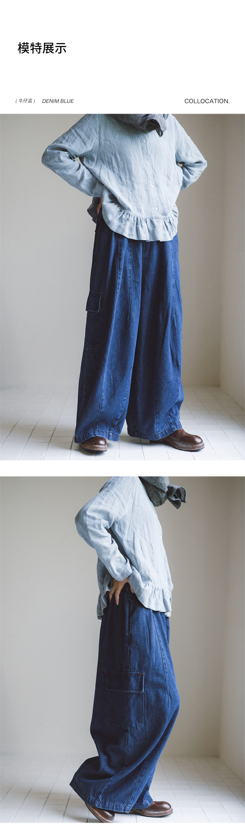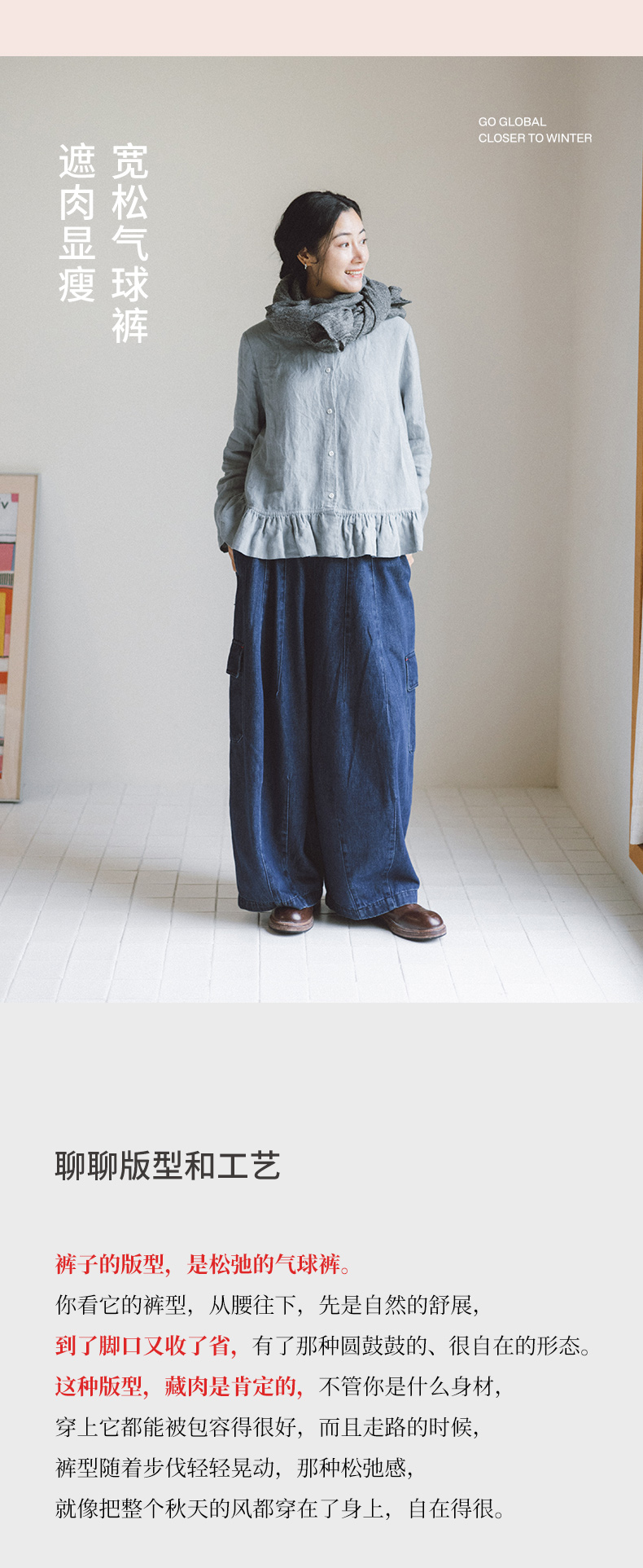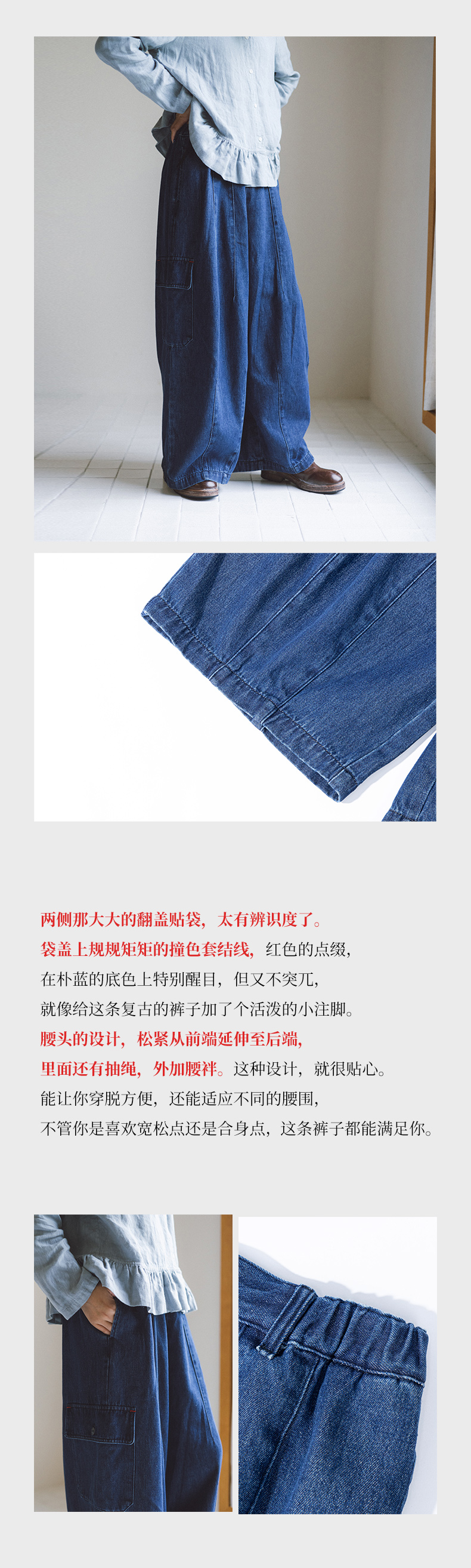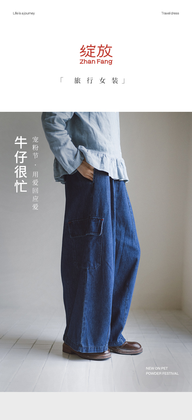 绽放798朵/牛仔很忙·立体裁剪半腰松紧气球感牛仔裤复古显瘦长裤