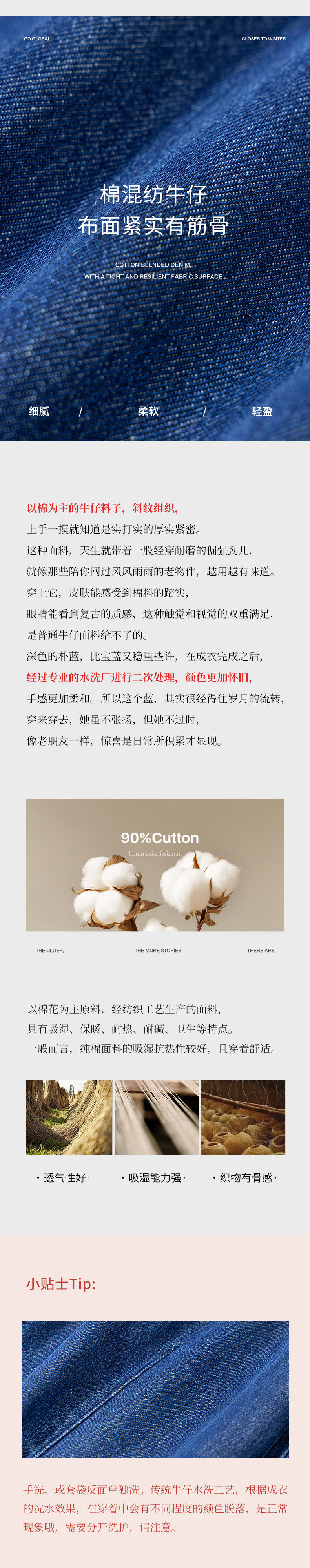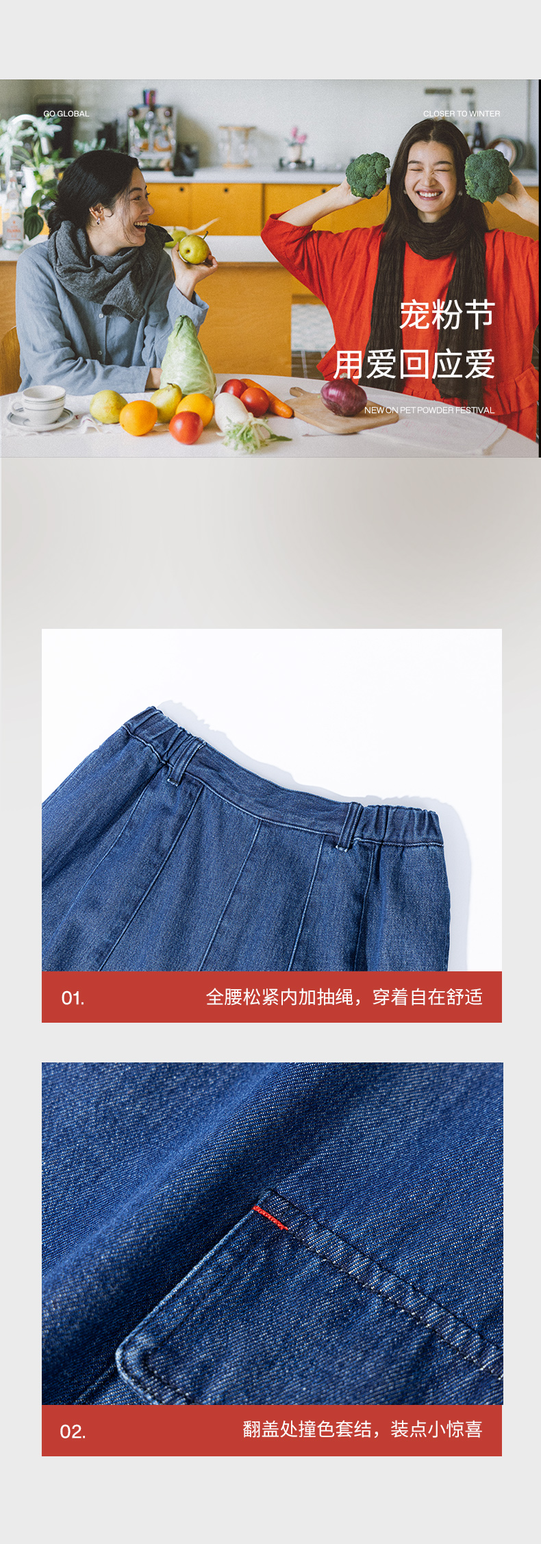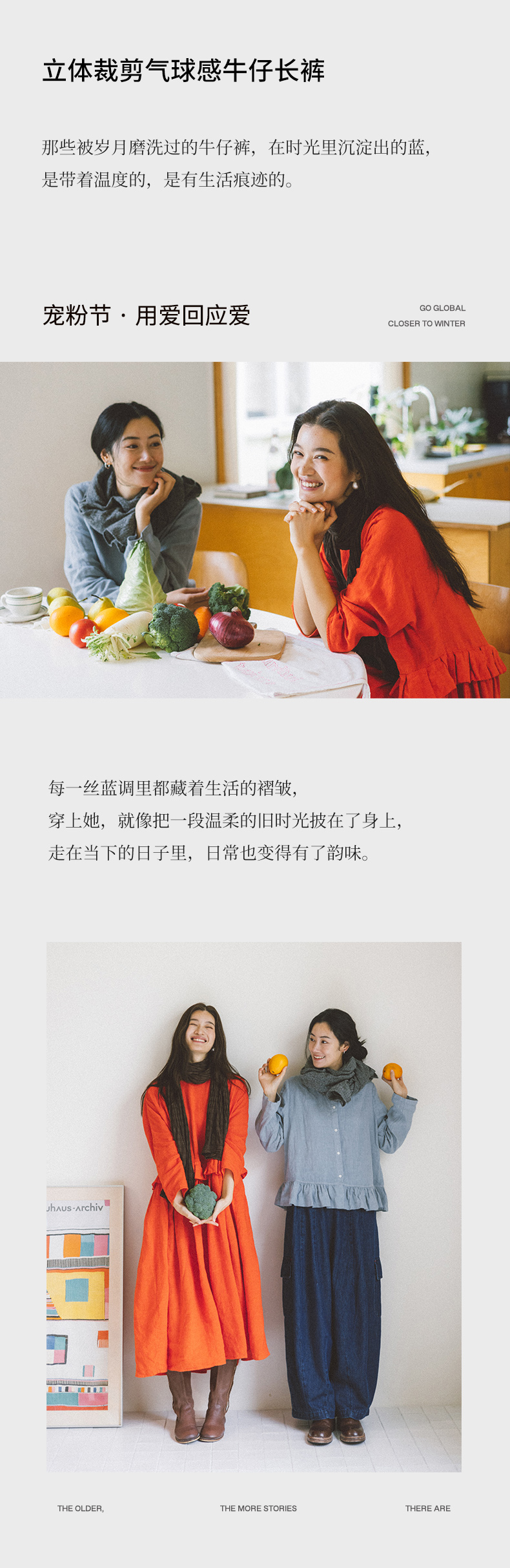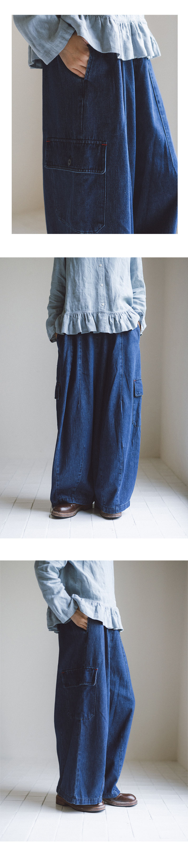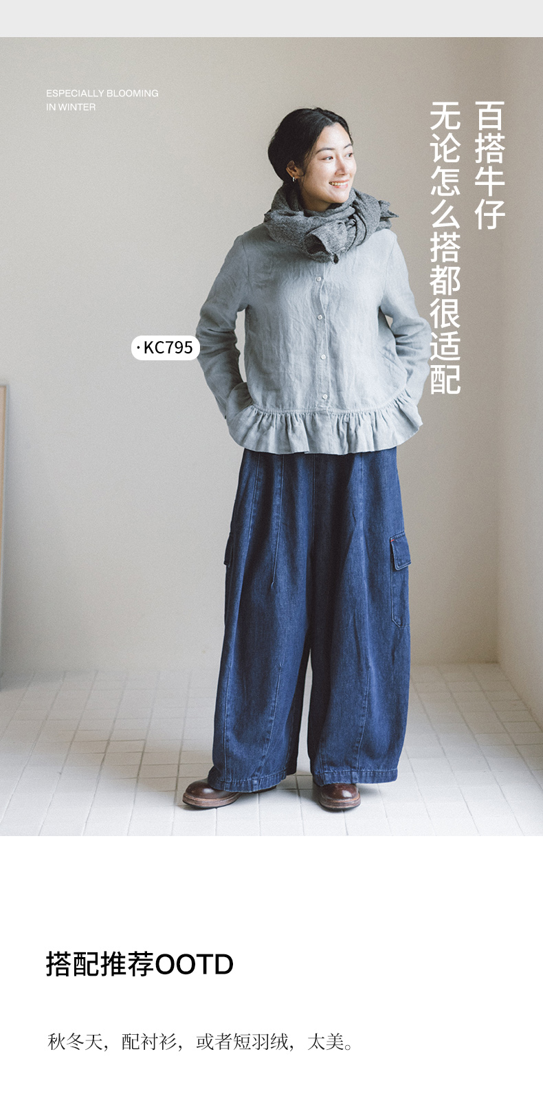 绽放798朵/牛仔很忙·立体裁剪半腰松紧气球感牛仔裤复古显瘦长裤