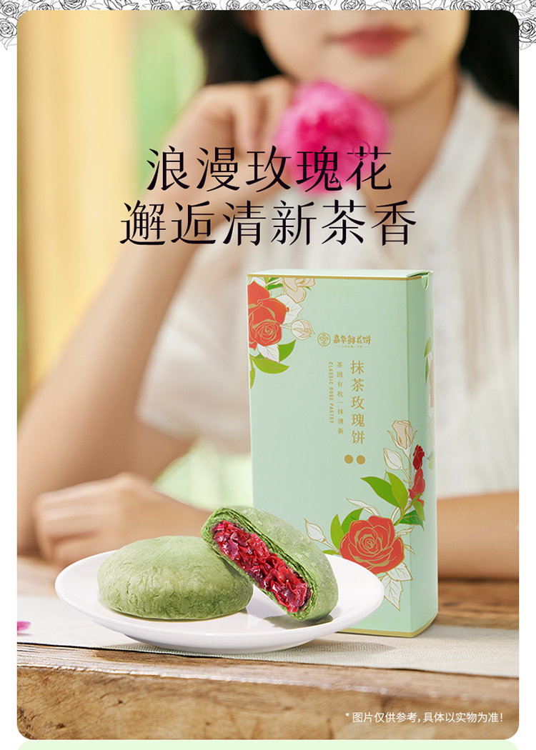 嘉华鲜花饼 抹茶玫瑰鲜花饼5枚装礼盒250g