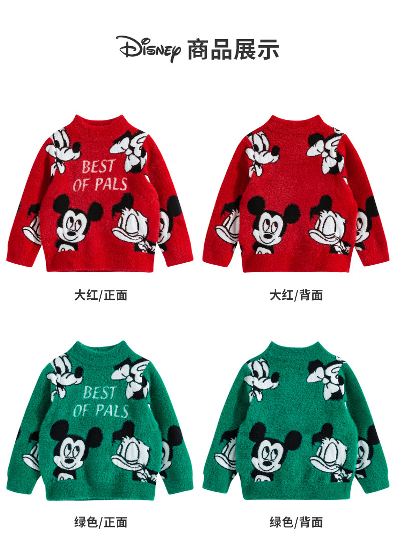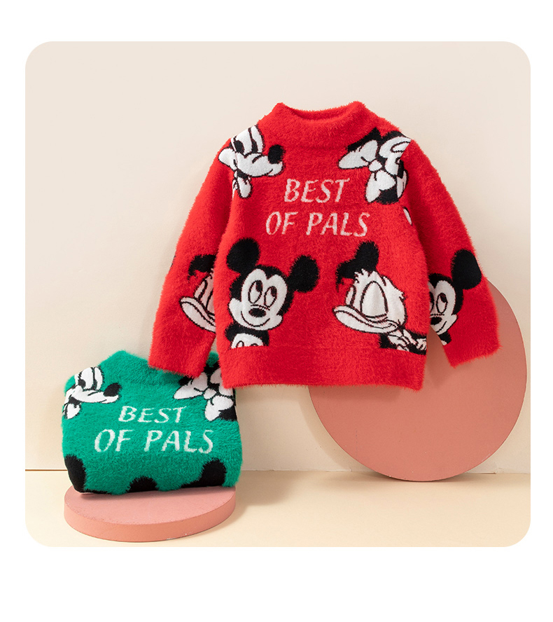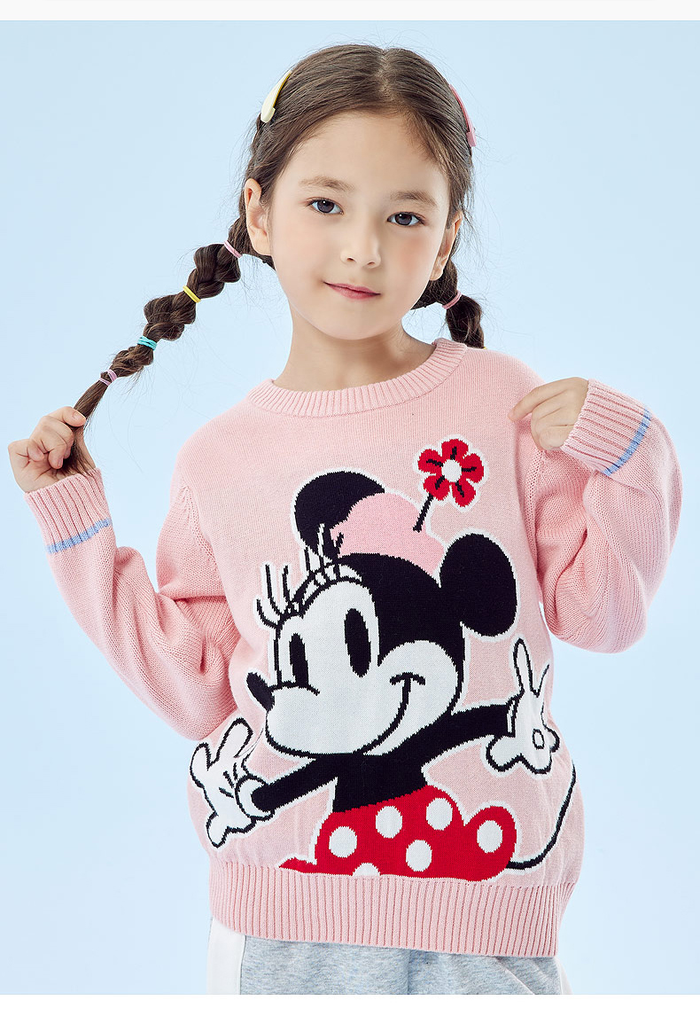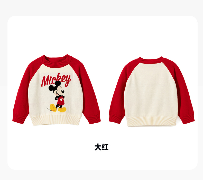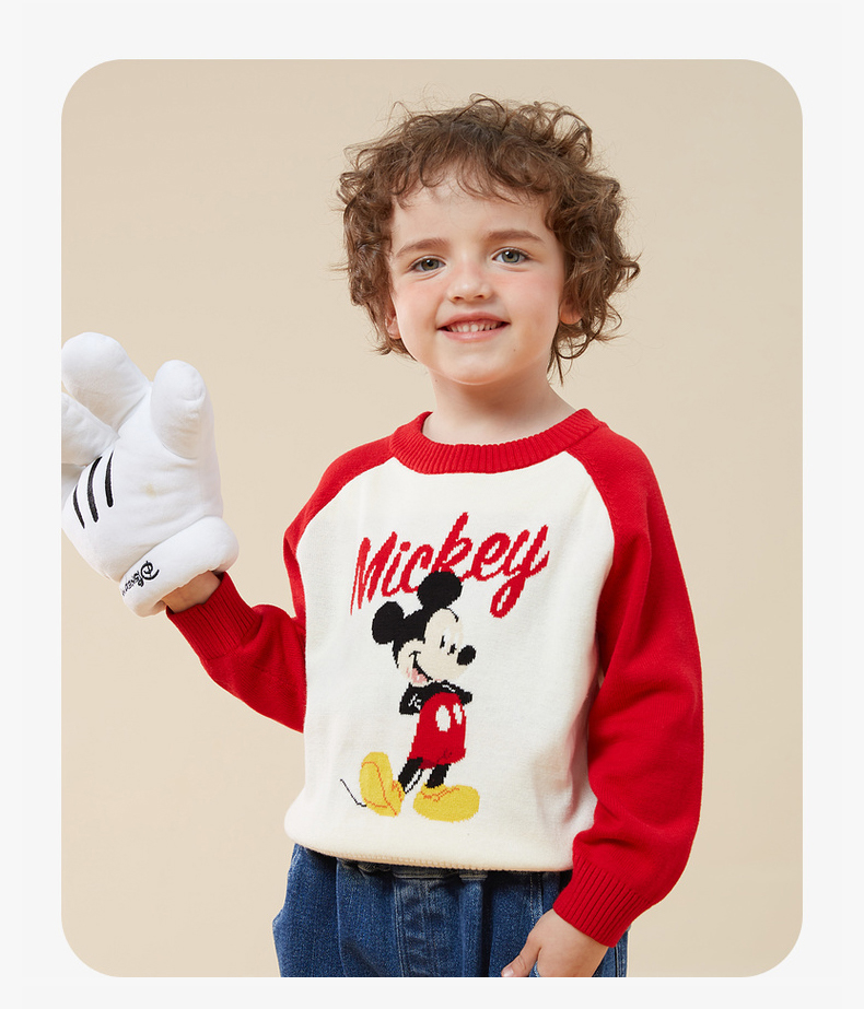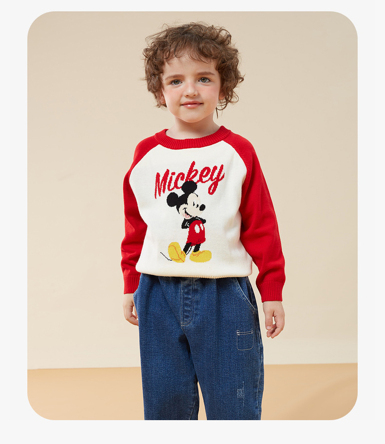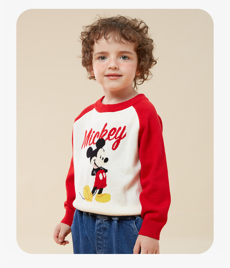 迪士尼童装秋冬新款男女童针织套头上衣宝宝米奇卡通保暖毛衣