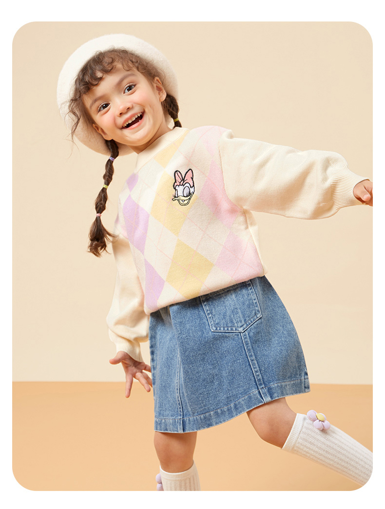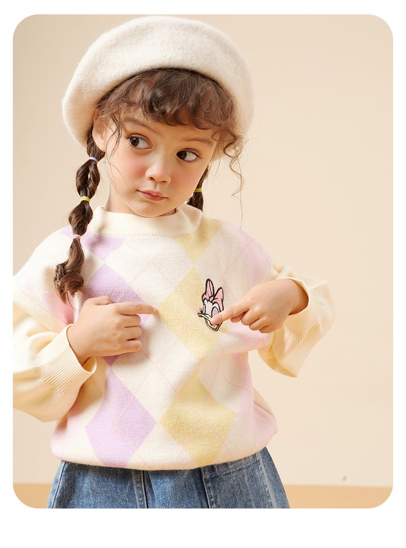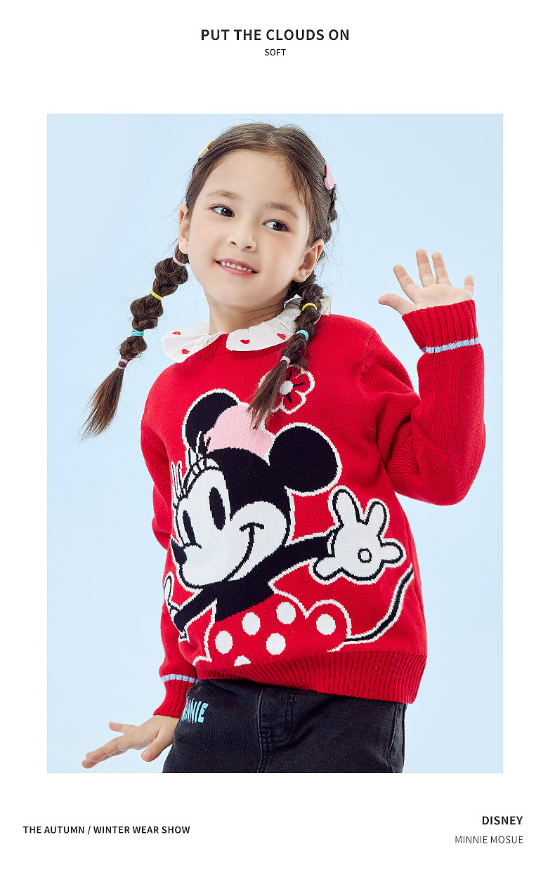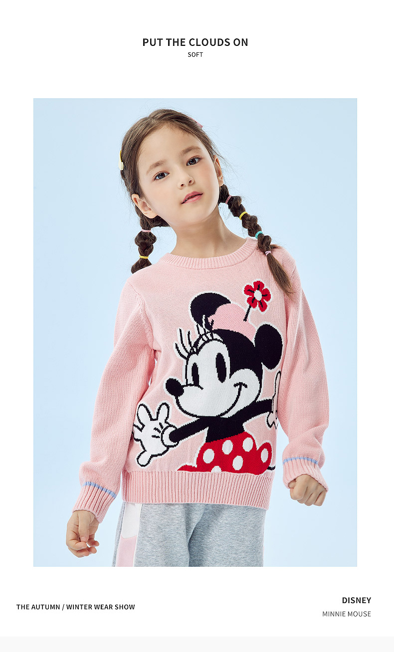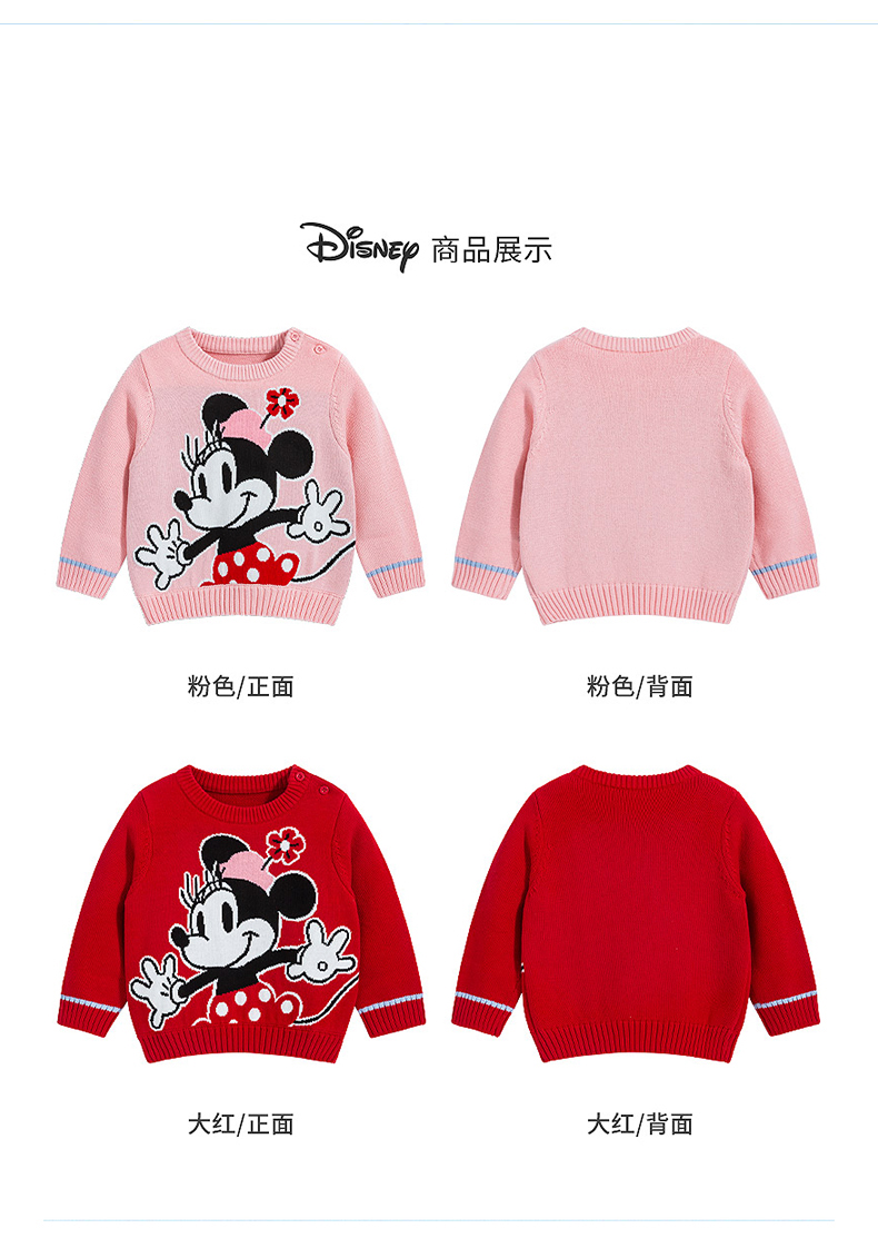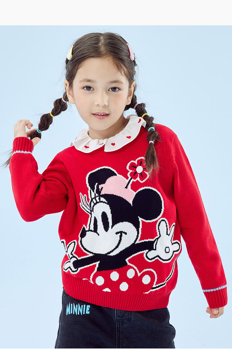 迪士尼童装秋冬新款男女童针织套头上衣宝宝米奇卡通保暖毛衣