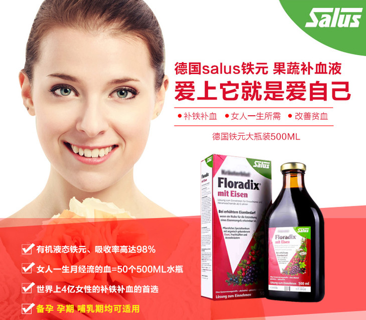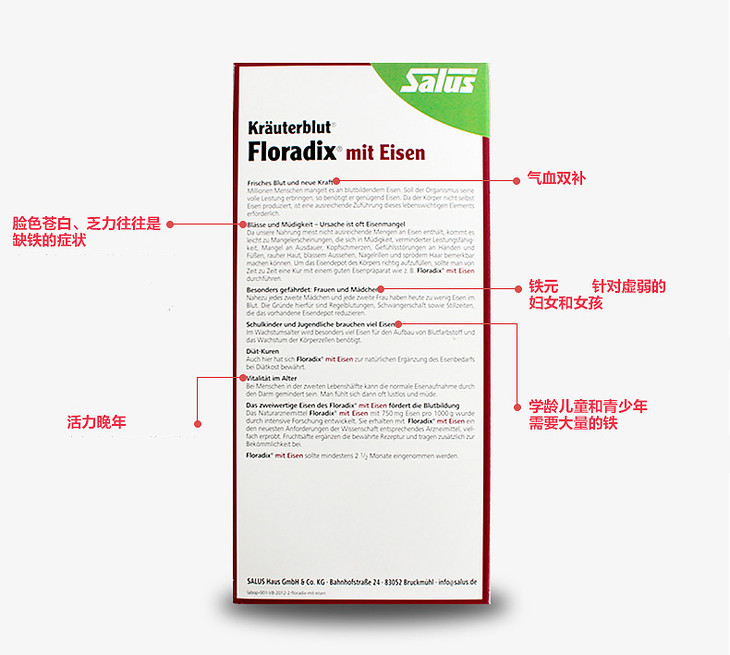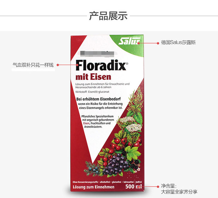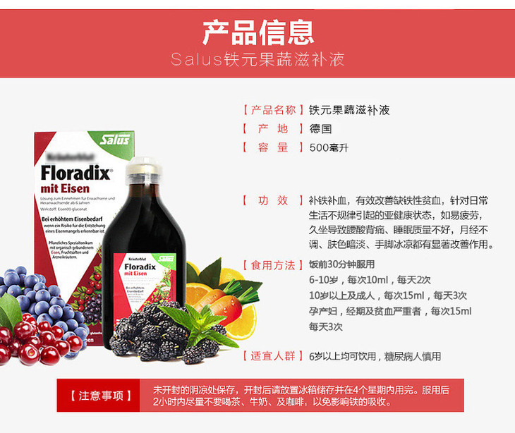 德国Floradix iron 铁元补铁补血 500ml红色