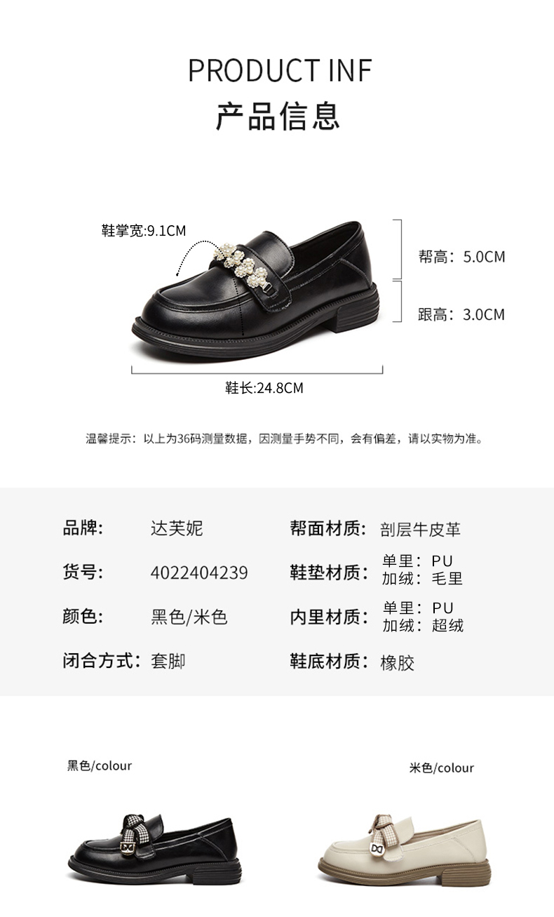 DAPHNE达芙妮一脚蹬甜美乐福鞋 | 经典大头鞋型,时尚百搭休闲 商品图4