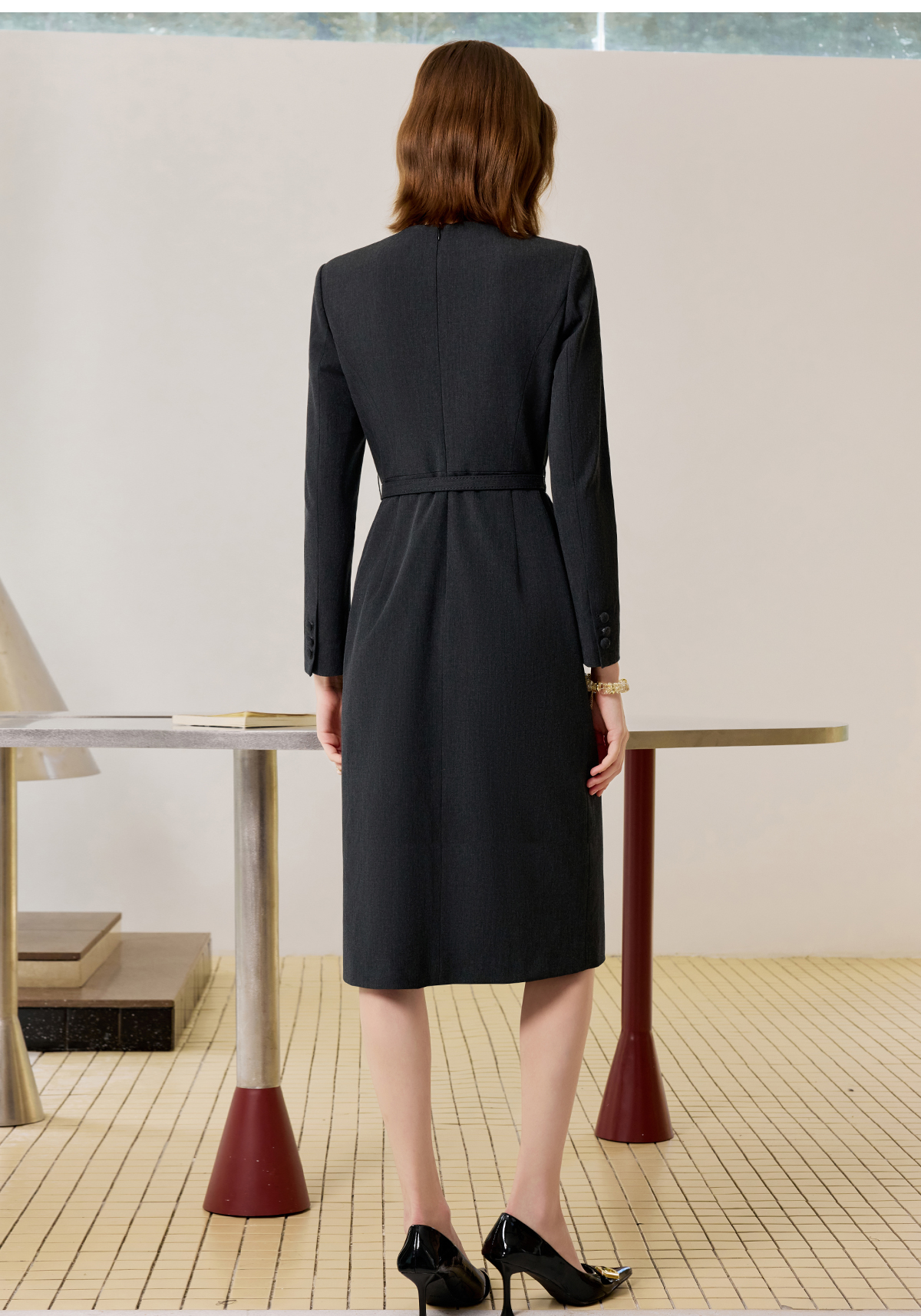艾尚臣深灰色气质连衣裙女高级感早秋收腰职业套裙气质女神范正装