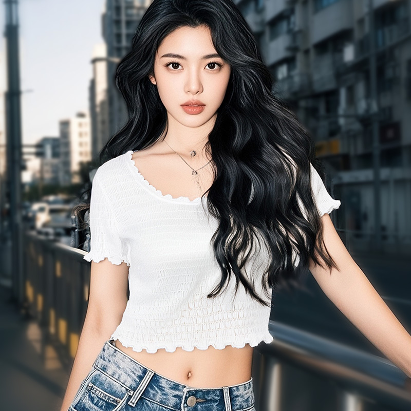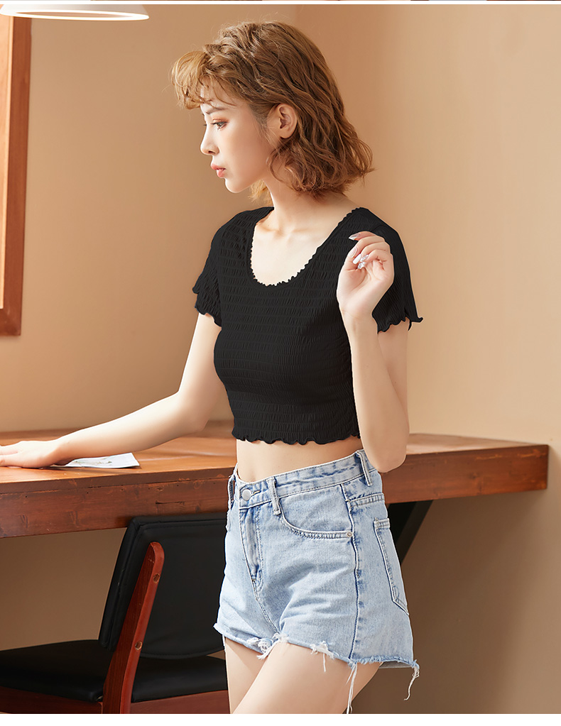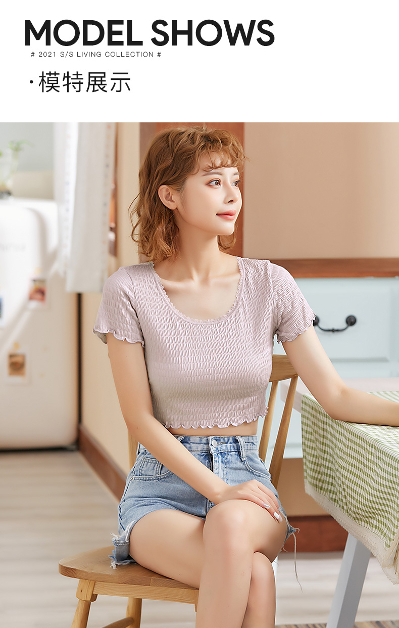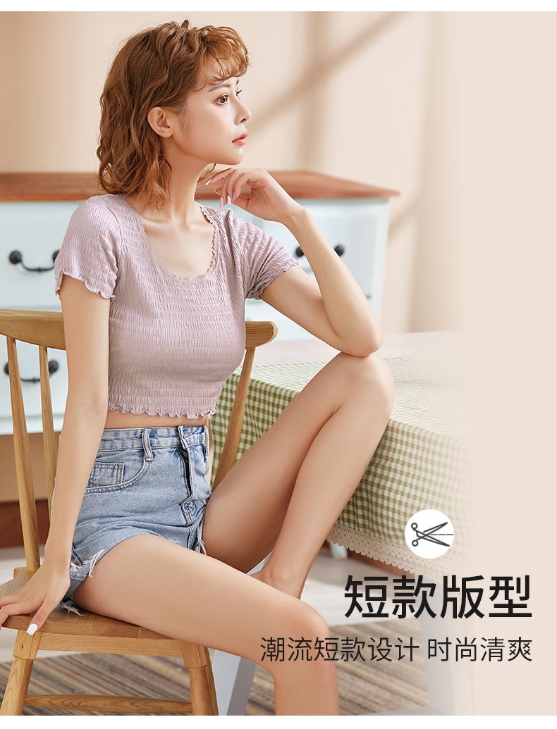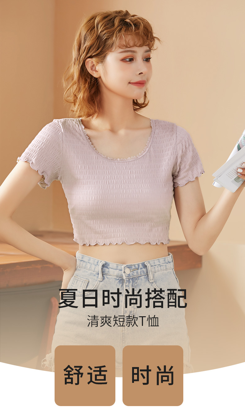 C2-润微正肩短袖t恤女夏季美式辣妹风高腰露脐短款紧身打底修身上衣 梦园岁月