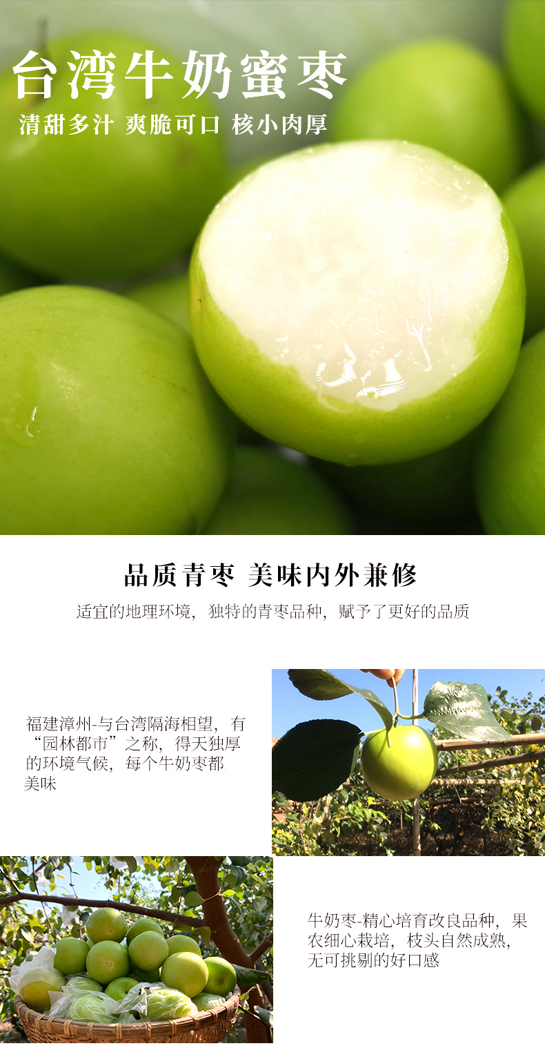 1.贵妃枣是青枣的一个改良品种,外皮圆润光滑,并非每个果都酷似苹果,偏正圆果/偏椭圆果子都爽脆鲜甜哦,介意者慎拍