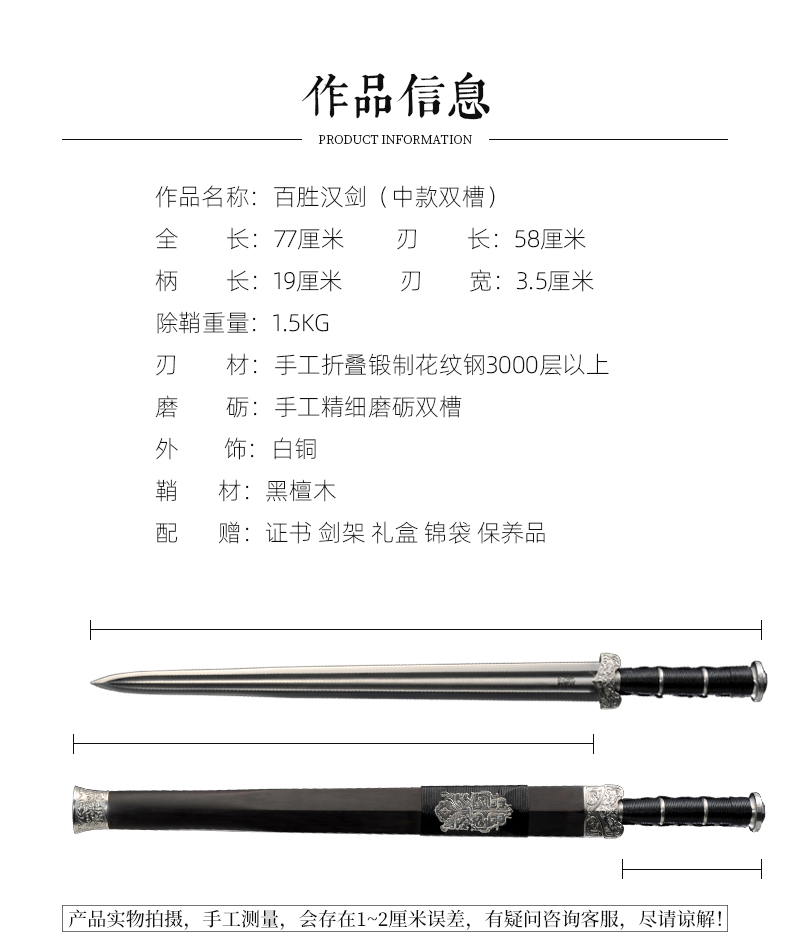 百胜汉剑 龙泉沈广隆宝剑 镇宅礼品剑收藏剑sgl-6023 未开刃