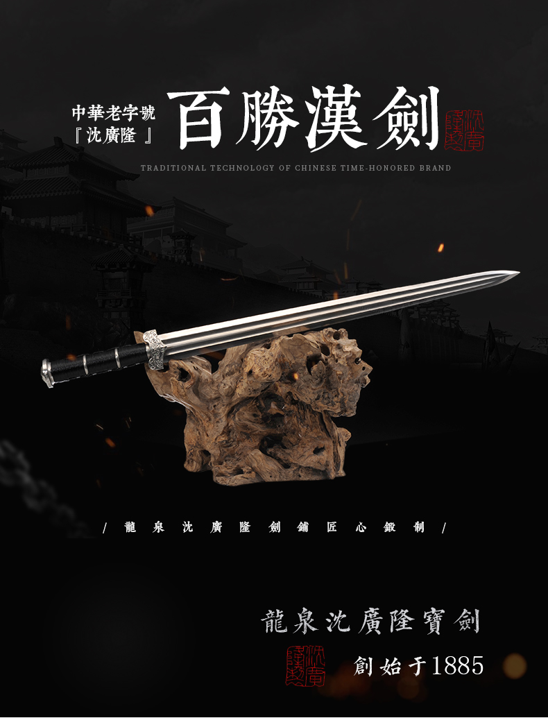 - 龙泉沈广隆剑舖创始于1885年(清光绪)位于浙江省龙泉市,是当地唯一一家“子承父业”一脉相承的中华老字号宝剑生产企业,是国家级非物质文化遗产龙泉宝剑项目保护单位,并以“天下第一剑”闻名于海内外....