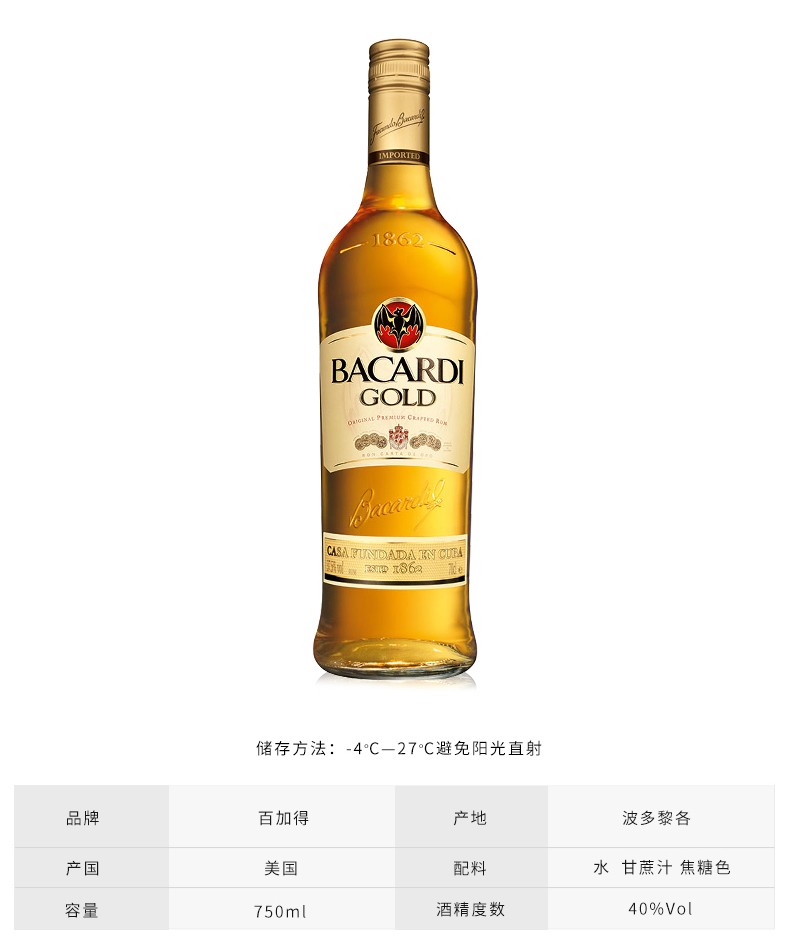 百加得金朗姆酒750ml