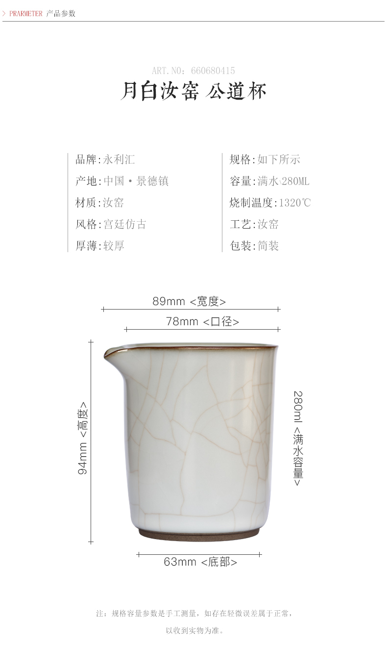 永利汇月白公道杯分茶器开片景德镇陶瓷日式功夫茶具零配件汝窑