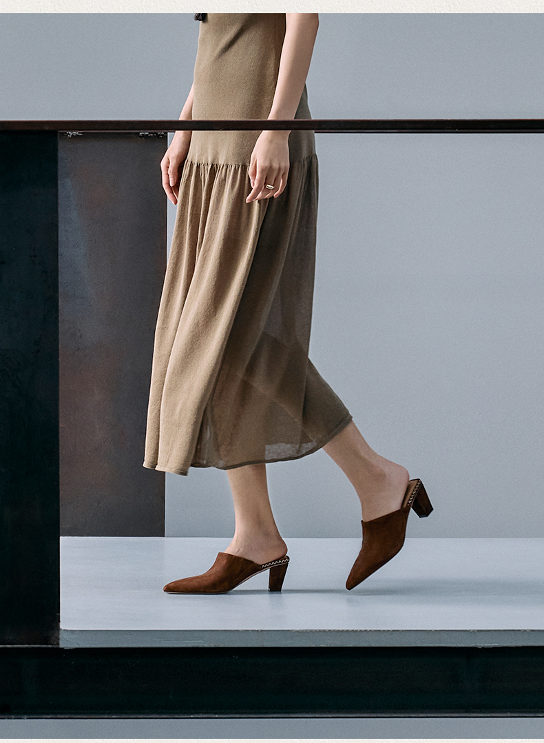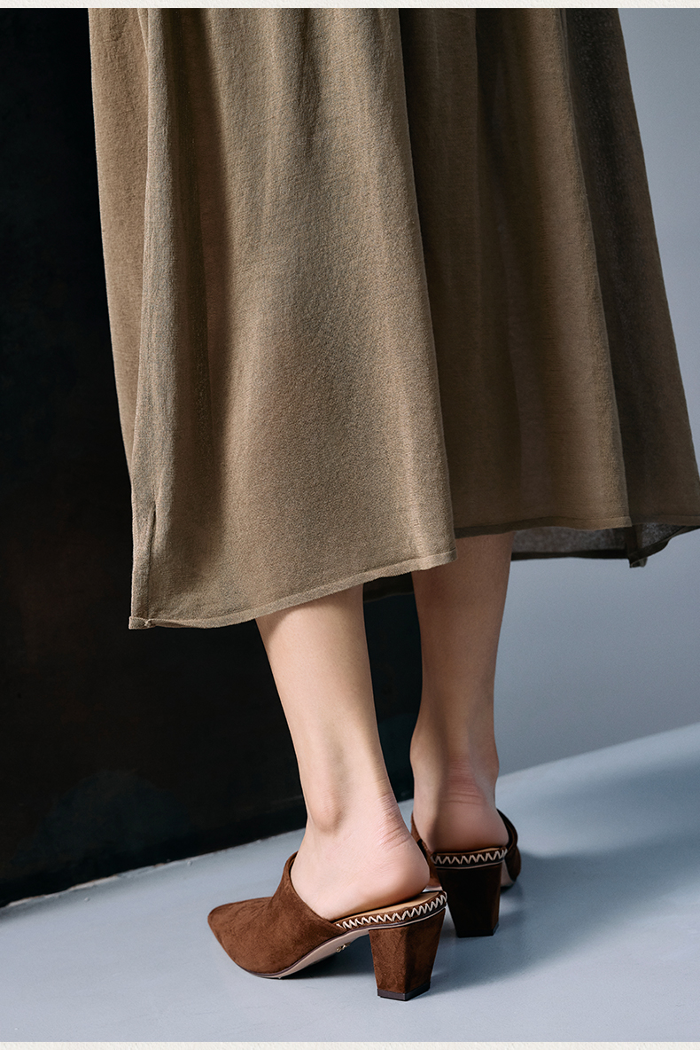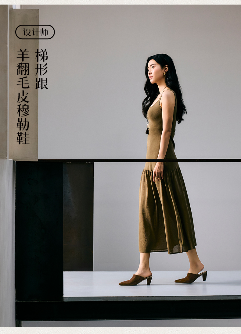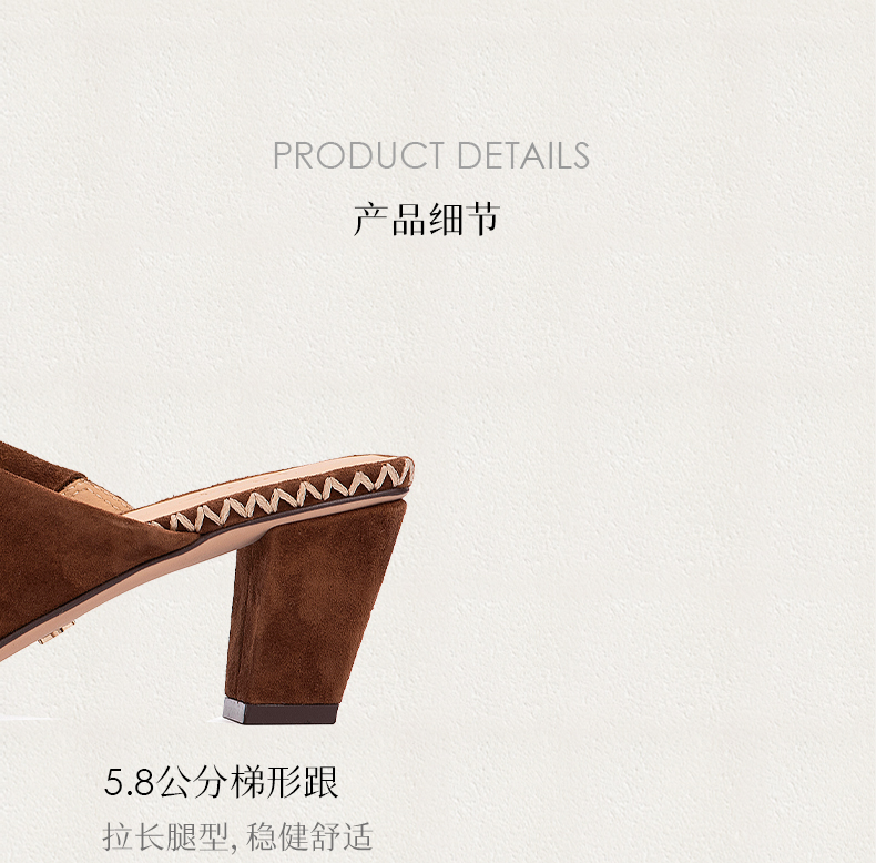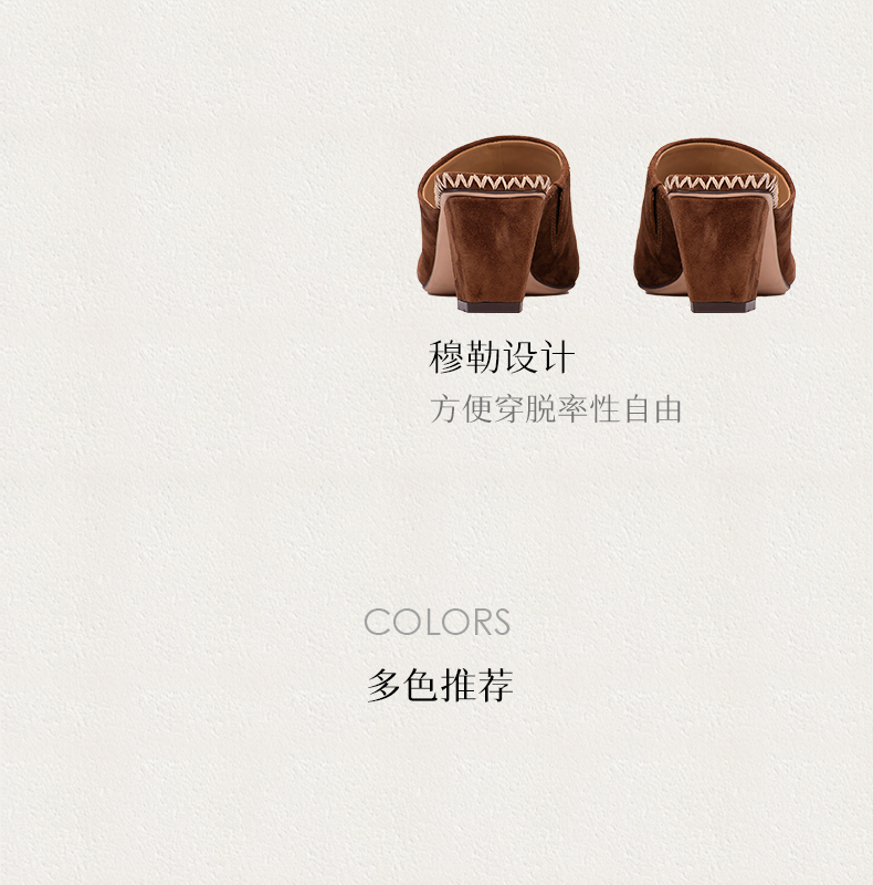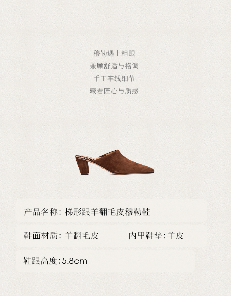 heelz设计师鞋履 | 梯形跟羊反绒穆勒鞋 5.8公分