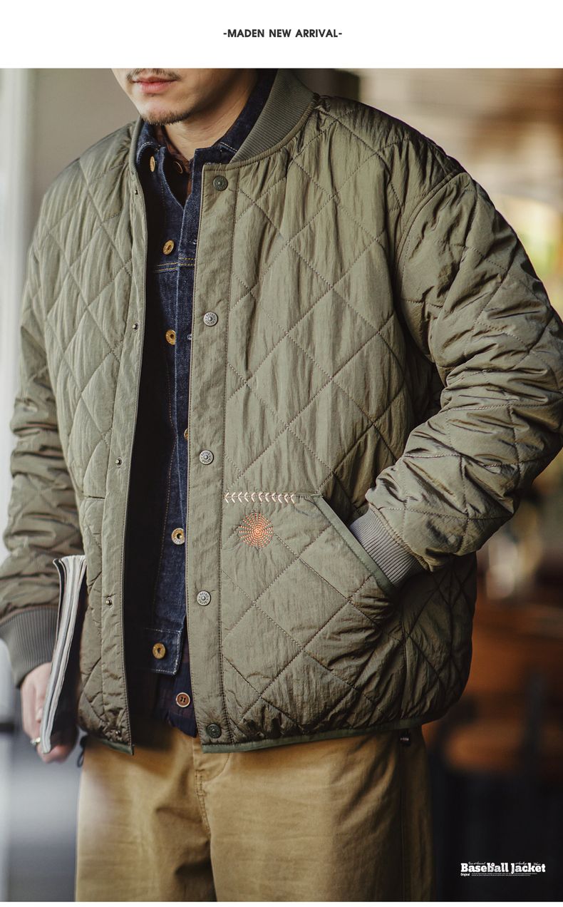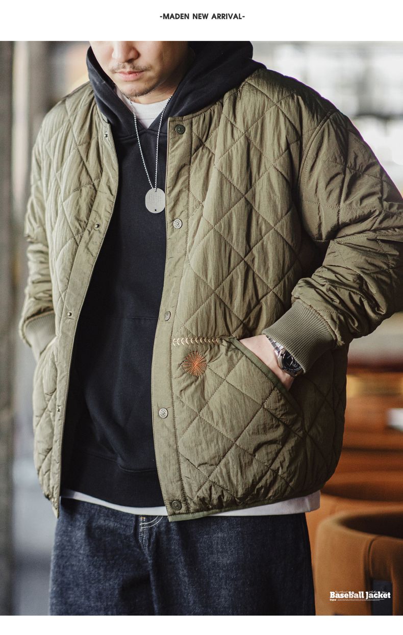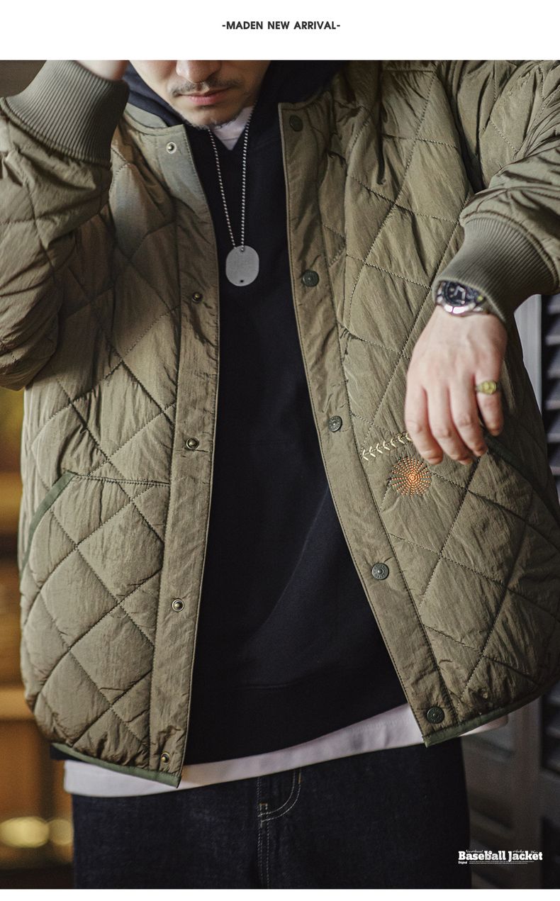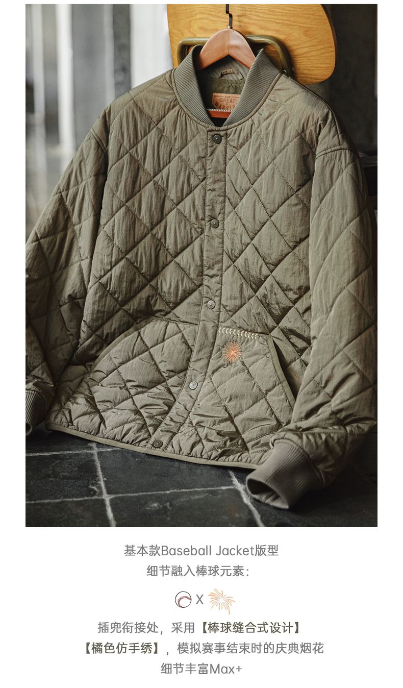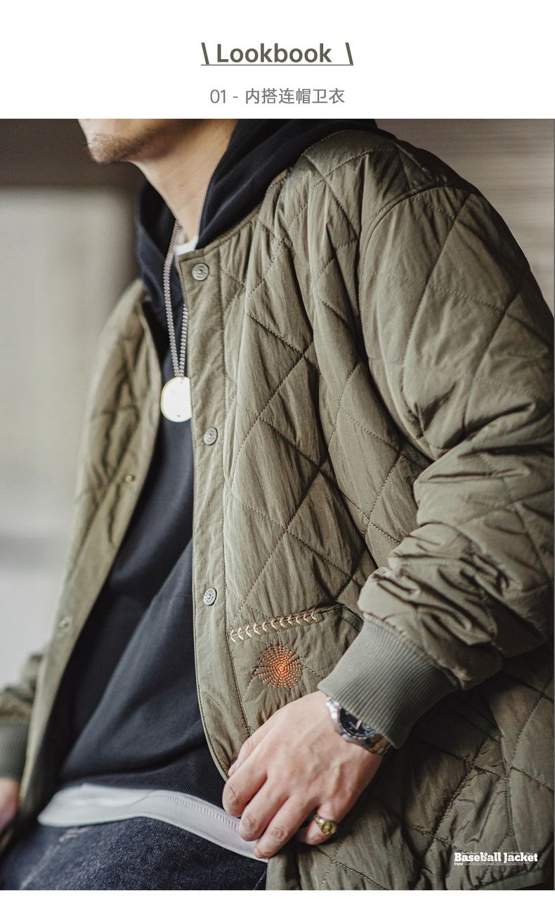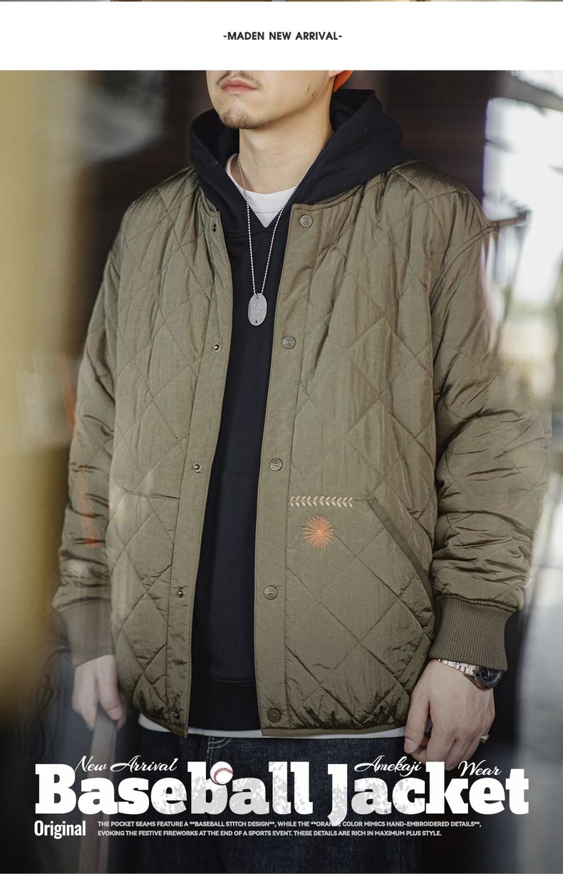 工装优选美式休闲绗缝棒球服夹克棉衣菱形格加厚保暖棉服外套男冬