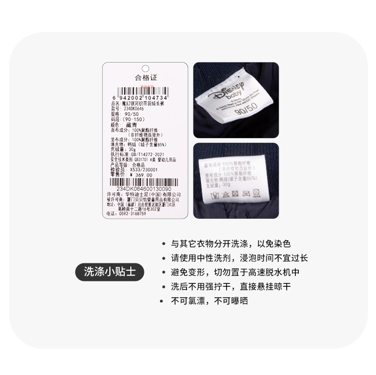【商场同款】迪士尼男宝羽绒裤子234DK0646