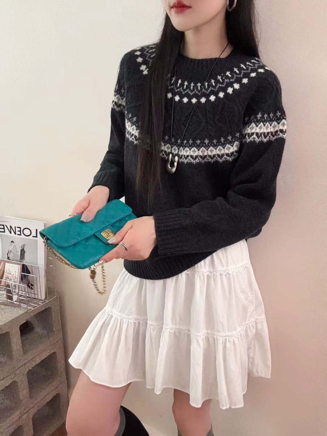 SZ6E01_月魄色_针织衫_秋冬_圆领长袖宽松落肩袖_高级女装_BERNIEELEN 伯妮斯茵