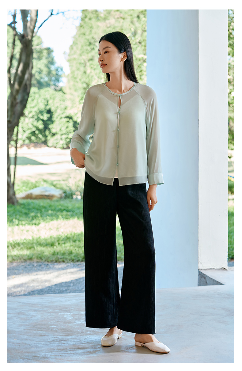 重磅19姆米云霞绉桑蚕丝睡裤女宽松直筒休闲裤家居裤长裤春夏新品 YSFFB903