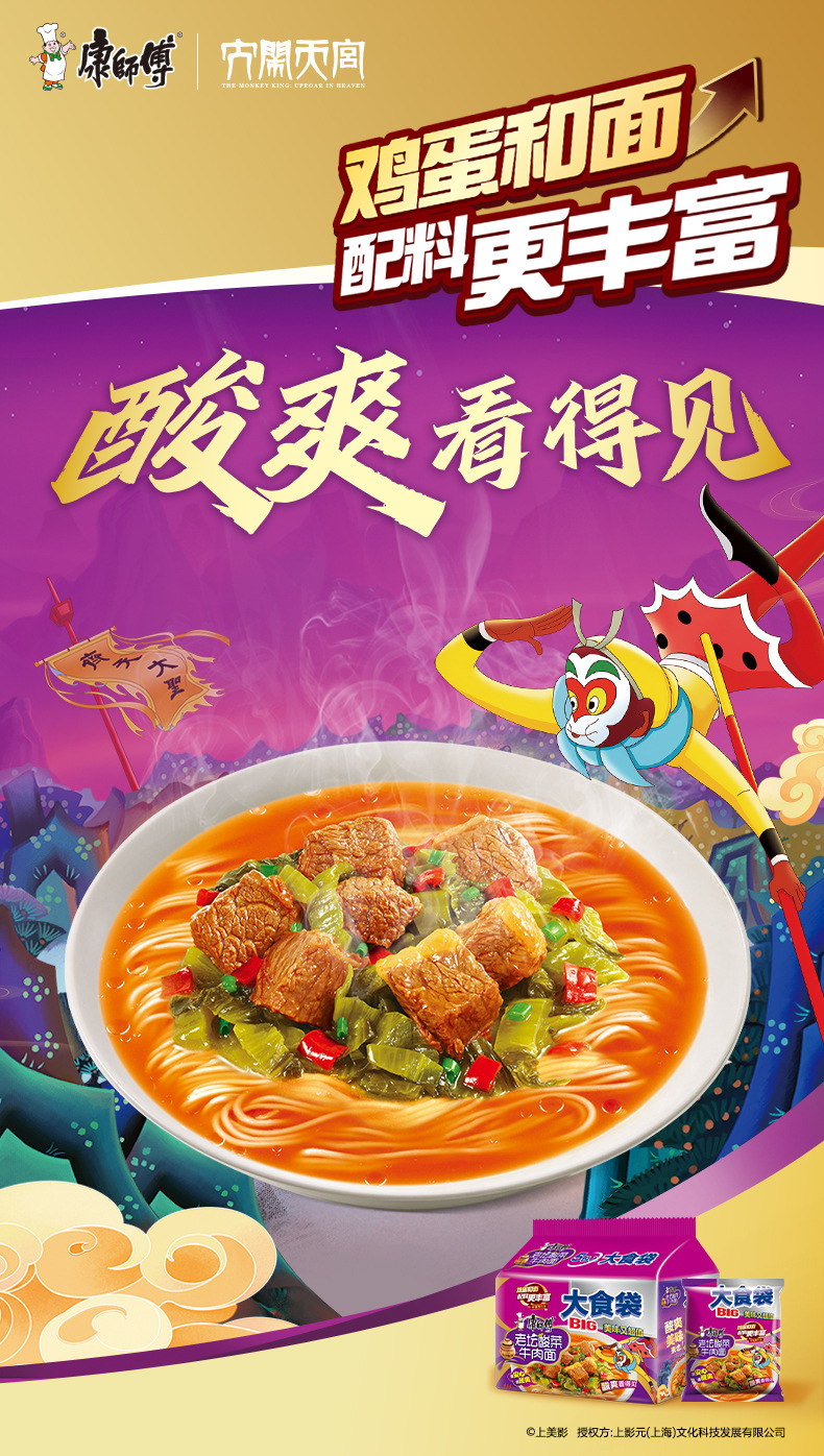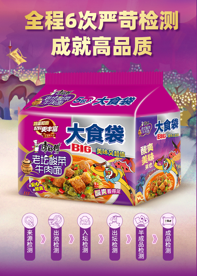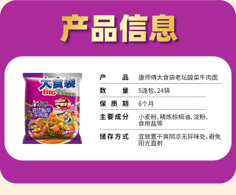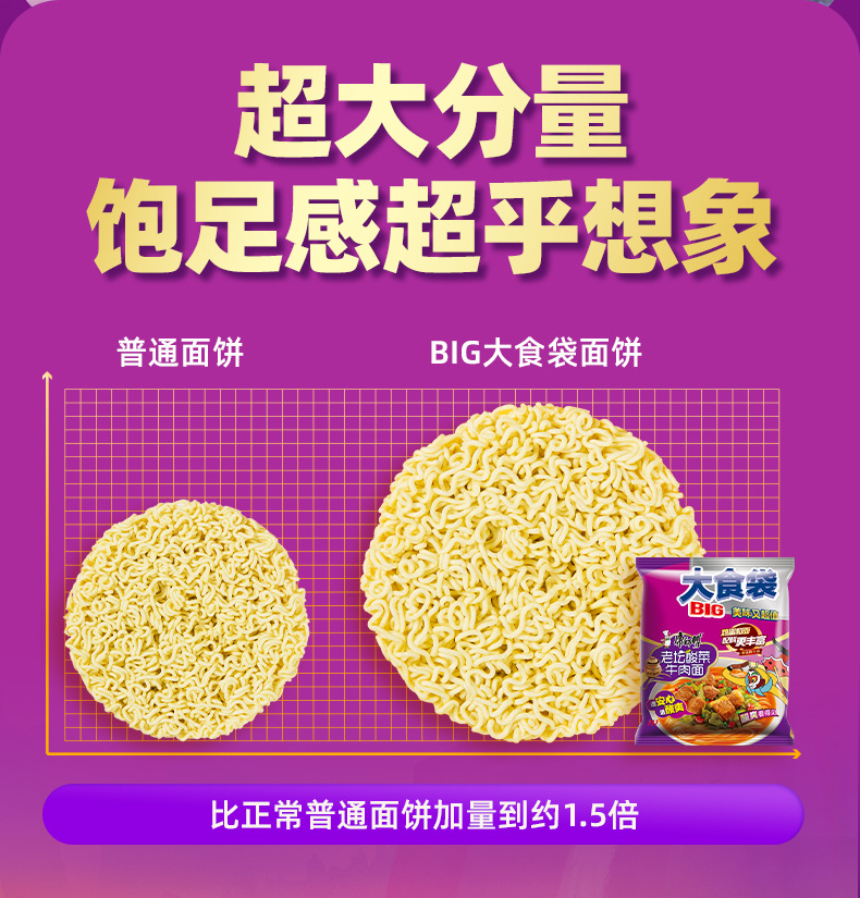 康师傅方便面 BIG大食袋 老坛酸菜牛肉面 162g 泡面速食