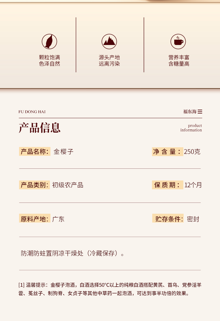 福东海 金樱干250g 金英子肉 干果金罂子糖罐子 山石榴 可泡酒泡茶茶