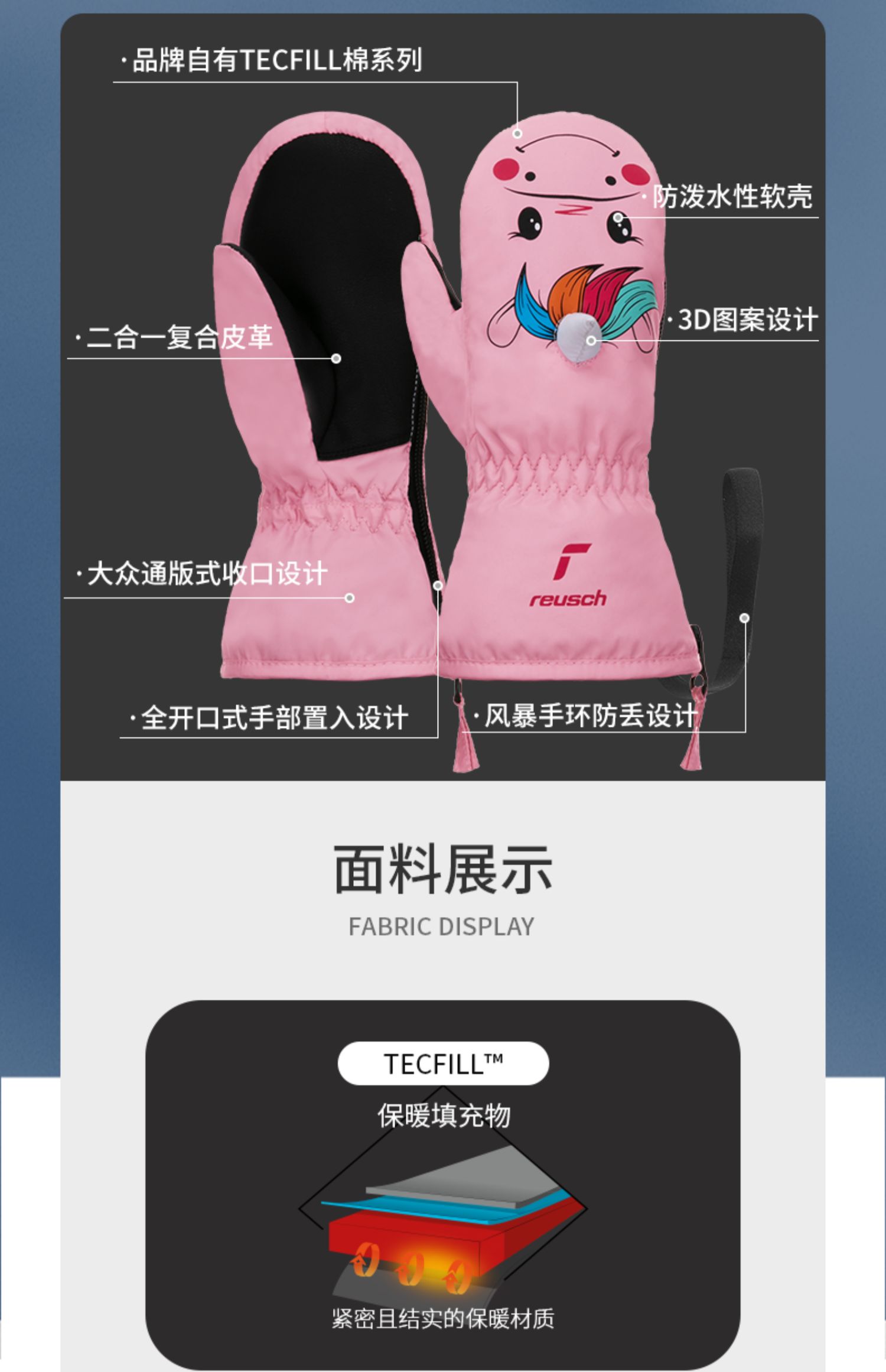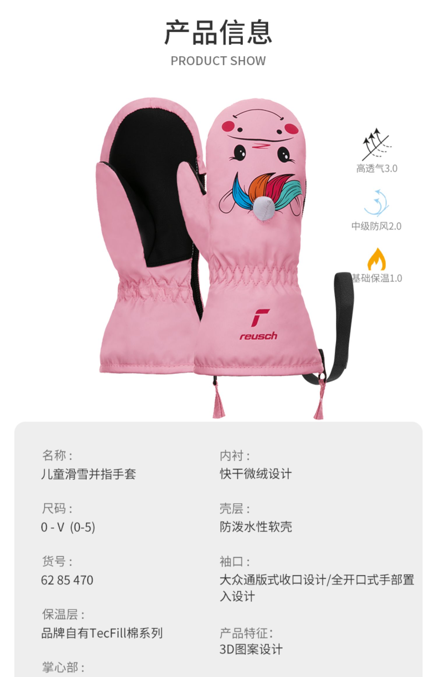 Reusch炫驰幼童小童玩雪保暖卡通闷子儿童滑雪手套6285470