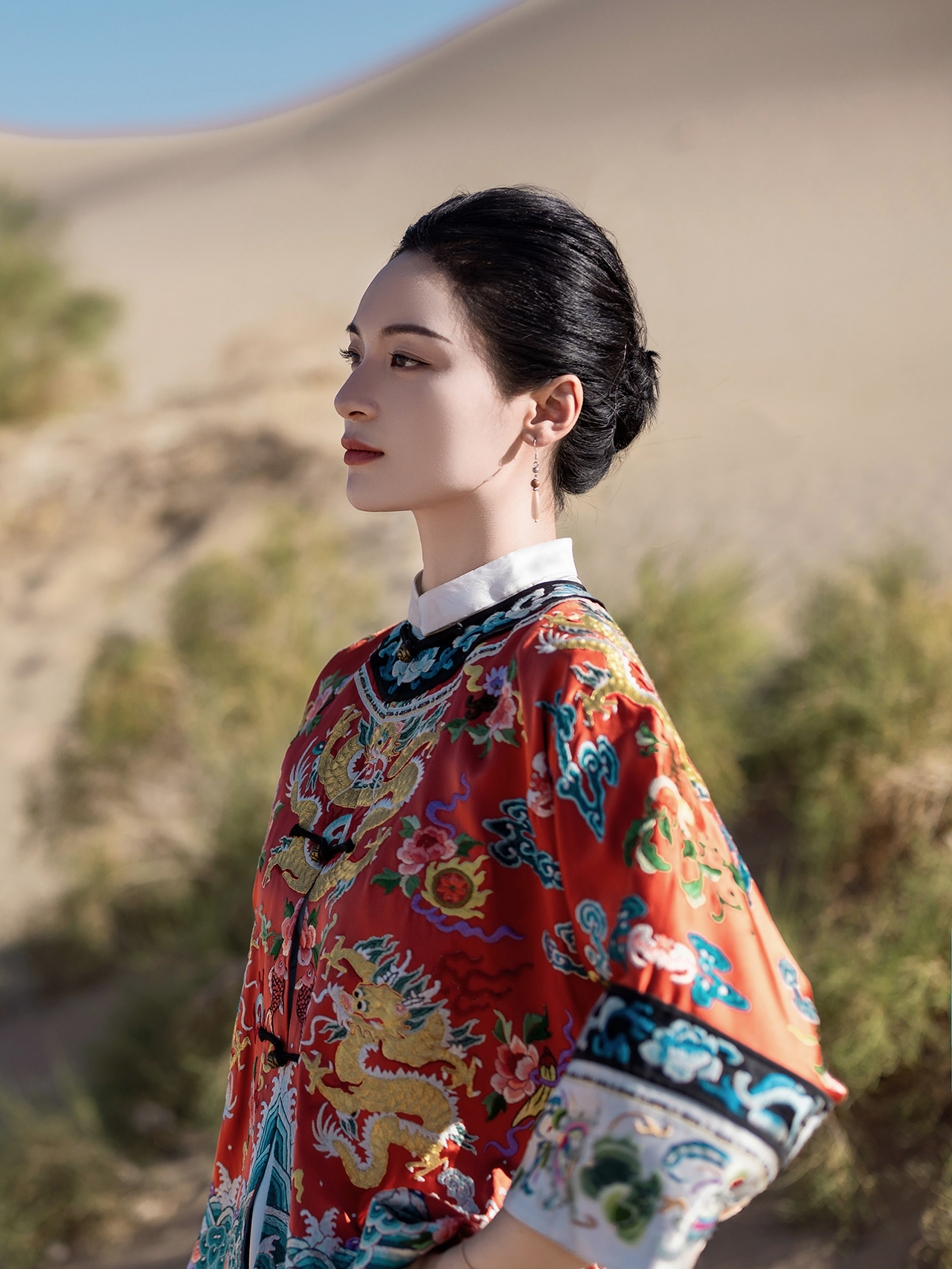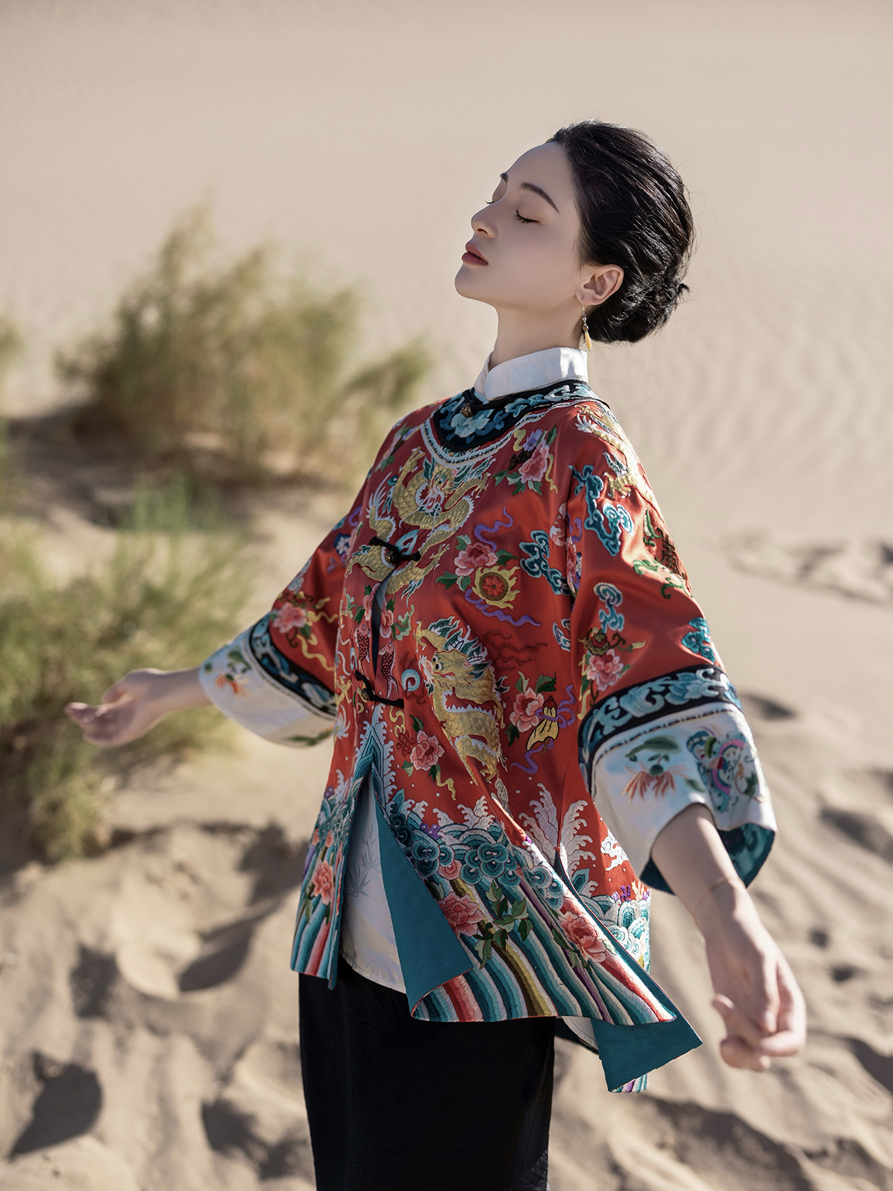 盛唐牡丹|高货-重缎真丝满绣蟒袍红色款-唯一款[特价品](不退不换)
