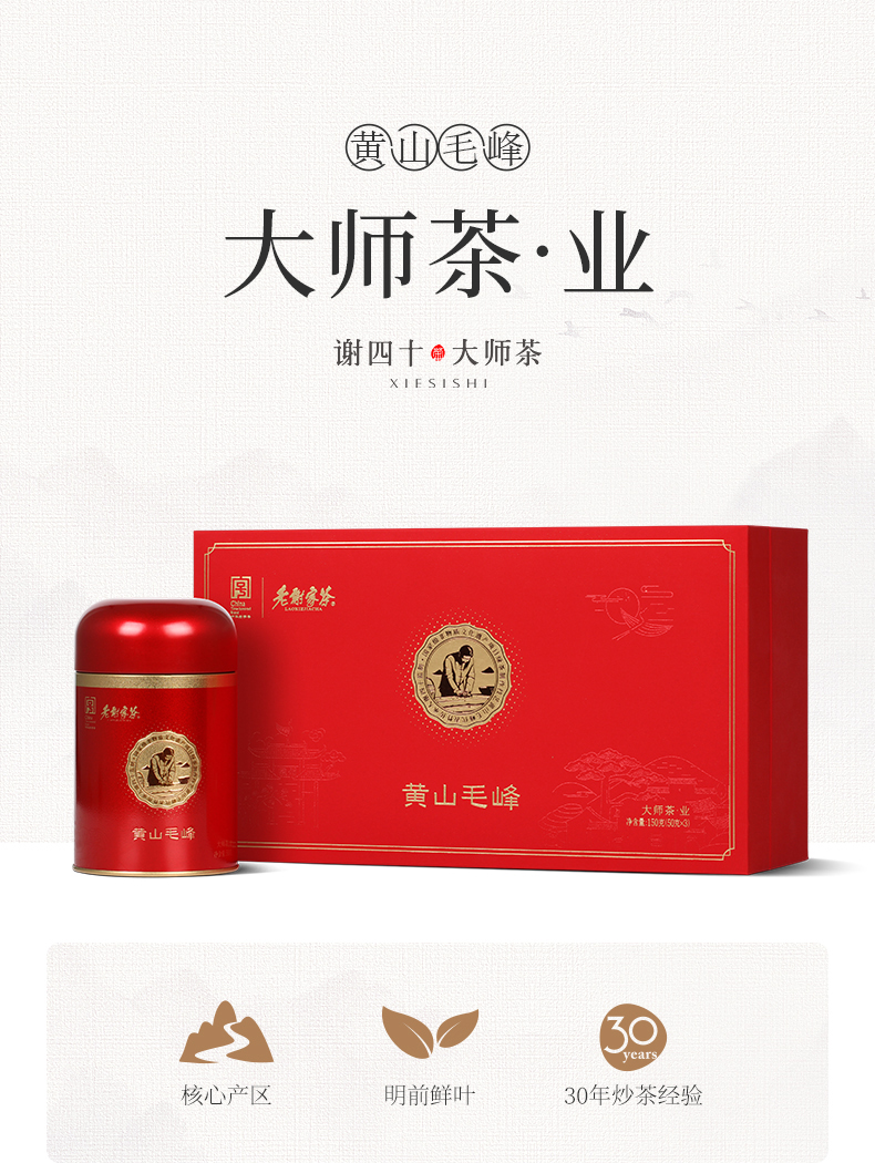 谢四十大师茶明前黄山毛峰礼盒装200克绿茶叶