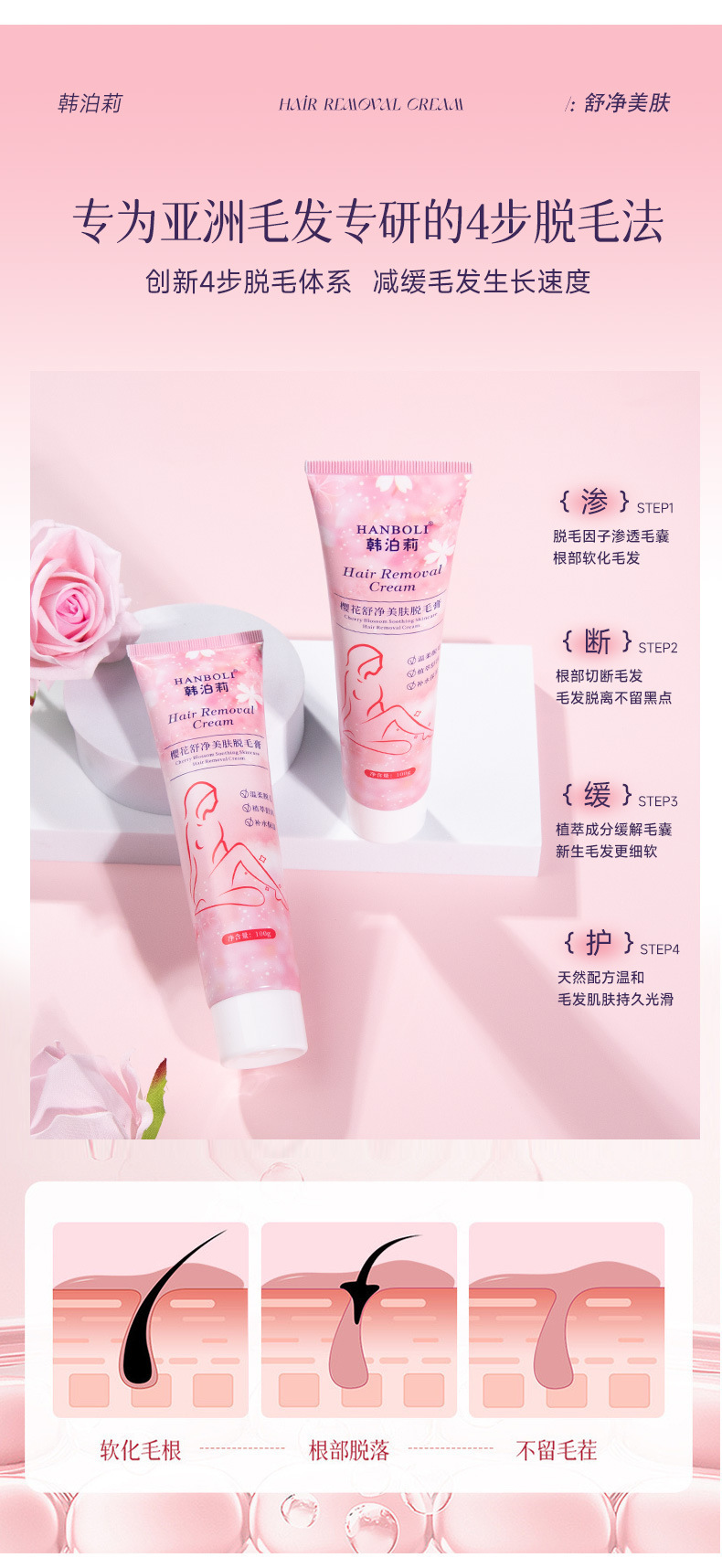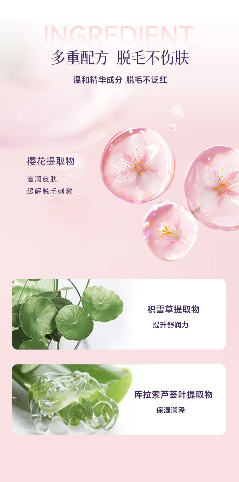【19.9抢2支❗️樱花舒净美肤脱毛膏】无痛瞬脱,植萃美肤,解锁肌肤白净丝滑!温和脱毛去毛不刺激腋毛脱毛慕斯喷雾