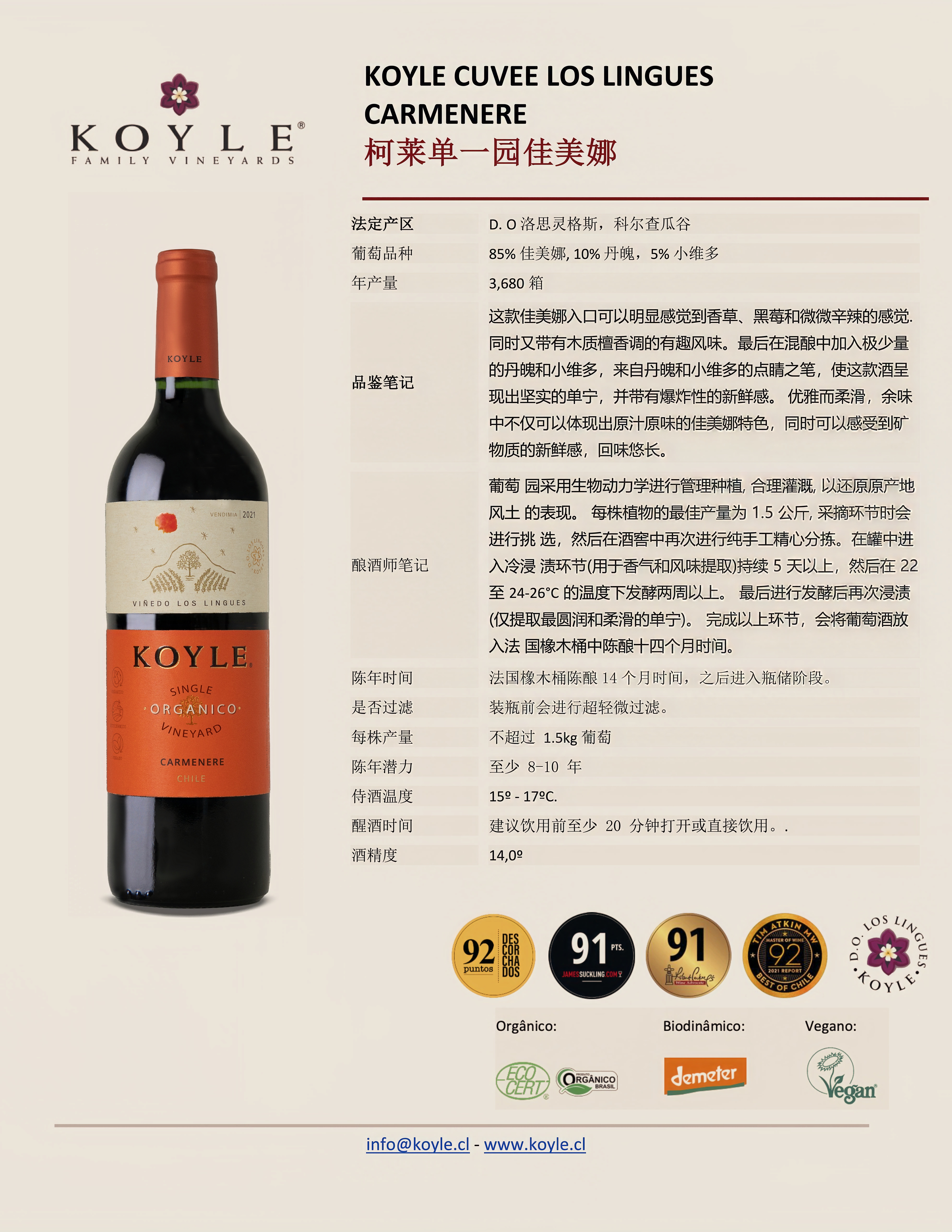 柯莱单一园佳美娜干红葡萄酒