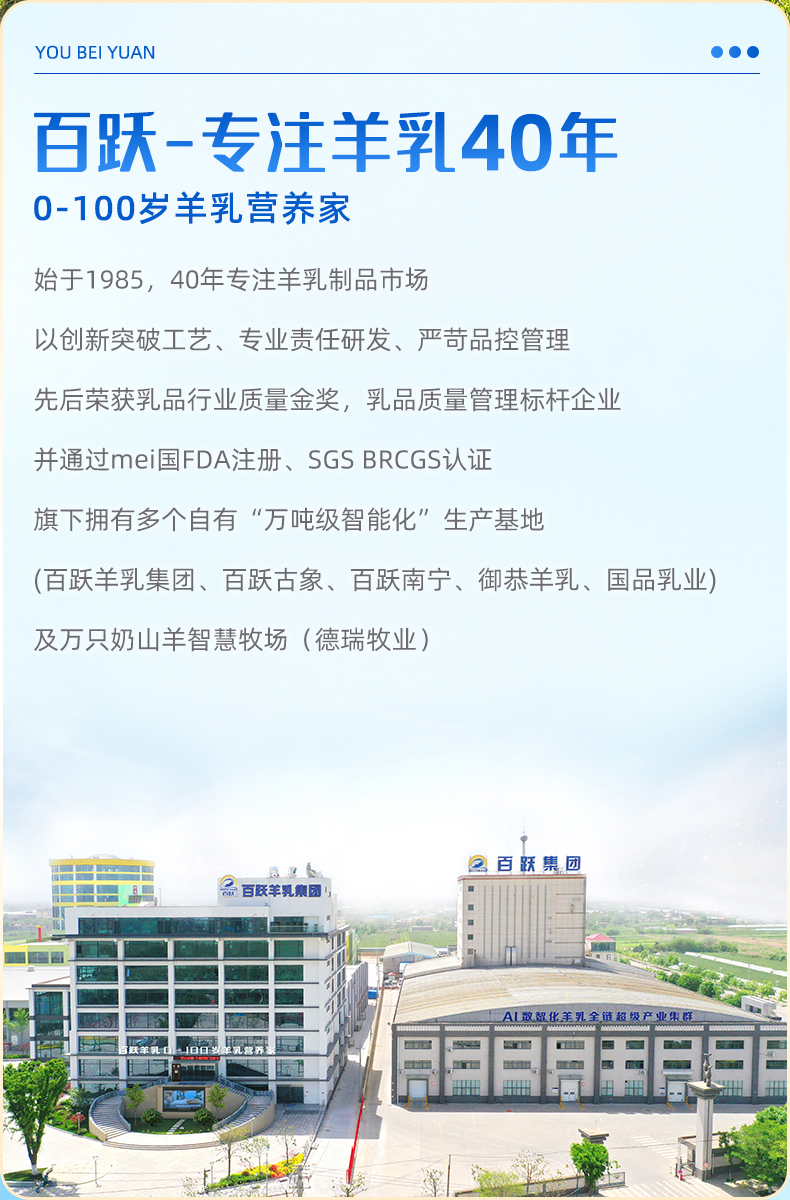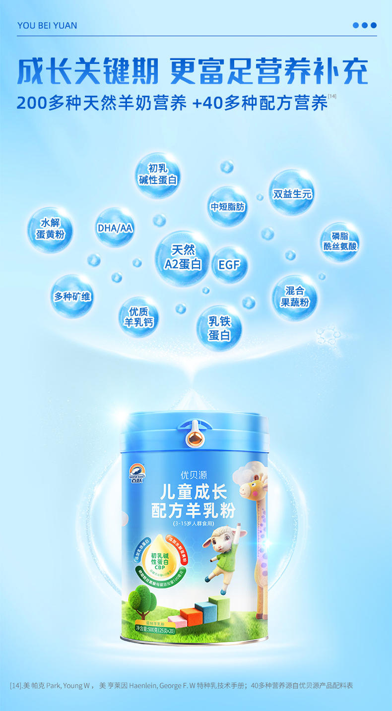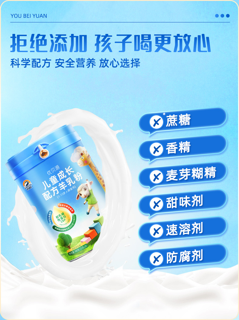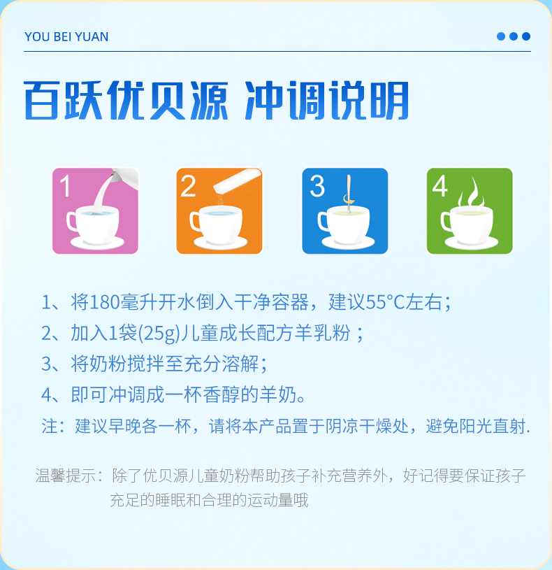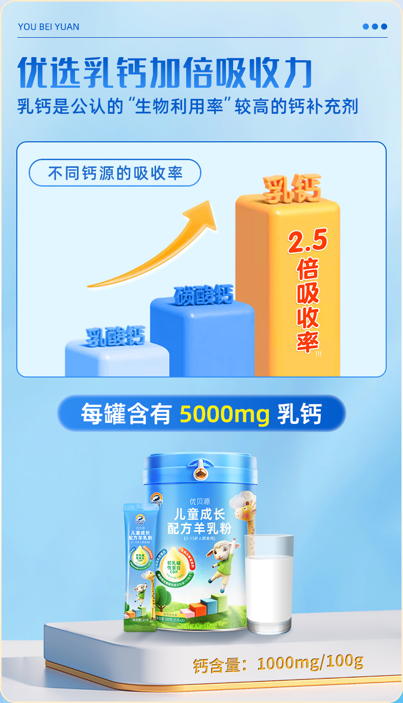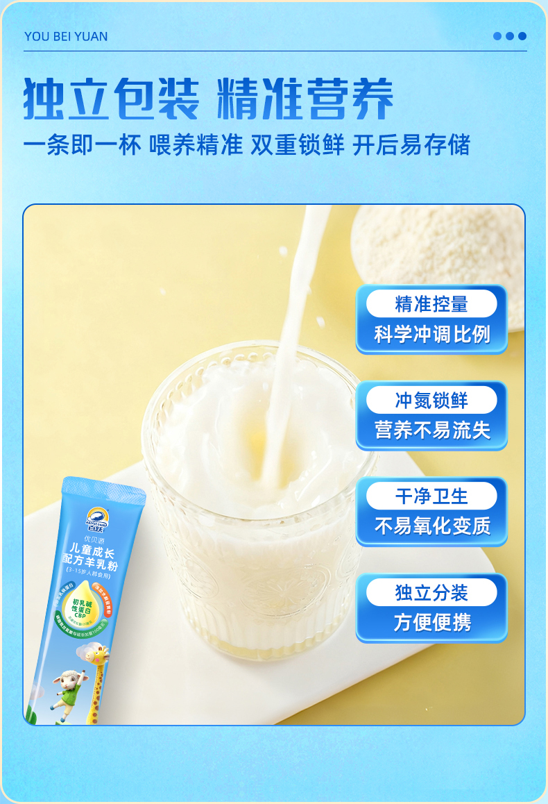 百跃优贝源儿童成长羊奶粉500克(25克*20条)适合(3-15)岁儿童