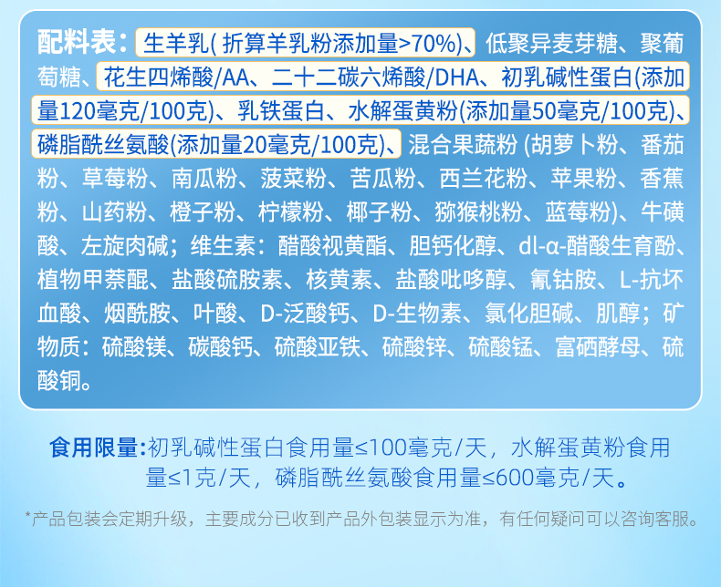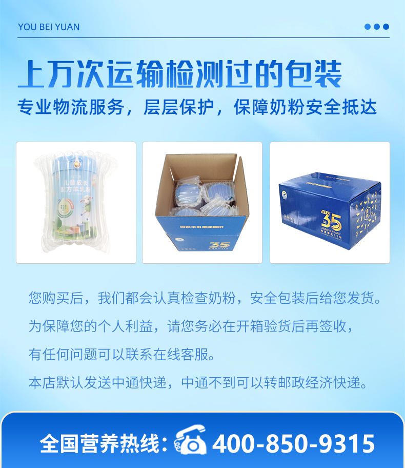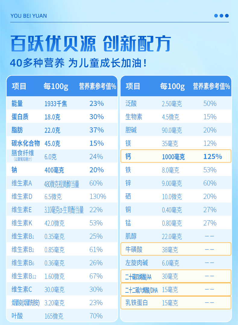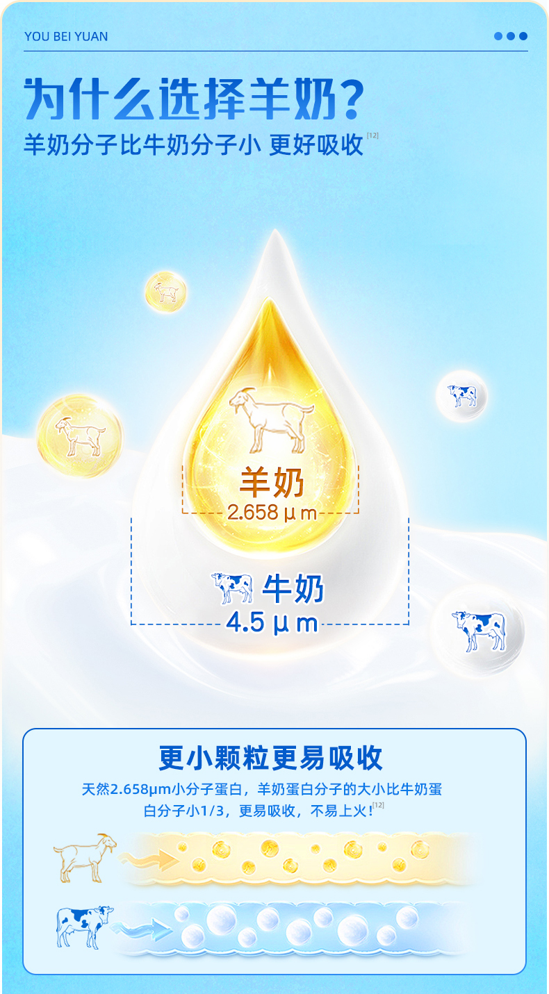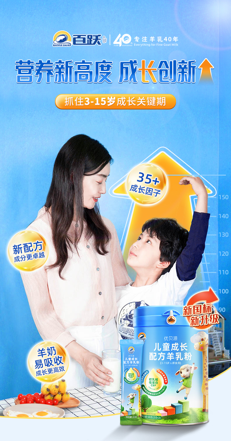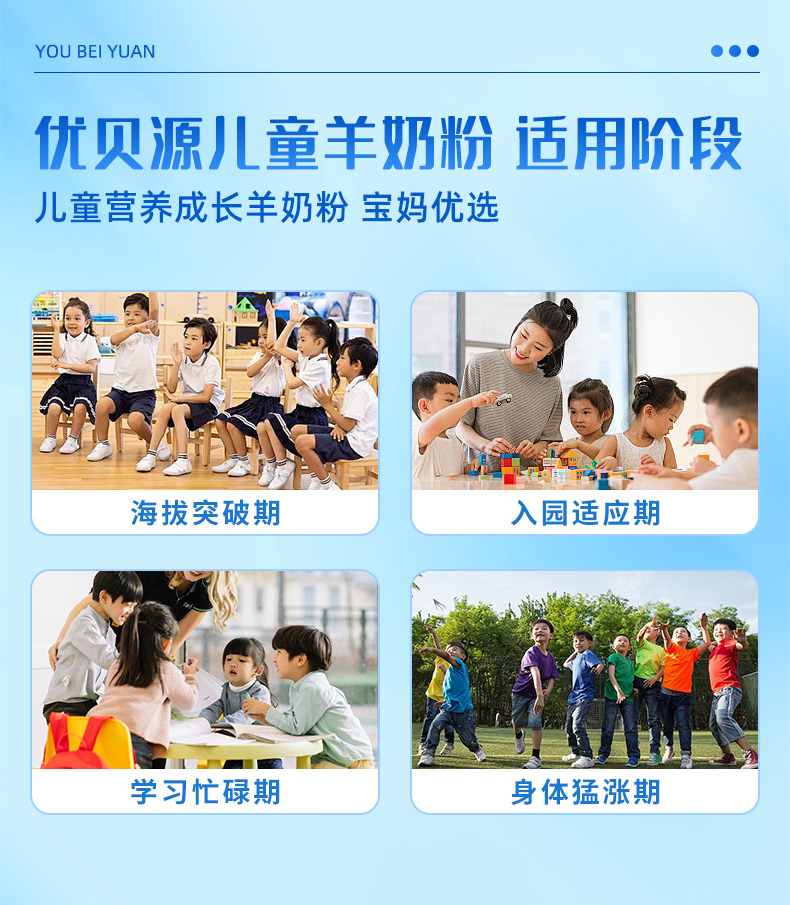 百跃优贝源儿童成长羊奶粉500克(25克*20条)适合(3-15)岁儿童