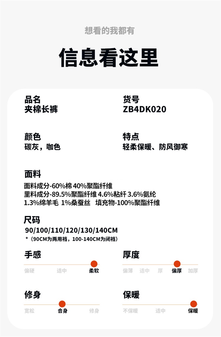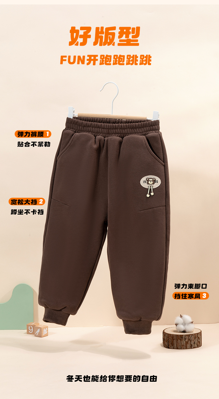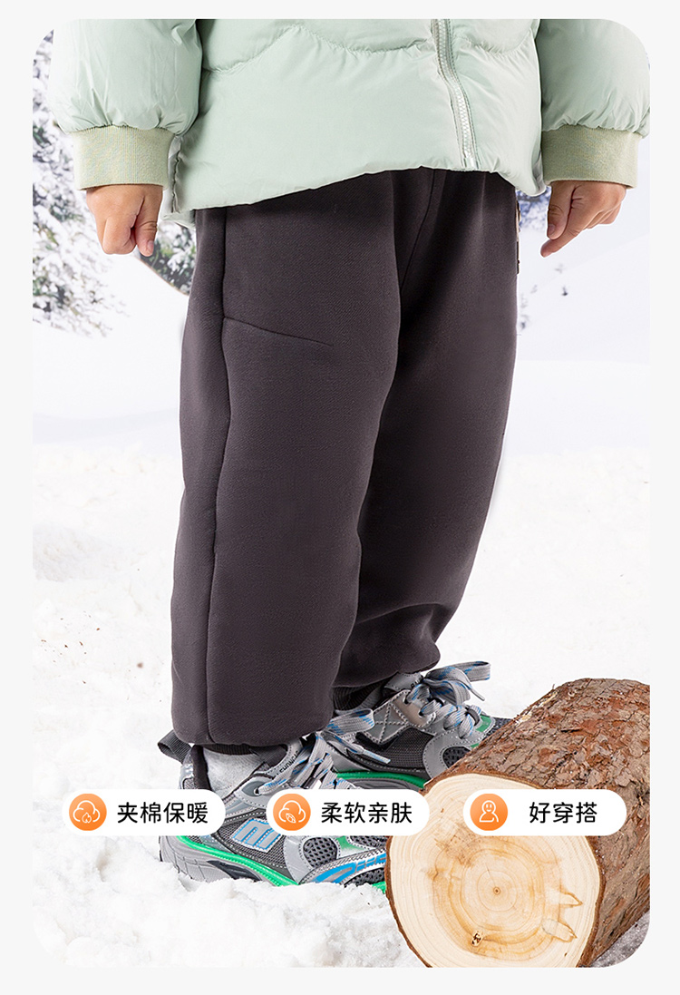 贝贝怡童装儿童冬季夹棉裤子2024新款男童加厚保暖运动裤洋气卫裤ZB4DK020