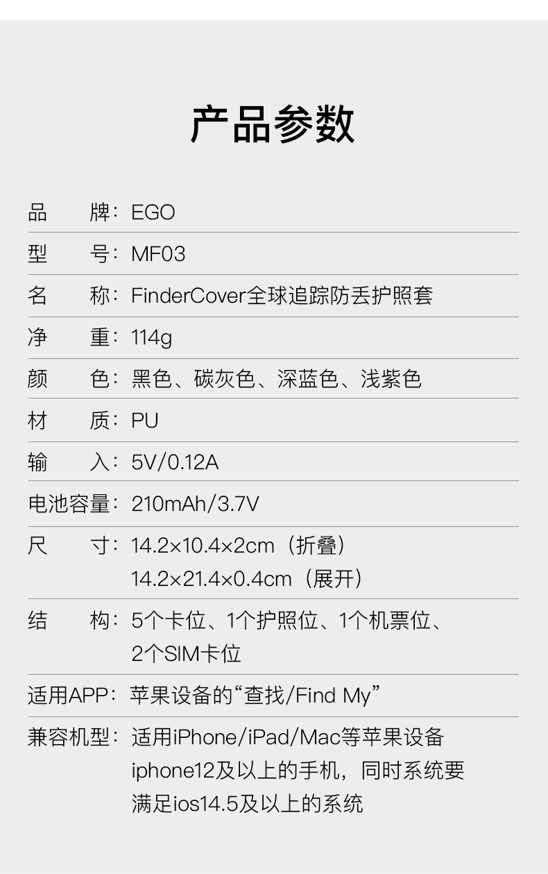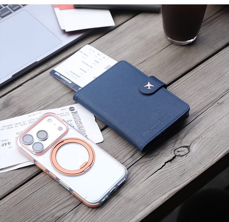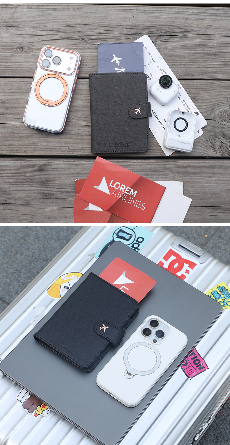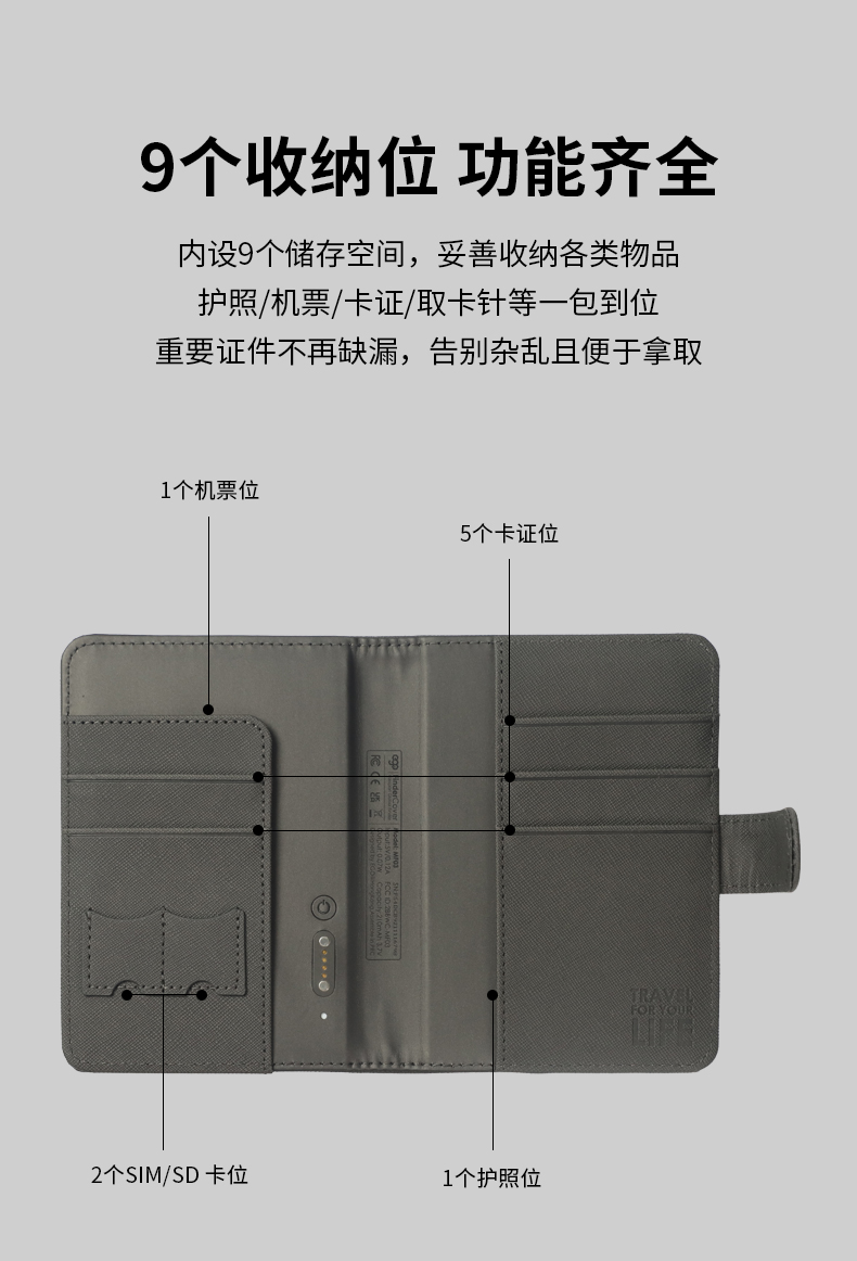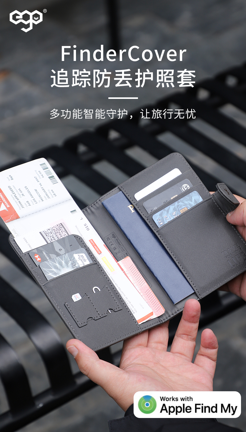 「全球定位+防盗刷+磁吸数据线充电」EGO防丢护照夹多功能出国旅行机票夹证件卡包
