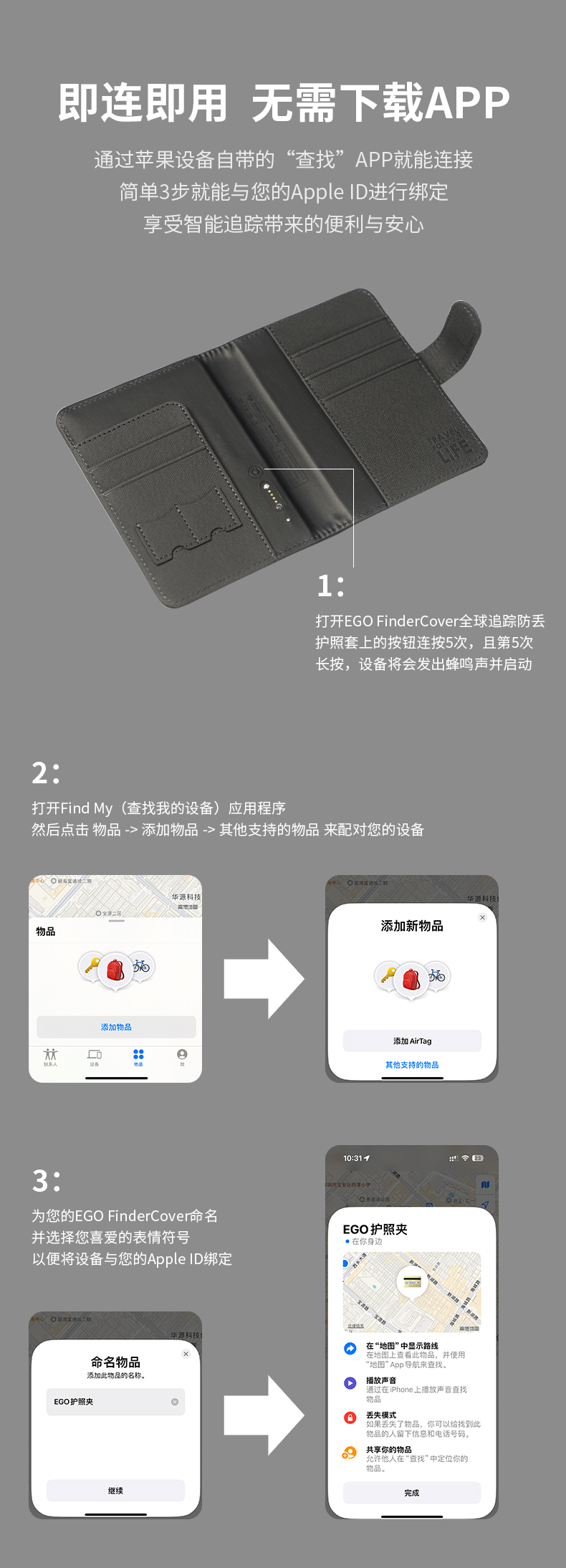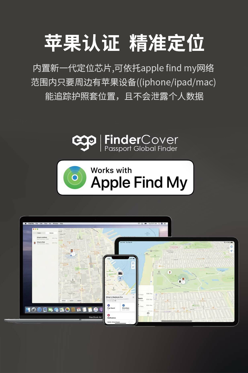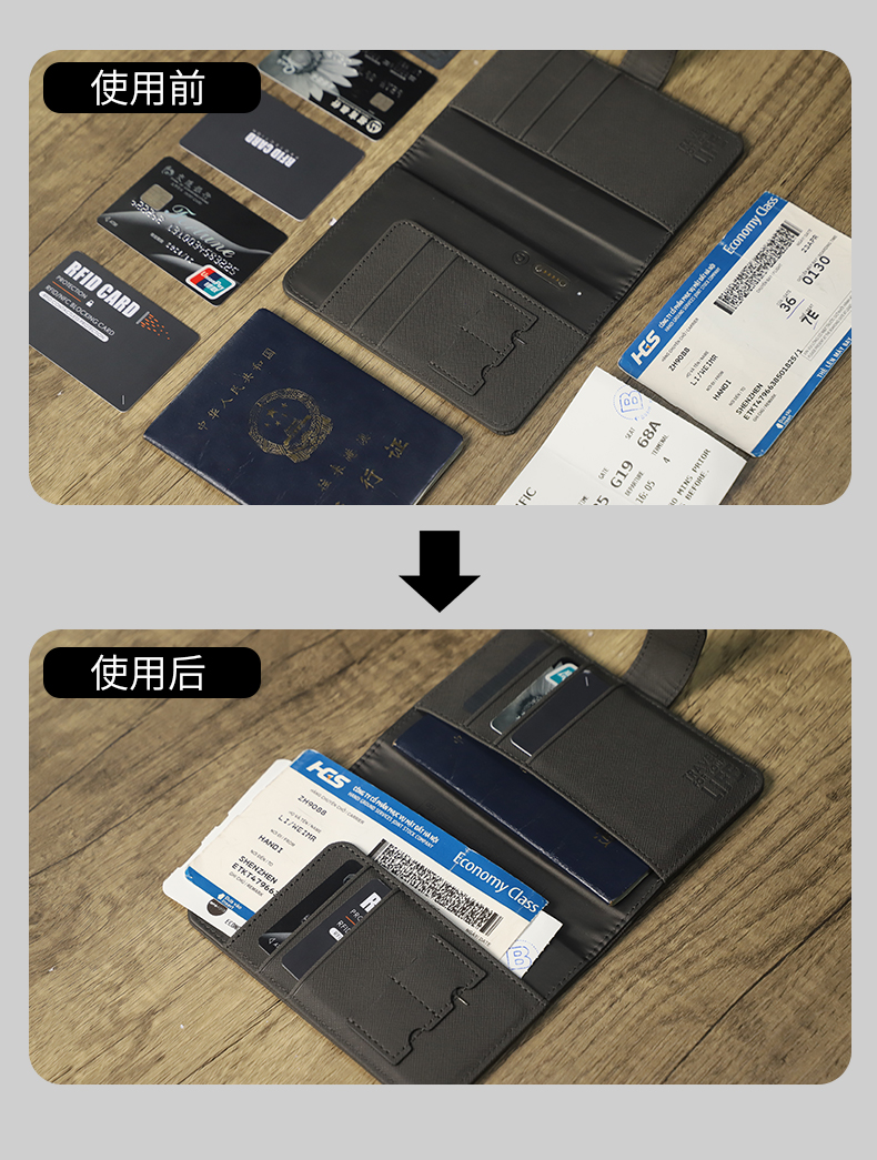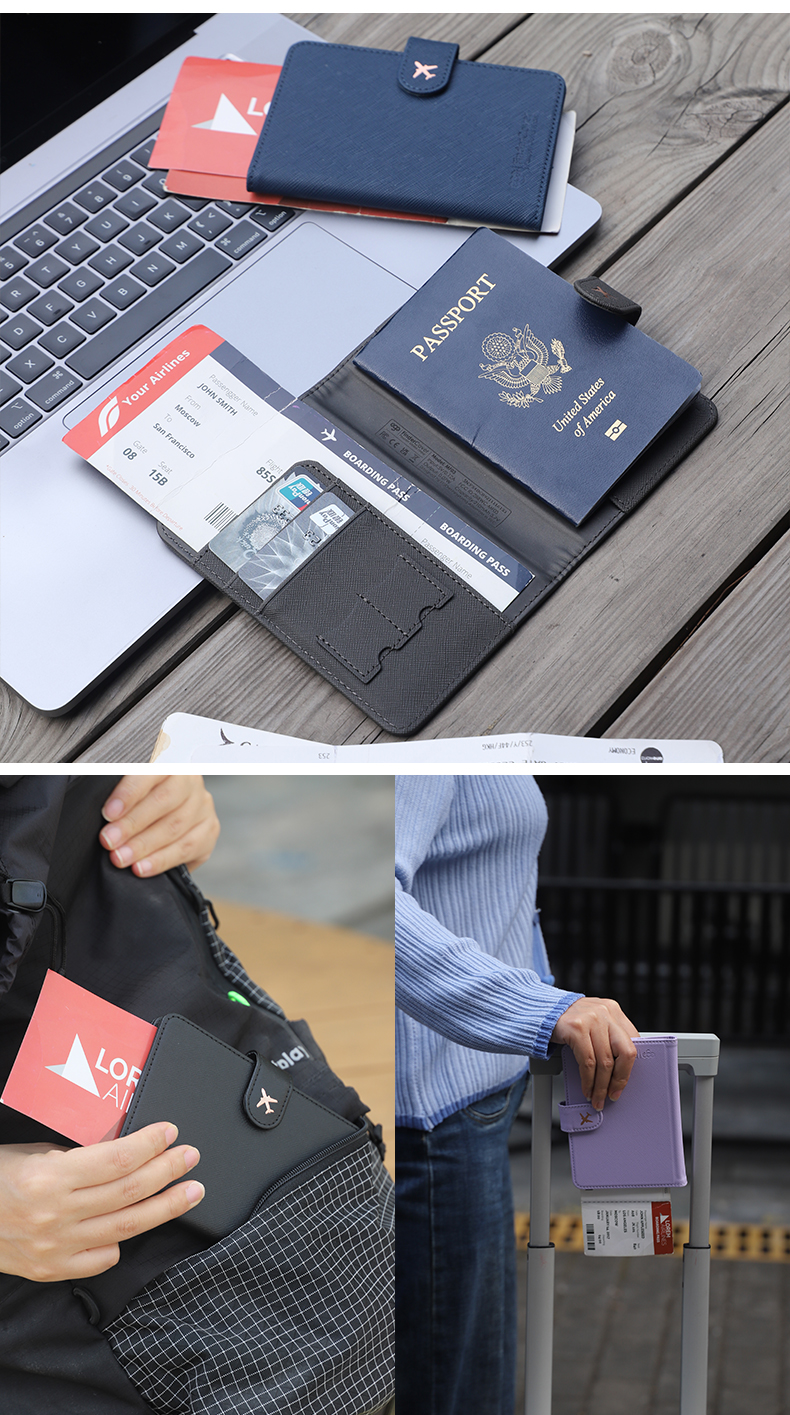 「全球定位+防盗刷+磁吸数据线充电」EGO防丢护照夹多功能出国旅行机票夹证件卡包