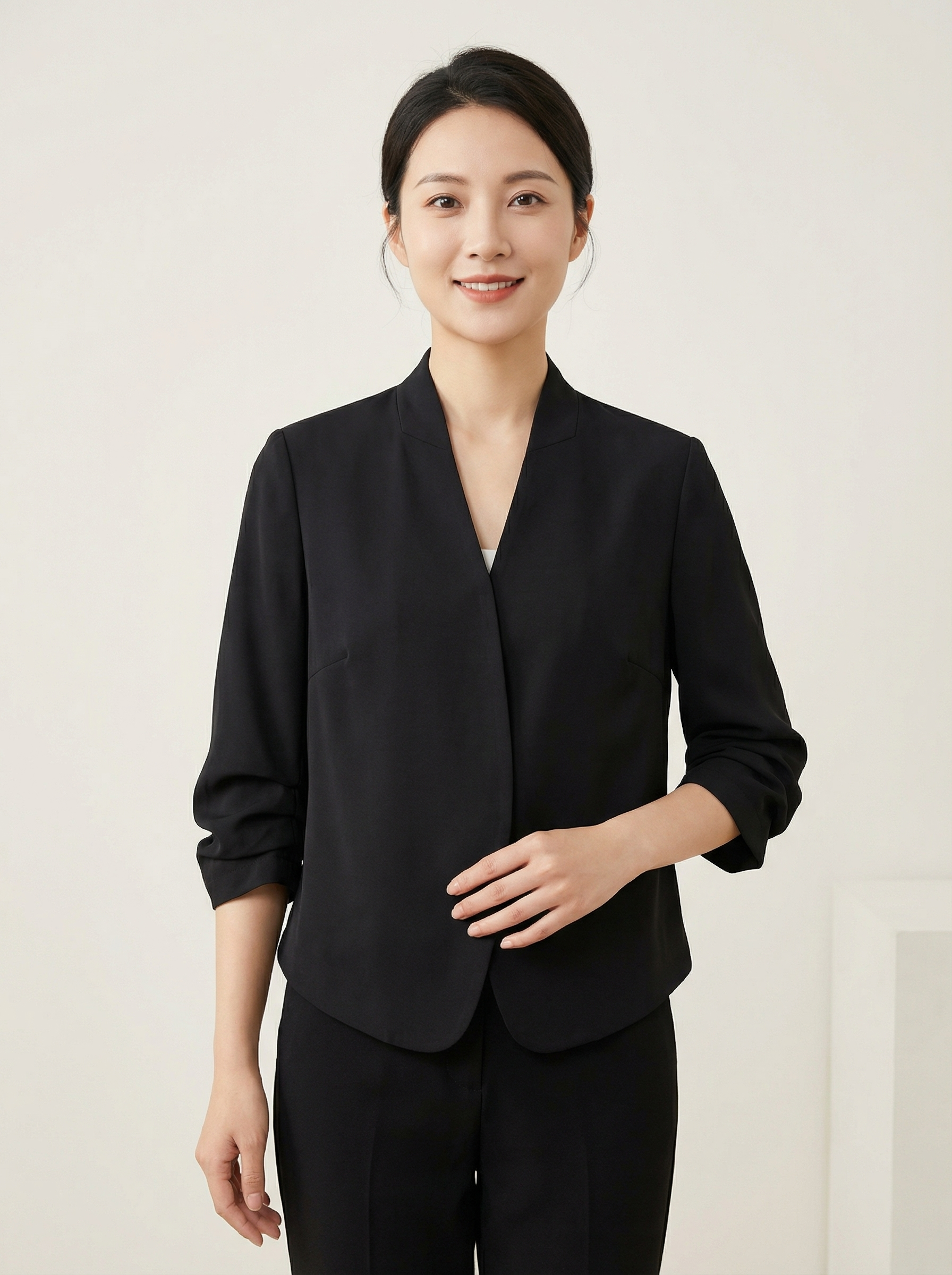 SC2A51_凝脂色/漆黑色_上衣外套_春夏_V领无领七分袖收腰修身垂感小西装_高级女装_BERNIEELEN 伯妮斯茵