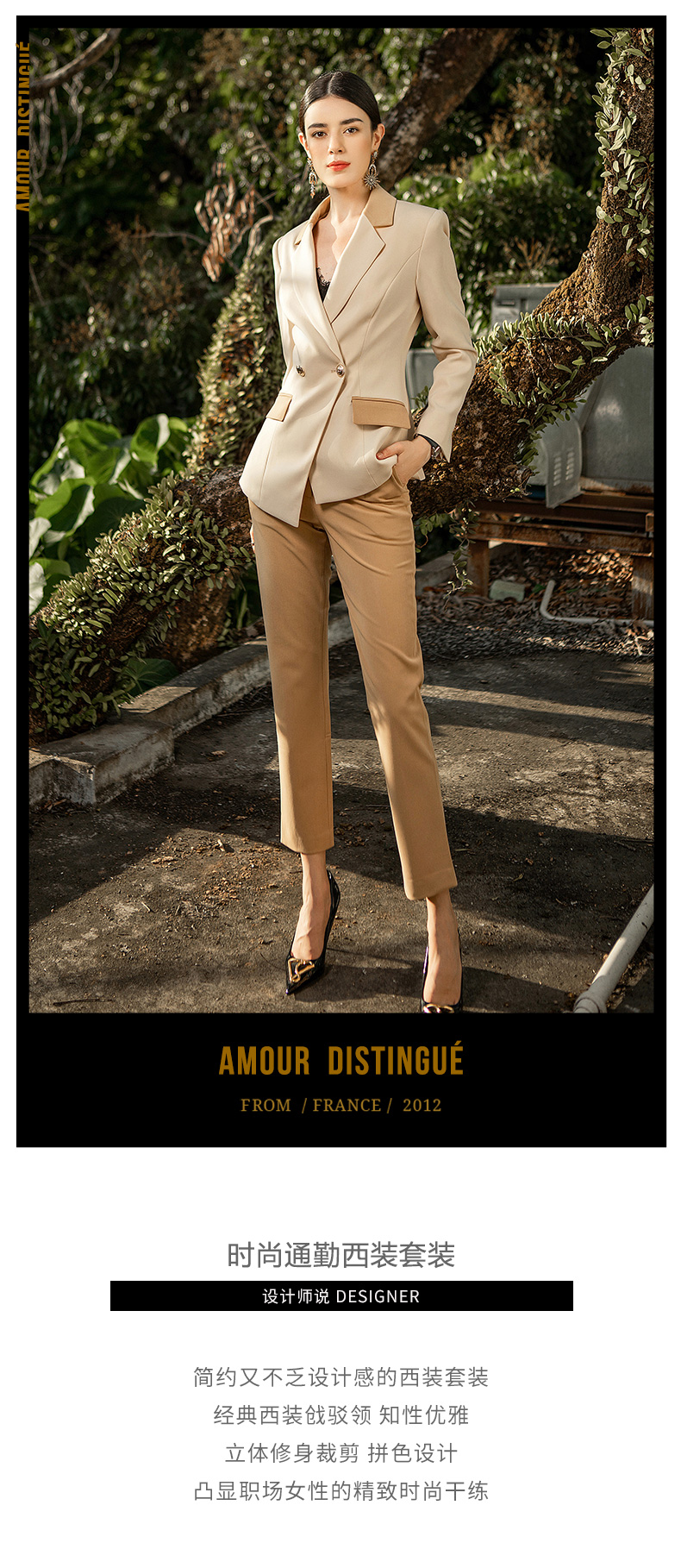 AD秋装气质女神范套装女拼色职业西装套装高端职场正装经理工作服
