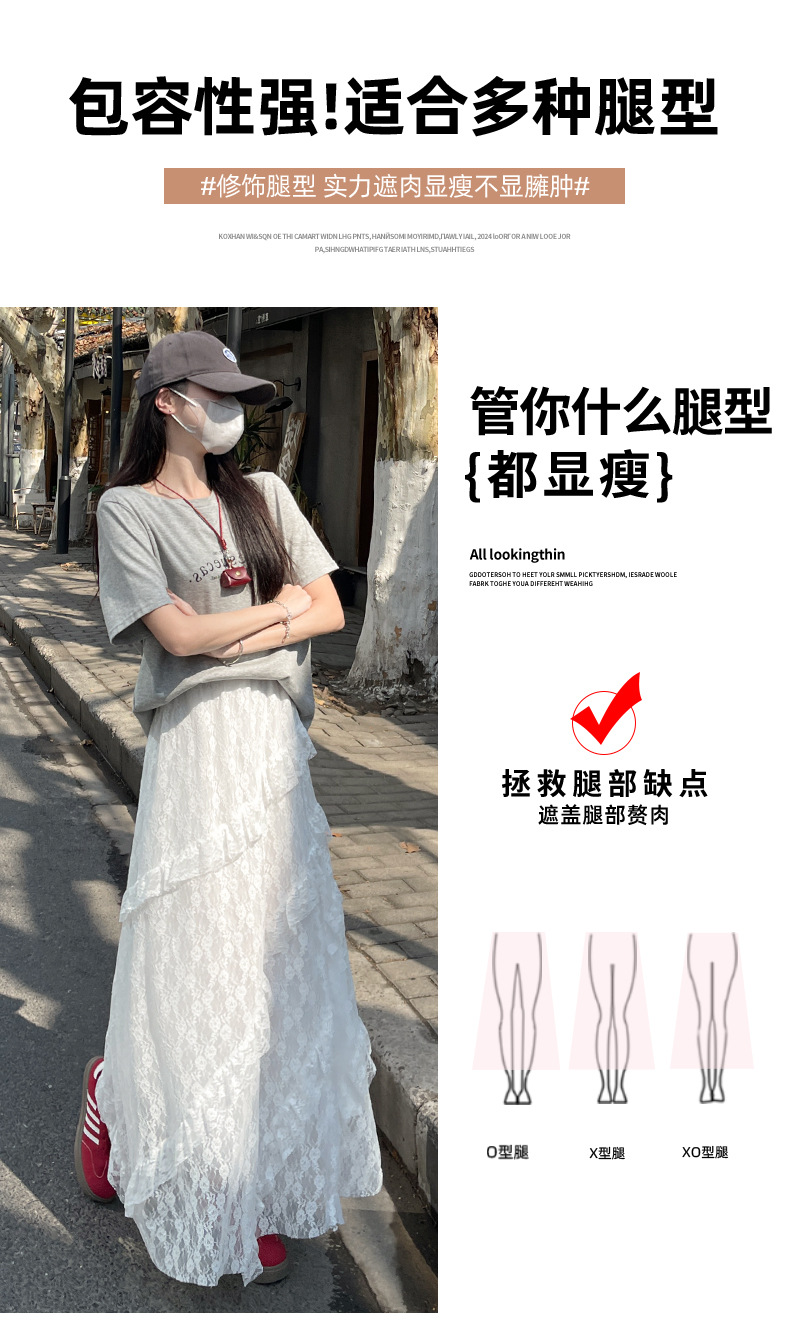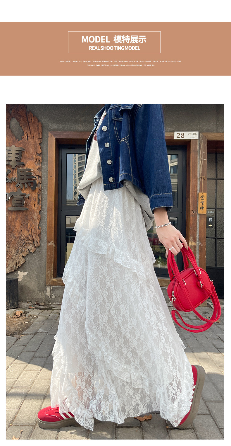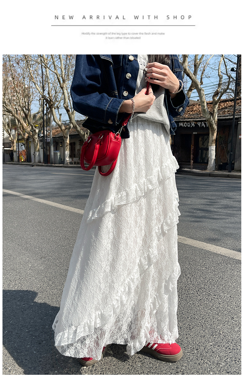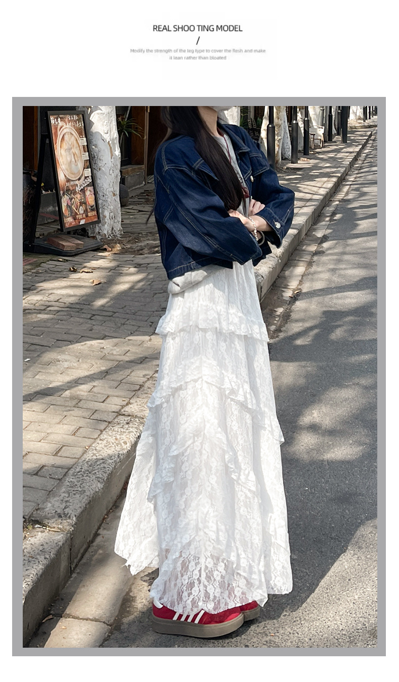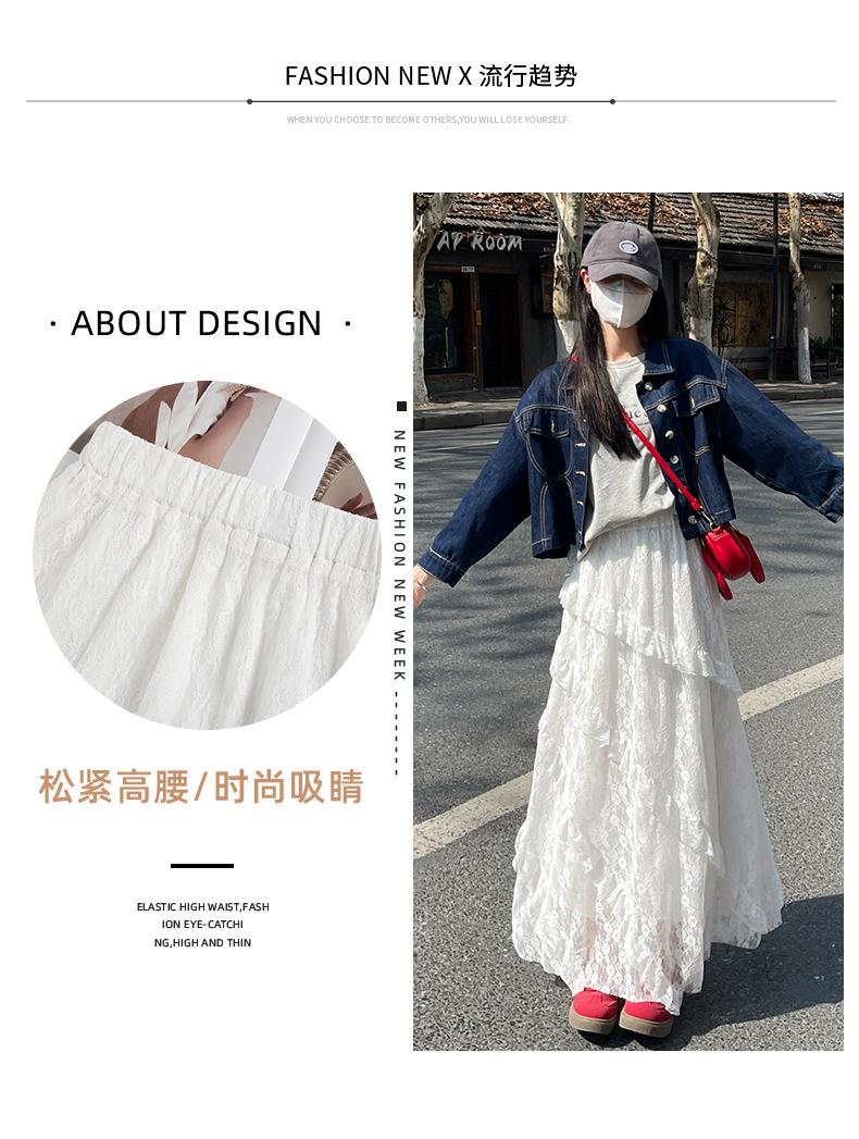柔雾蕾丝白纱半裙 女春夏新款高腰a字半裙纱裙小个子蛋糕长裙