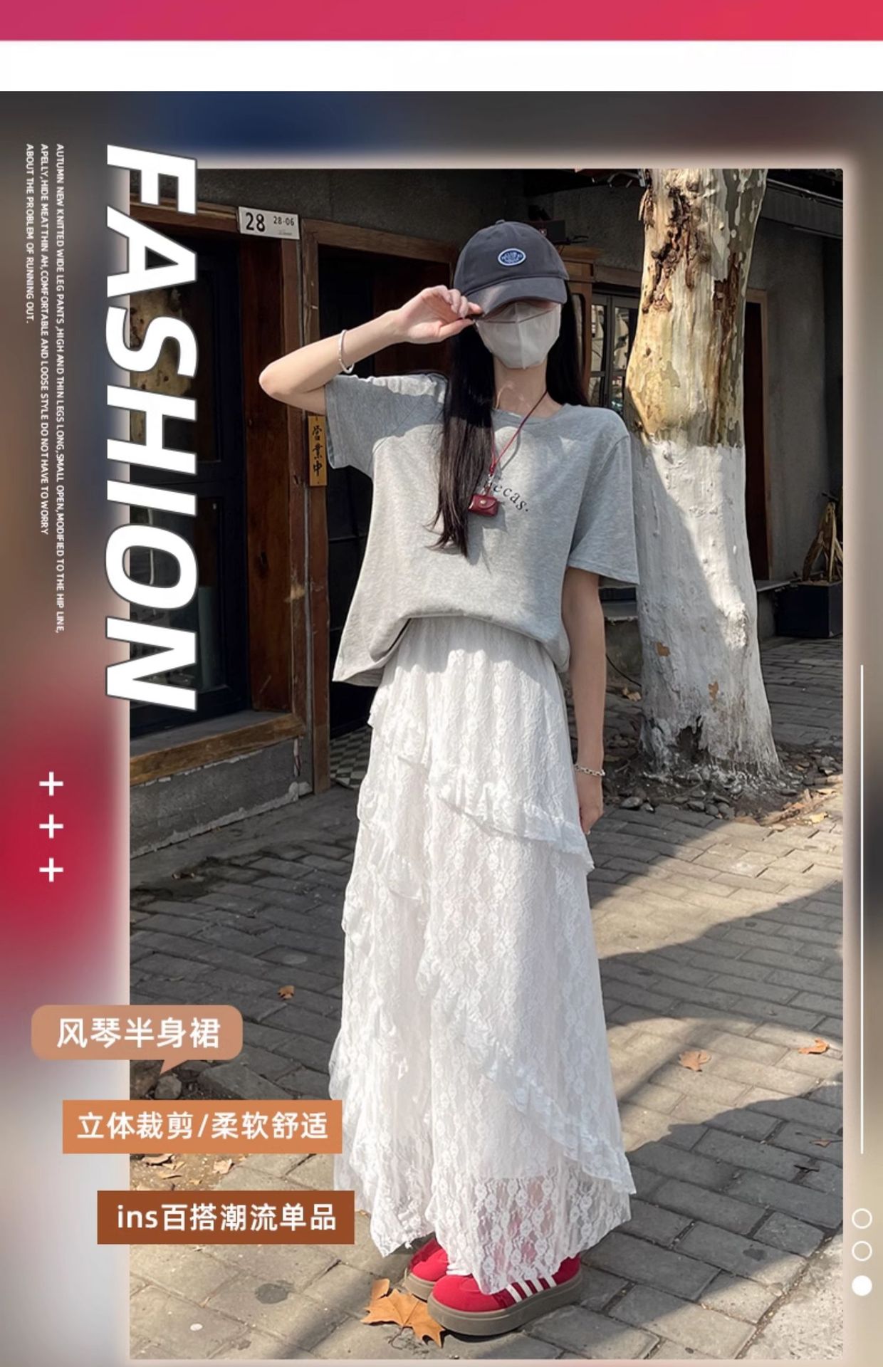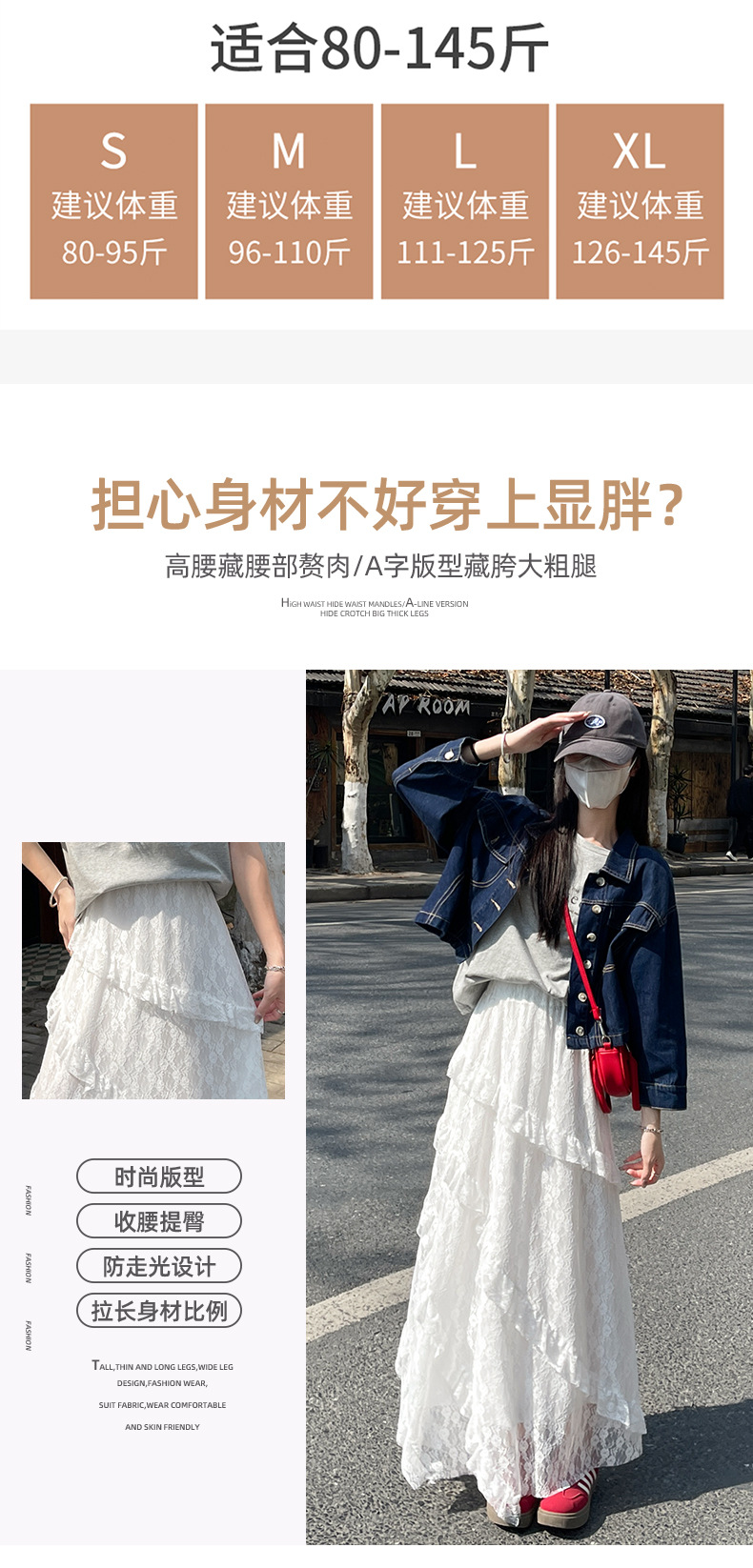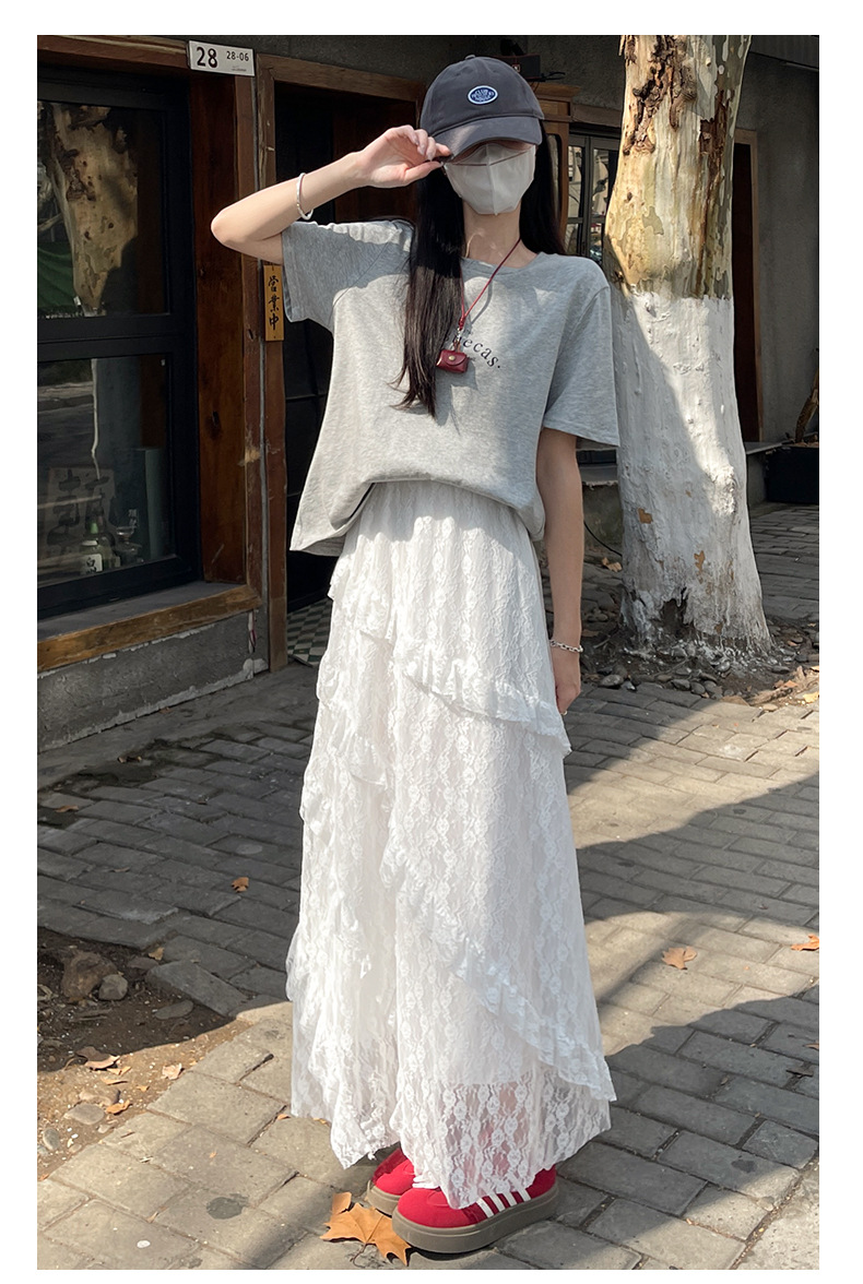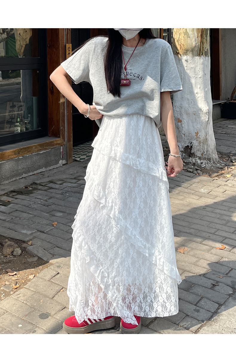 柔雾蕾丝白纱半裙 女春夏新款高腰a字半裙纱裙小个子蛋糕长裙