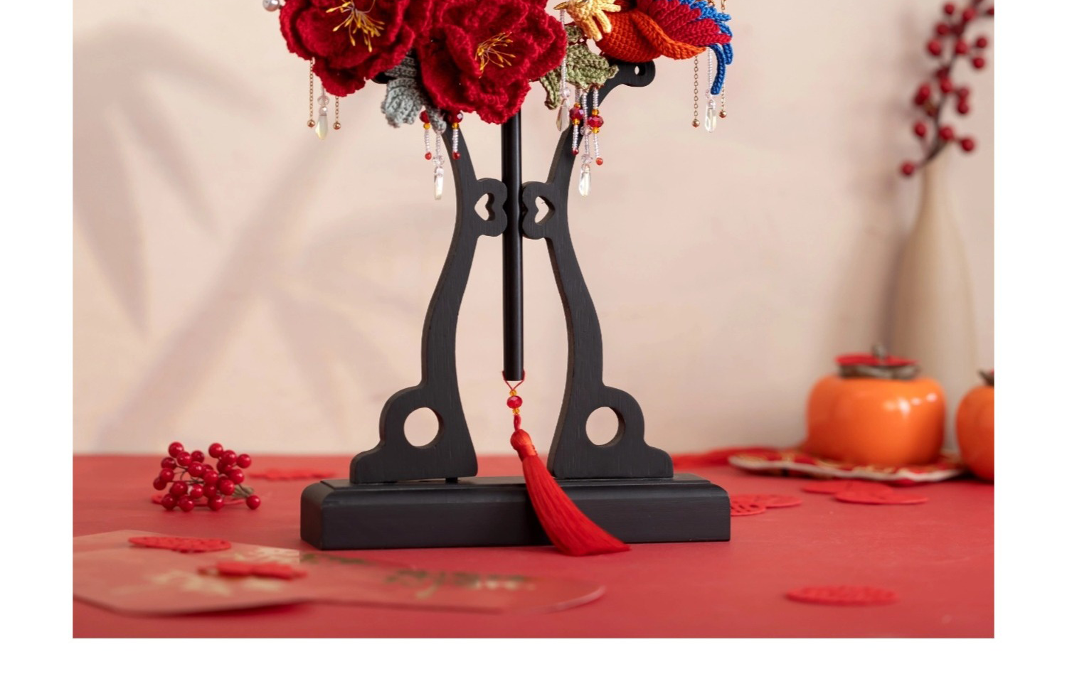 苏苏姐家凤穿牡丹婚礼团扇手工diy编织蕾丝线钩针自制扇子材料包