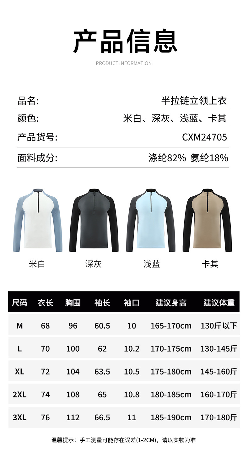 跃牌【PF系列】2025新款户外运动t恤男立领登山徒步运动休闲内搭CXM24705