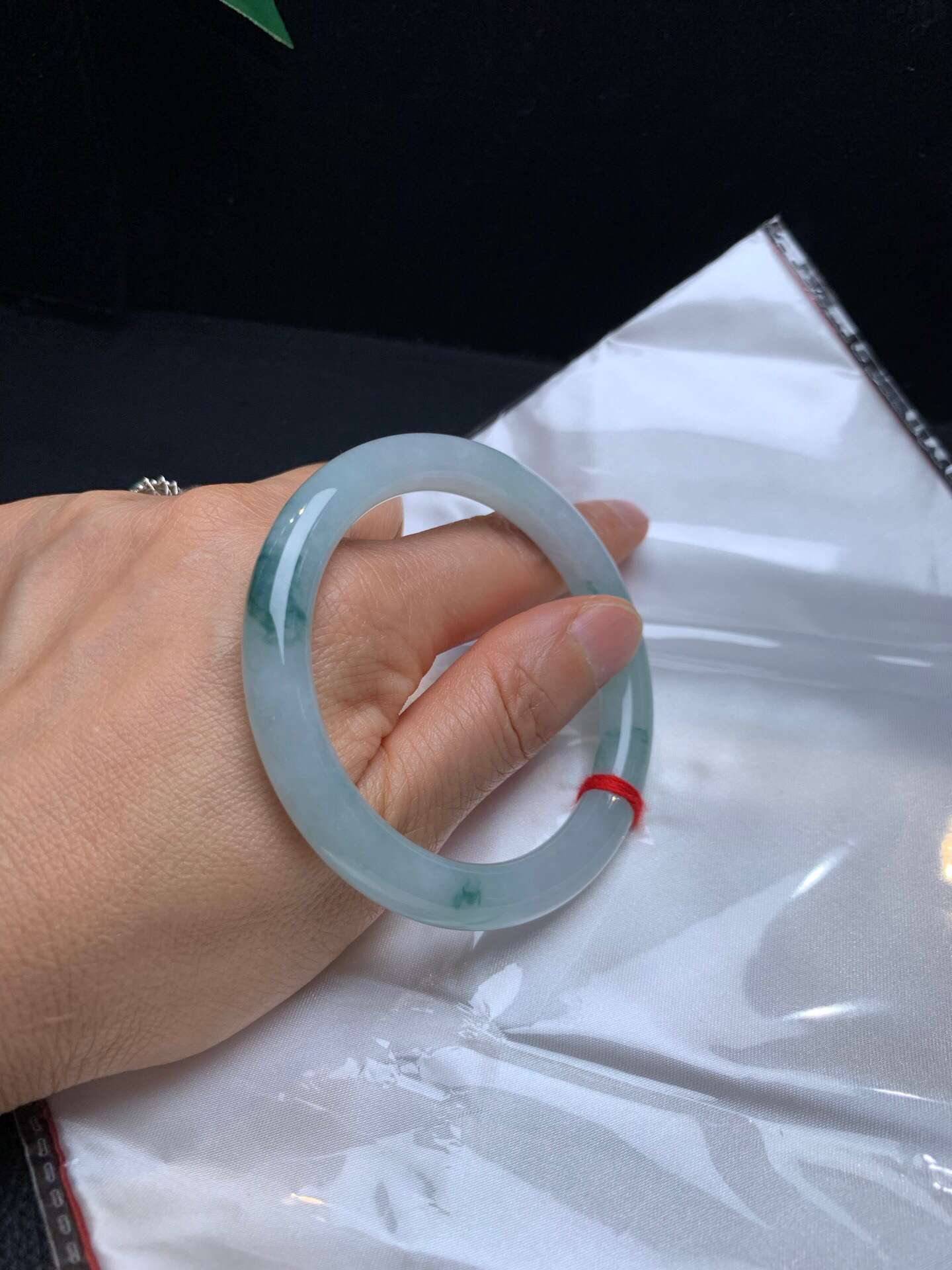620739,54.5冰晴细条正圈,9.6-7.8mm 整条冰冰的,纯净干净,一截略带晴底色,秀气完美