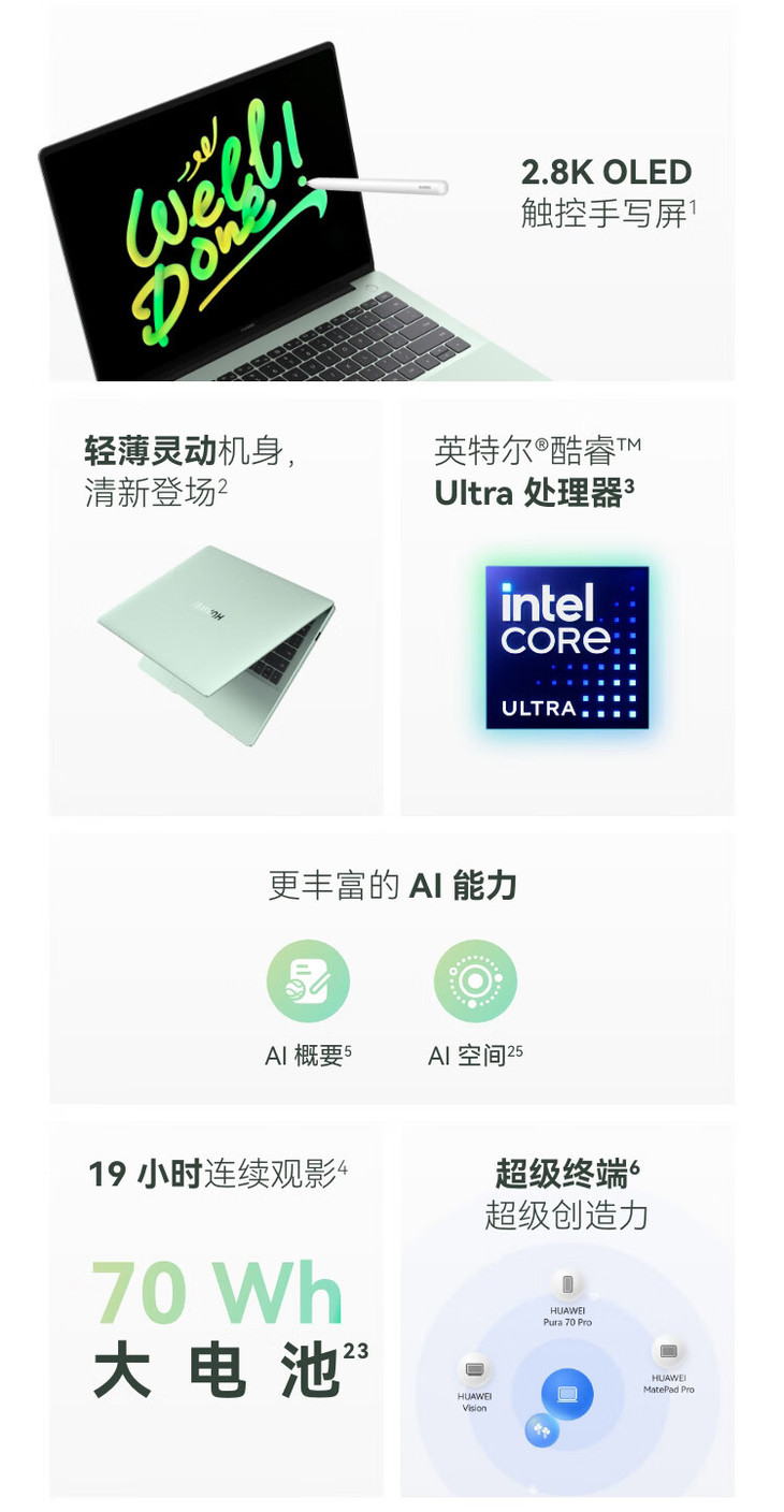 2024款华为笔记本 MateBook 14 酷睿 Ultra 5 Ultra 7 三色可选