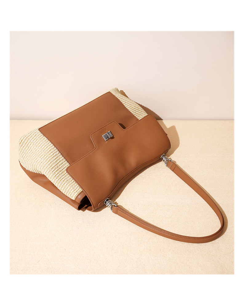 【预售3天】2025新款小众包包女式夏季新款高级编制托特包通勤休闲单肩斜挎包F9923A