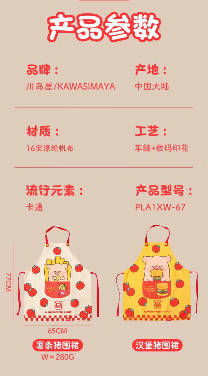 4楼Eubelle欧蓓 川岛屋lulu猪围裙厨房 可爱防油防水 活动价:38.8元