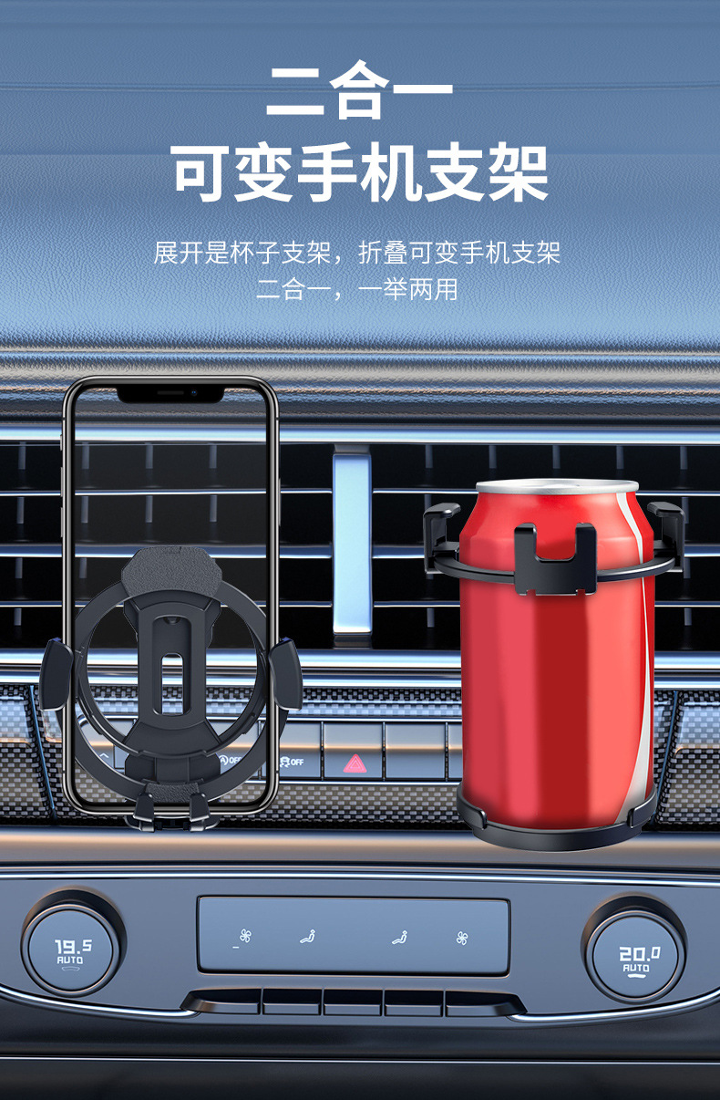 2024年新款多功能二合一汽车出风口导航支架重力手机车内水杯架