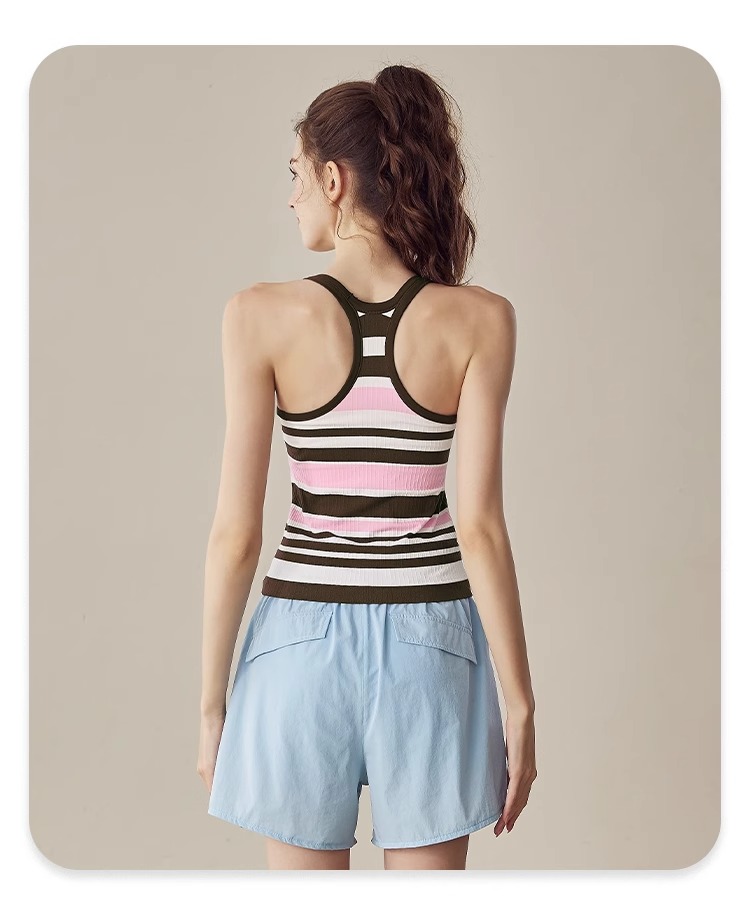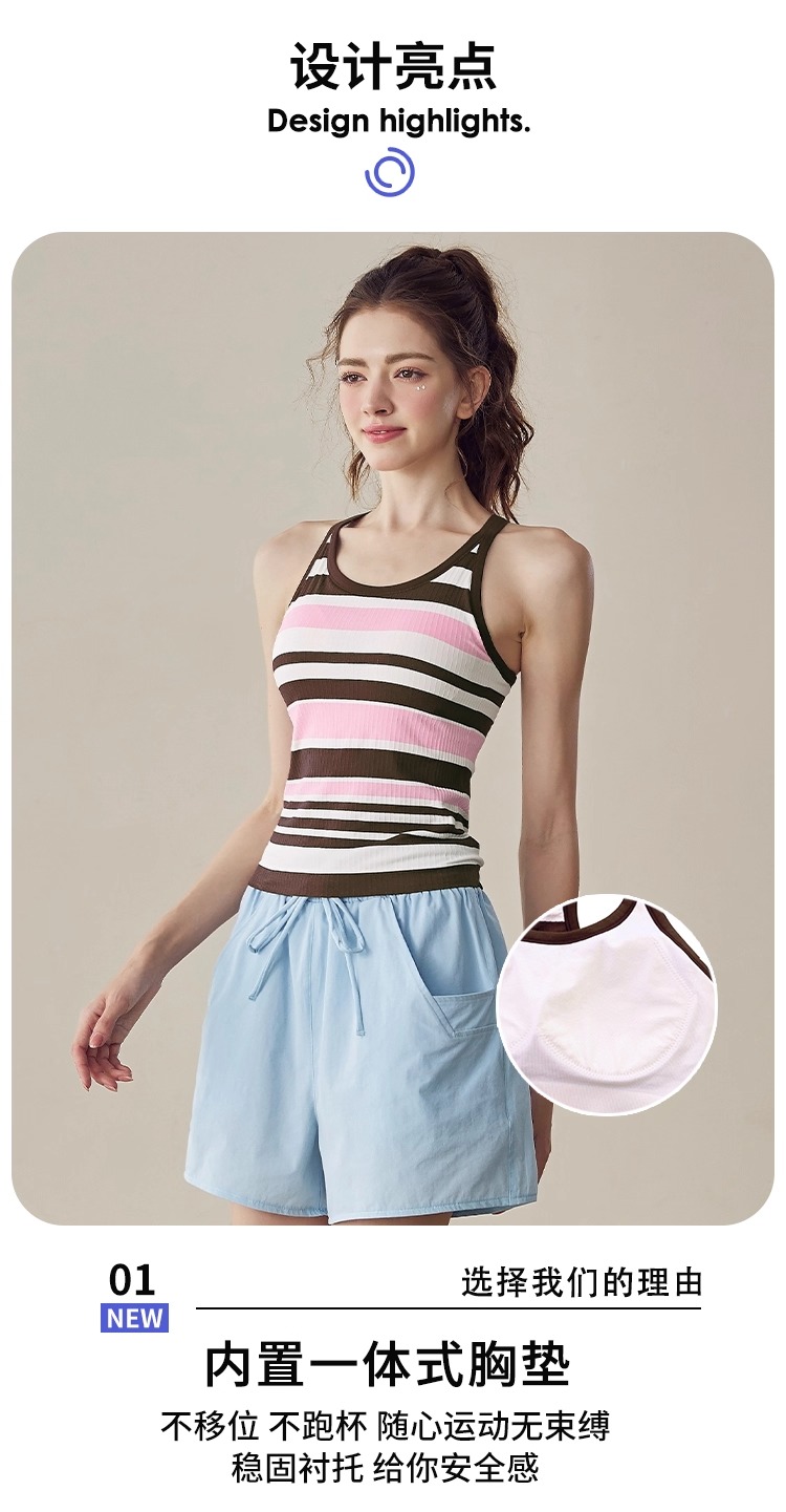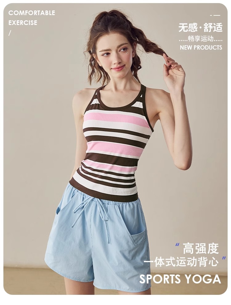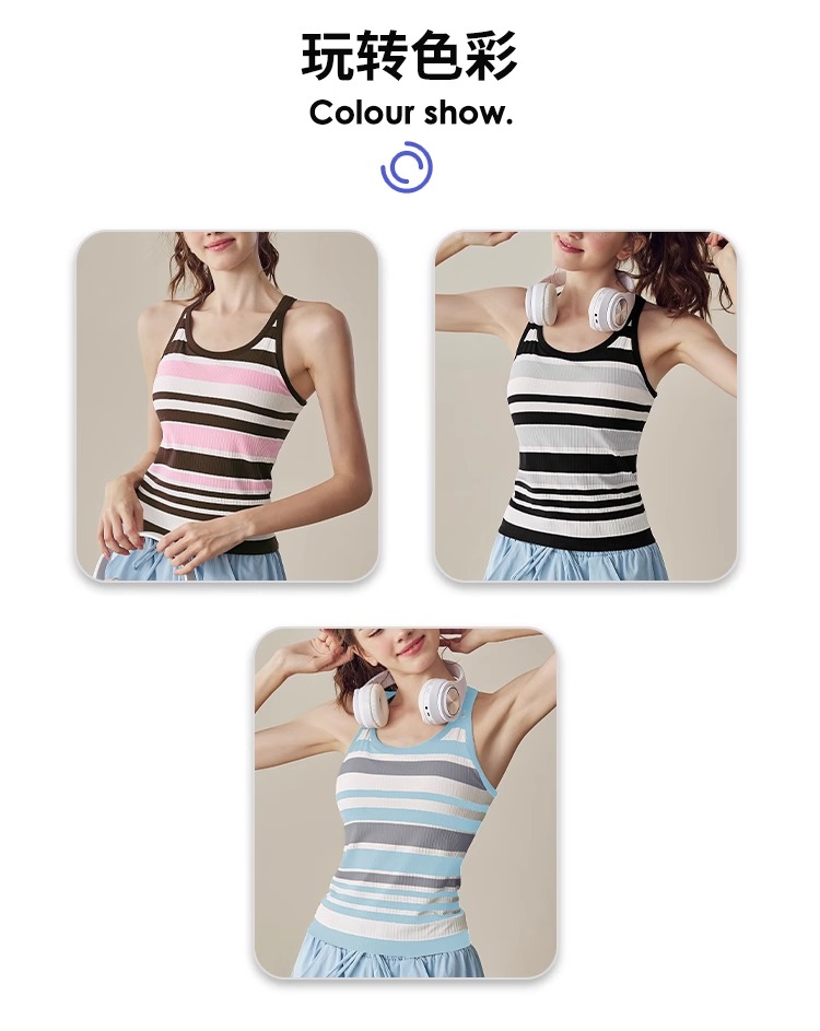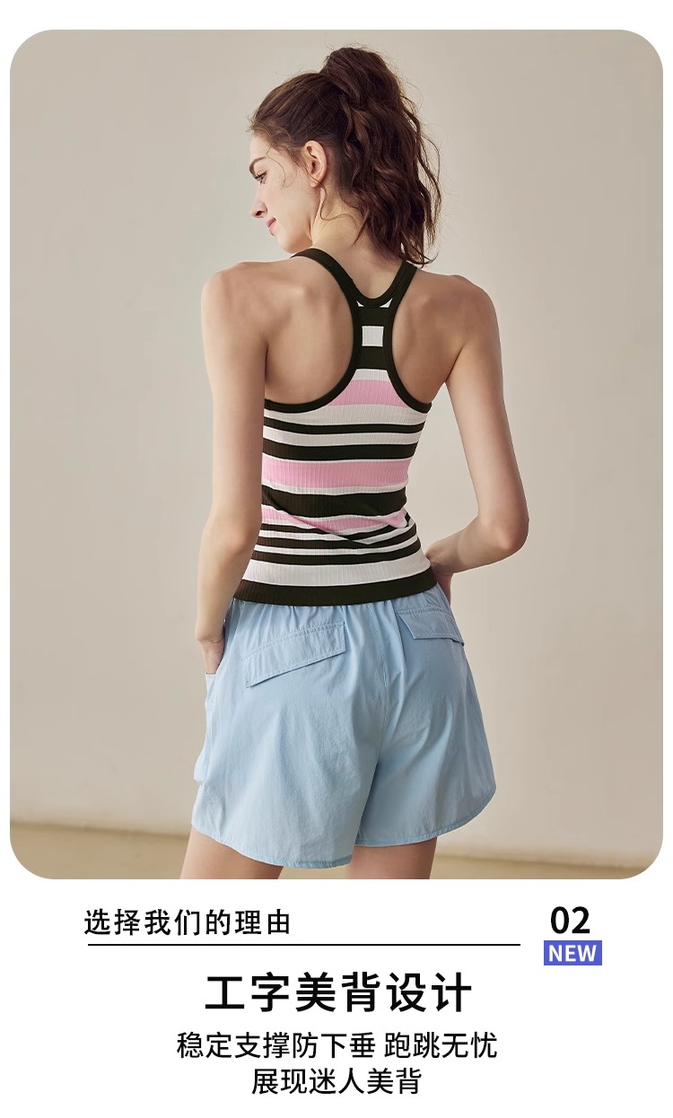 跃牌【美西西系列】2025新款韩版条纹针织工字美背带胸垫健身瑜伽背心BX-2516-23-26-主