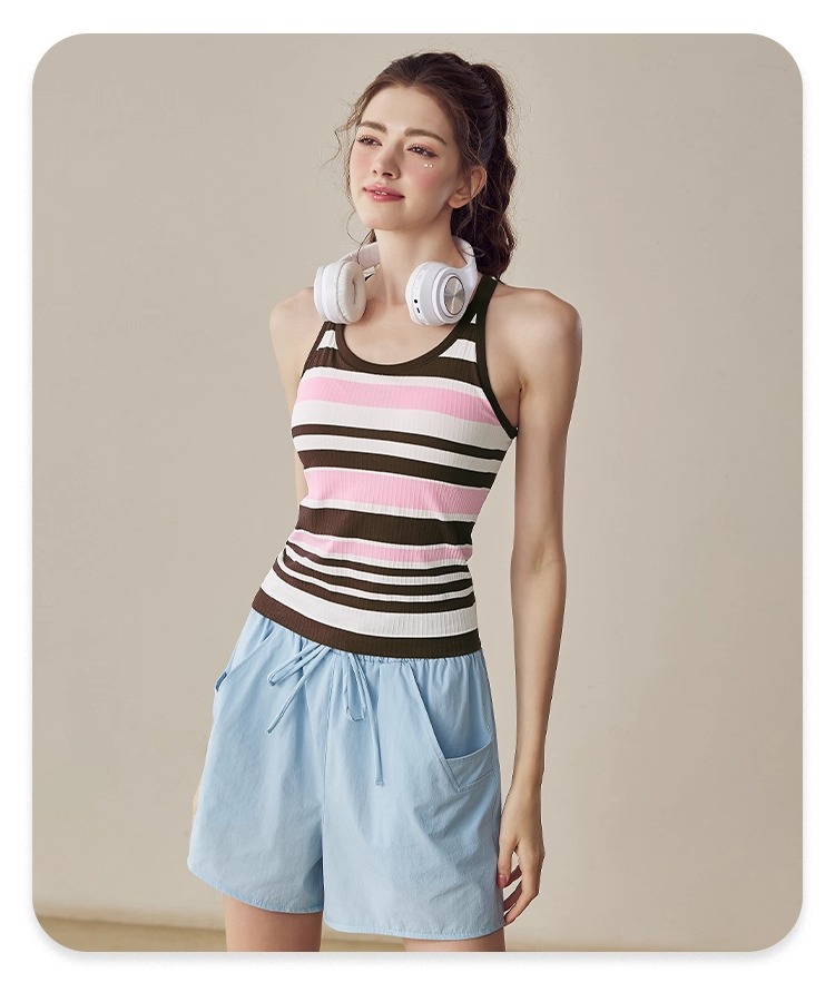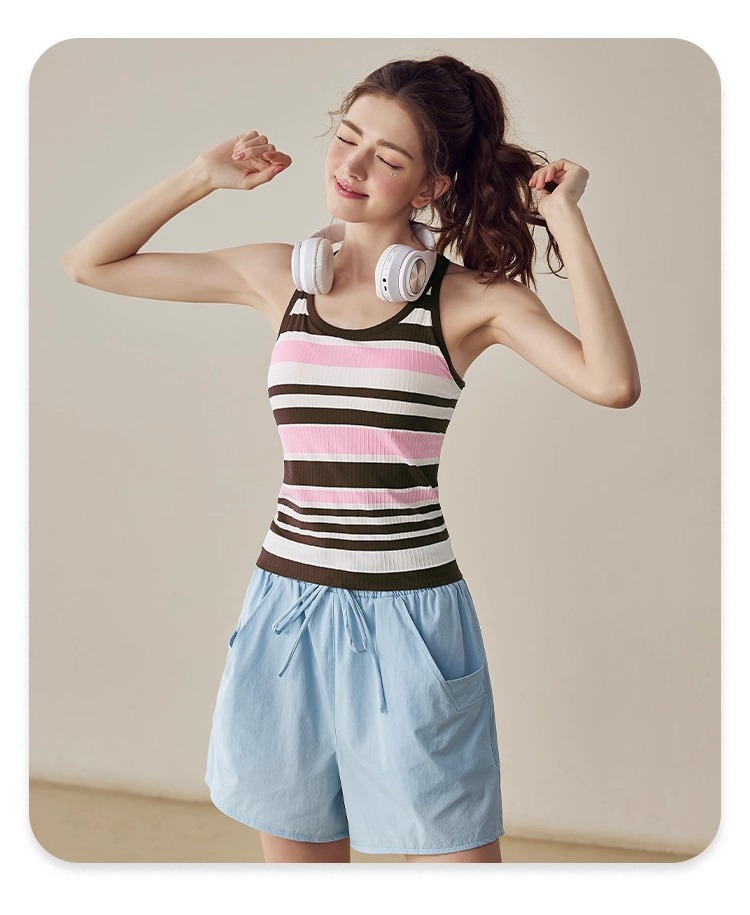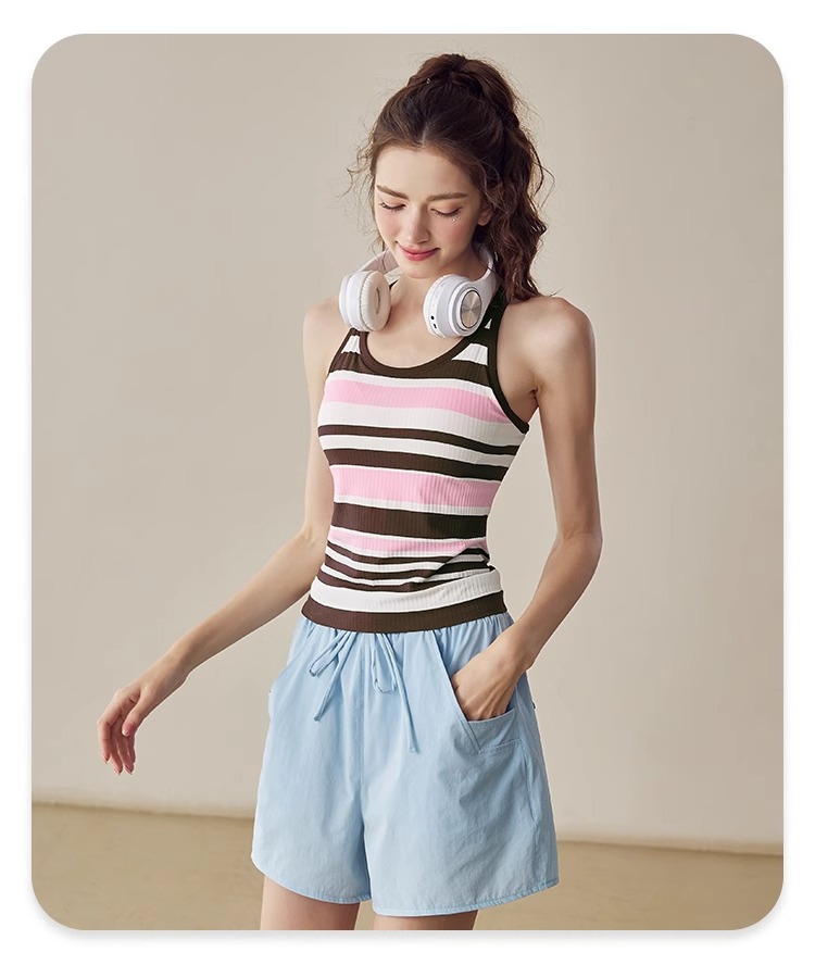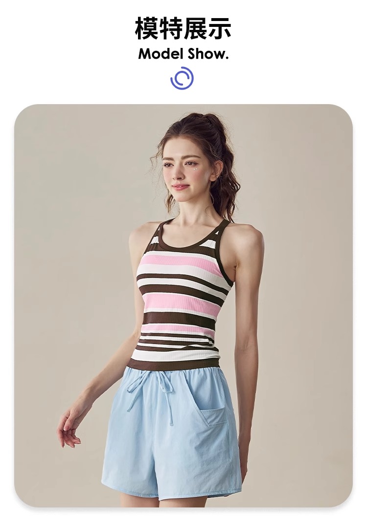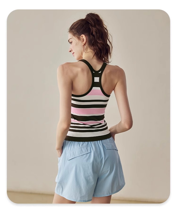 跃牌【美西西系列】2025新款韩版条纹针织工字美背带胸垫健身瑜伽背心BX-2516-23-26-主
