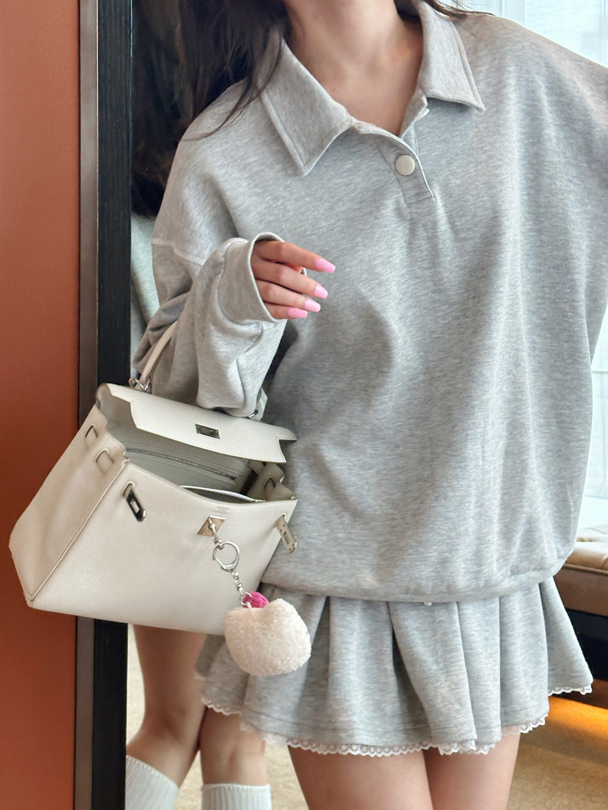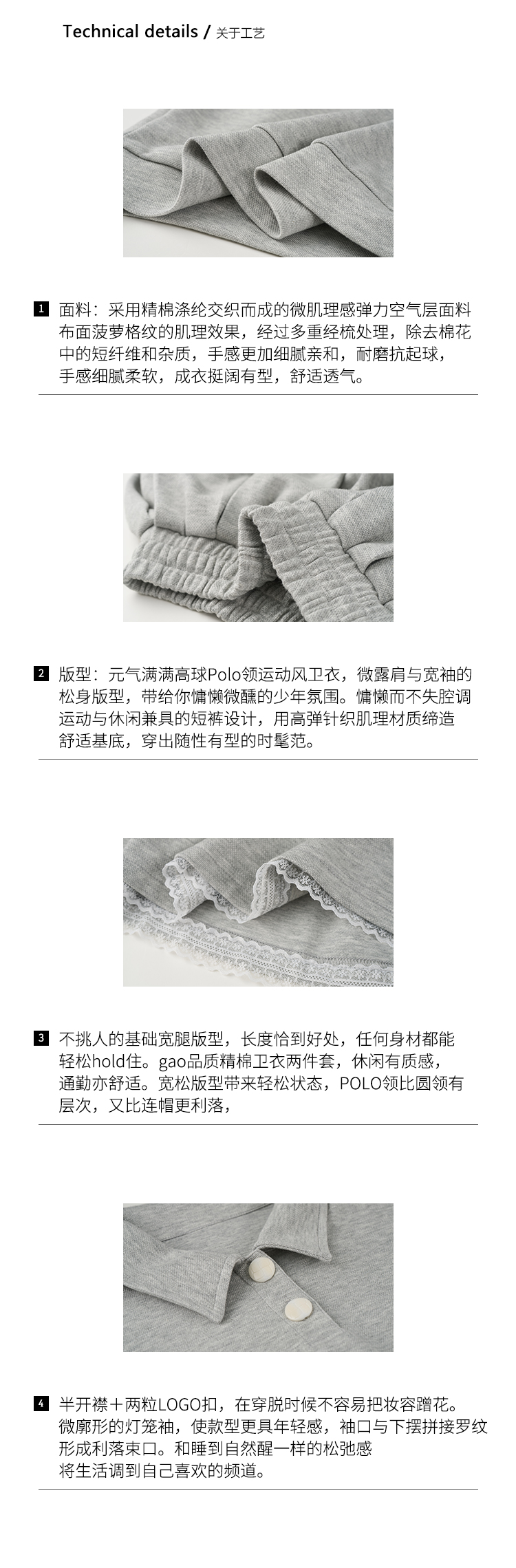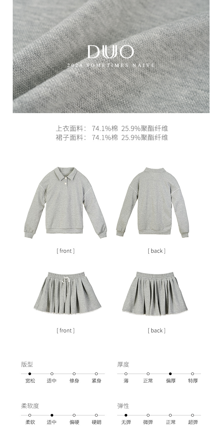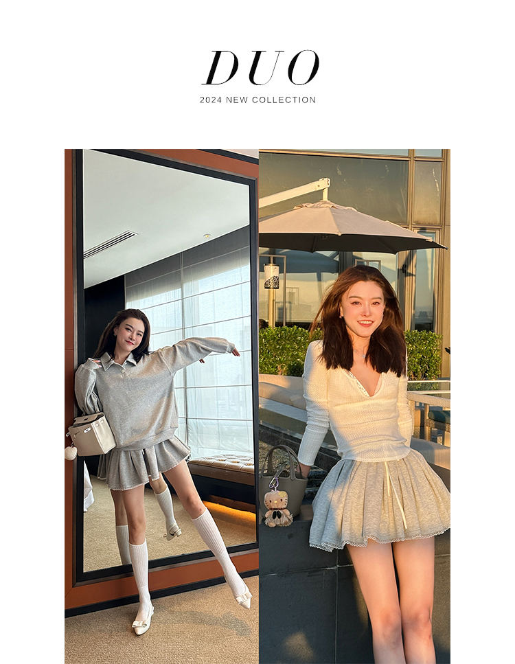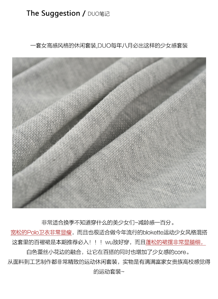 DUO智仙生 女高运动型录灰色宽松Polo卫衣和蕾丝百褶裙