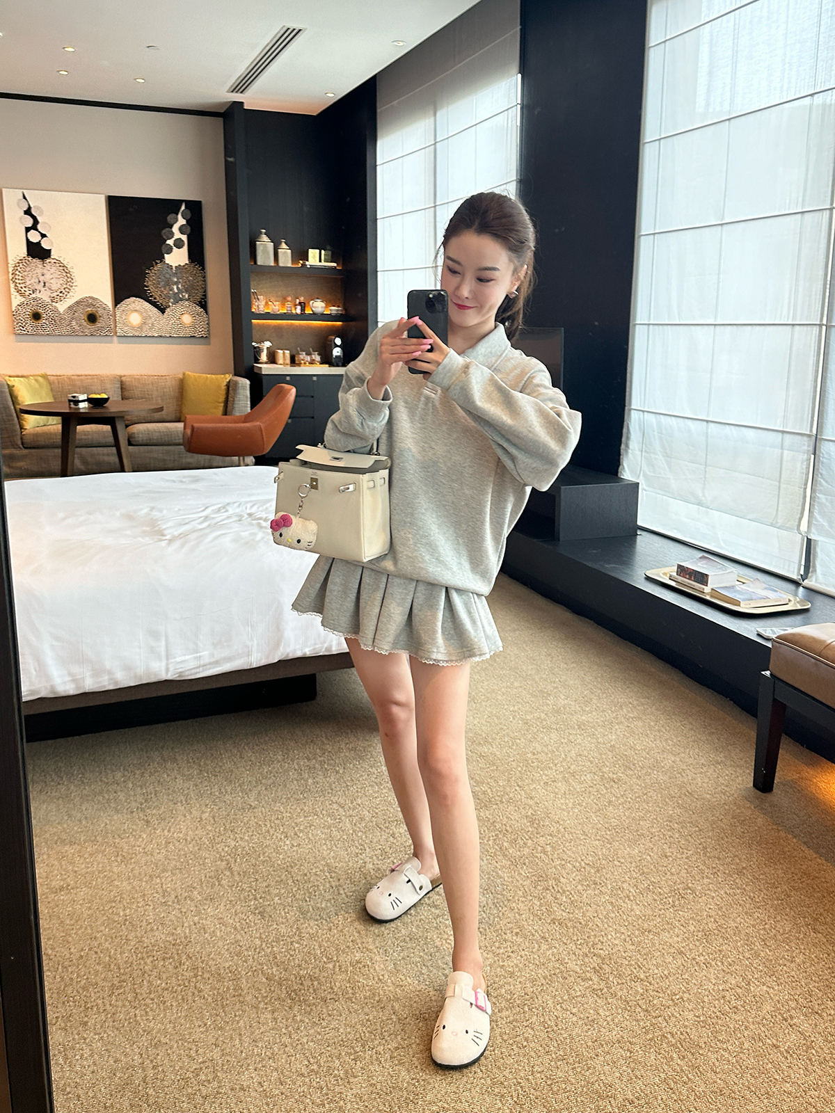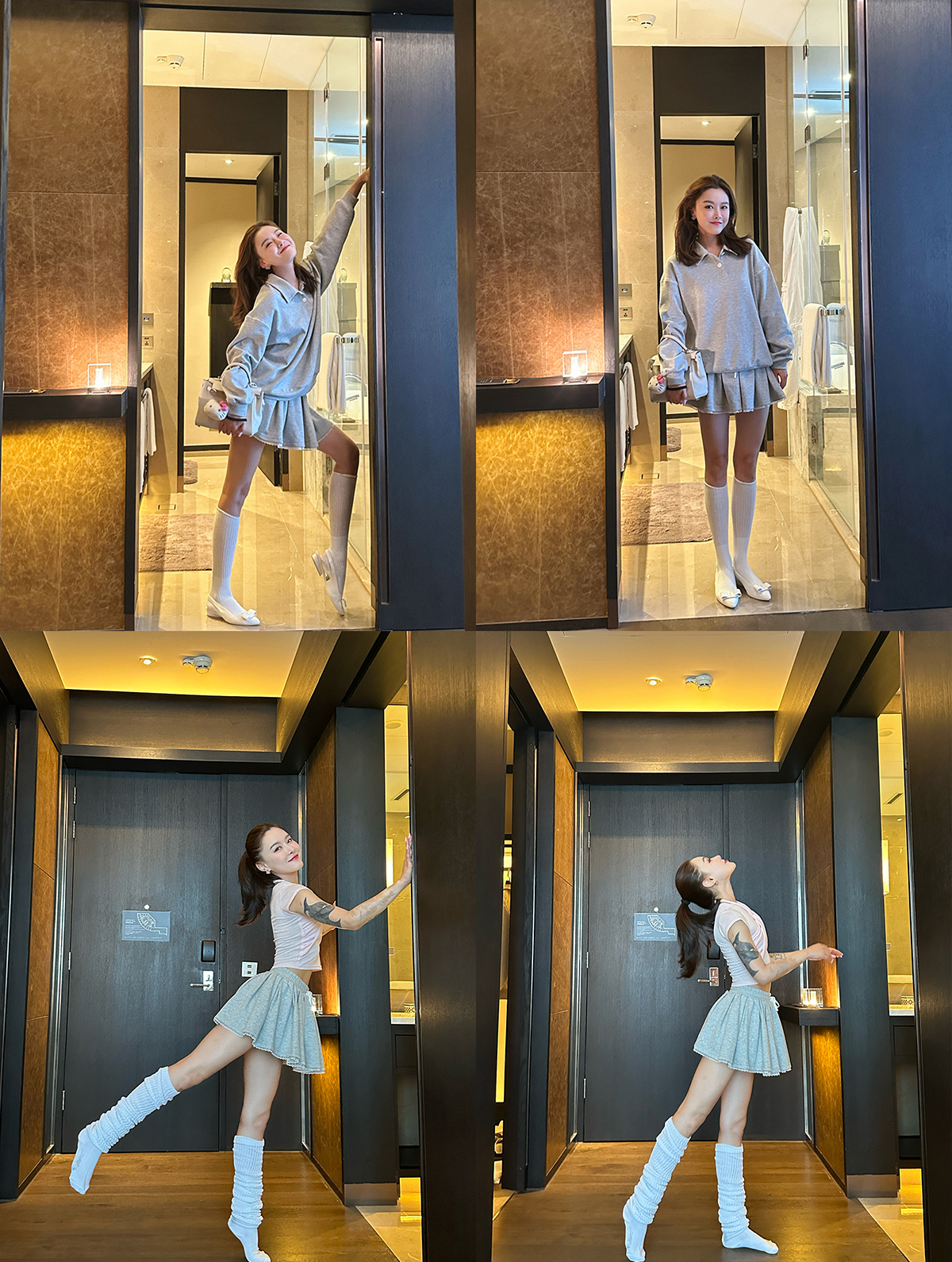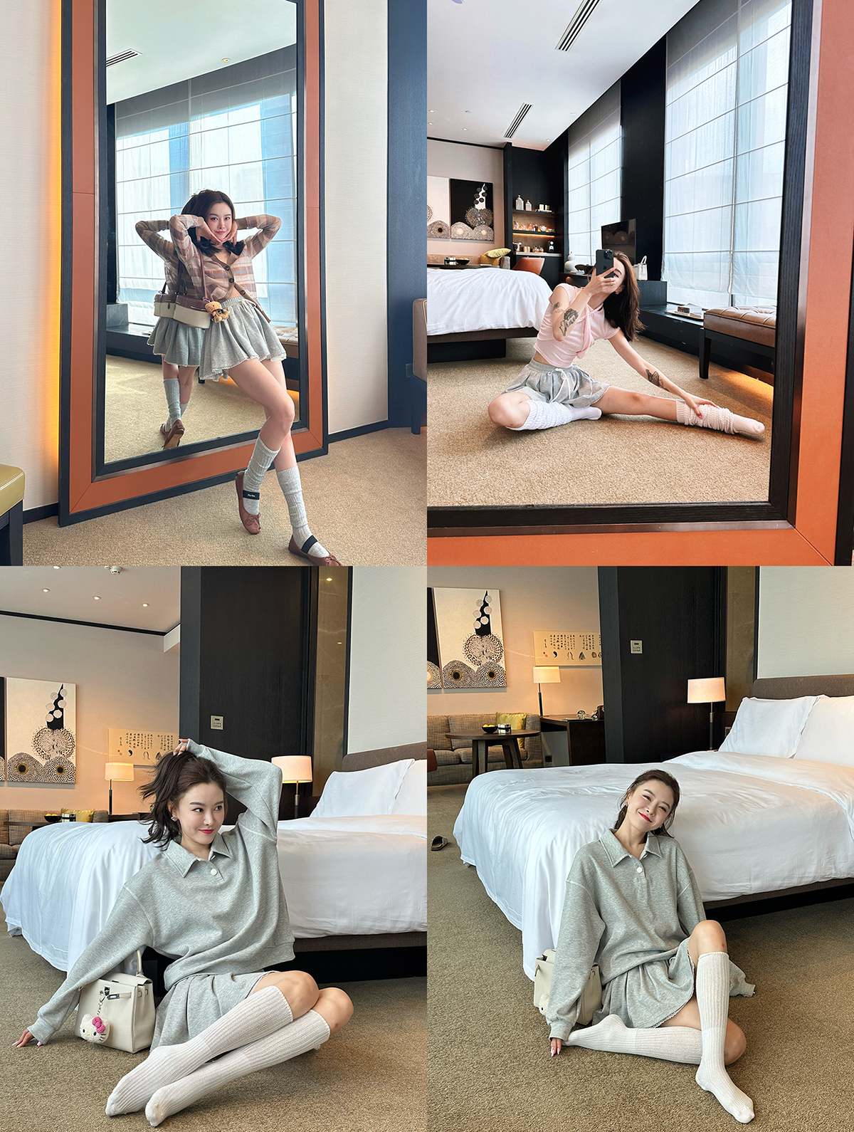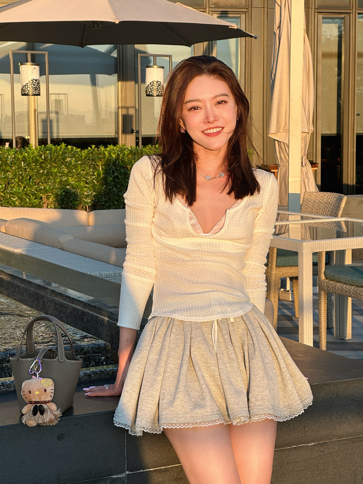 DUO智仙生 女高运动型录灰色宽松Polo卫衣和蕾丝百褶裙