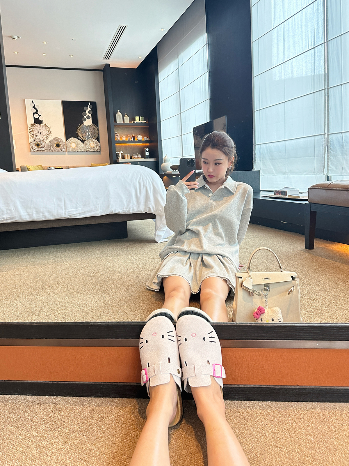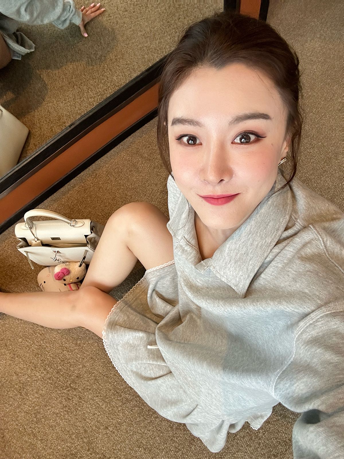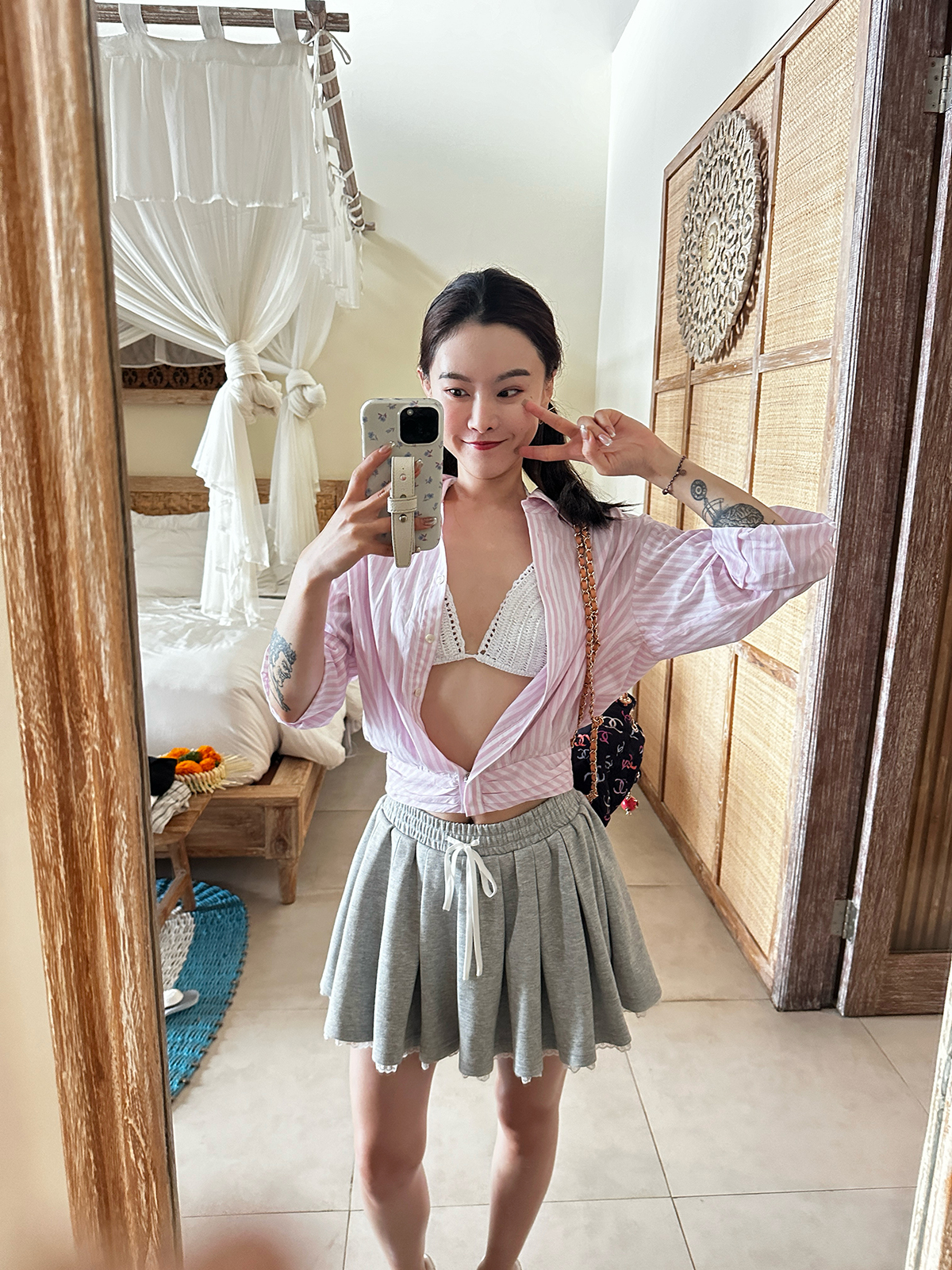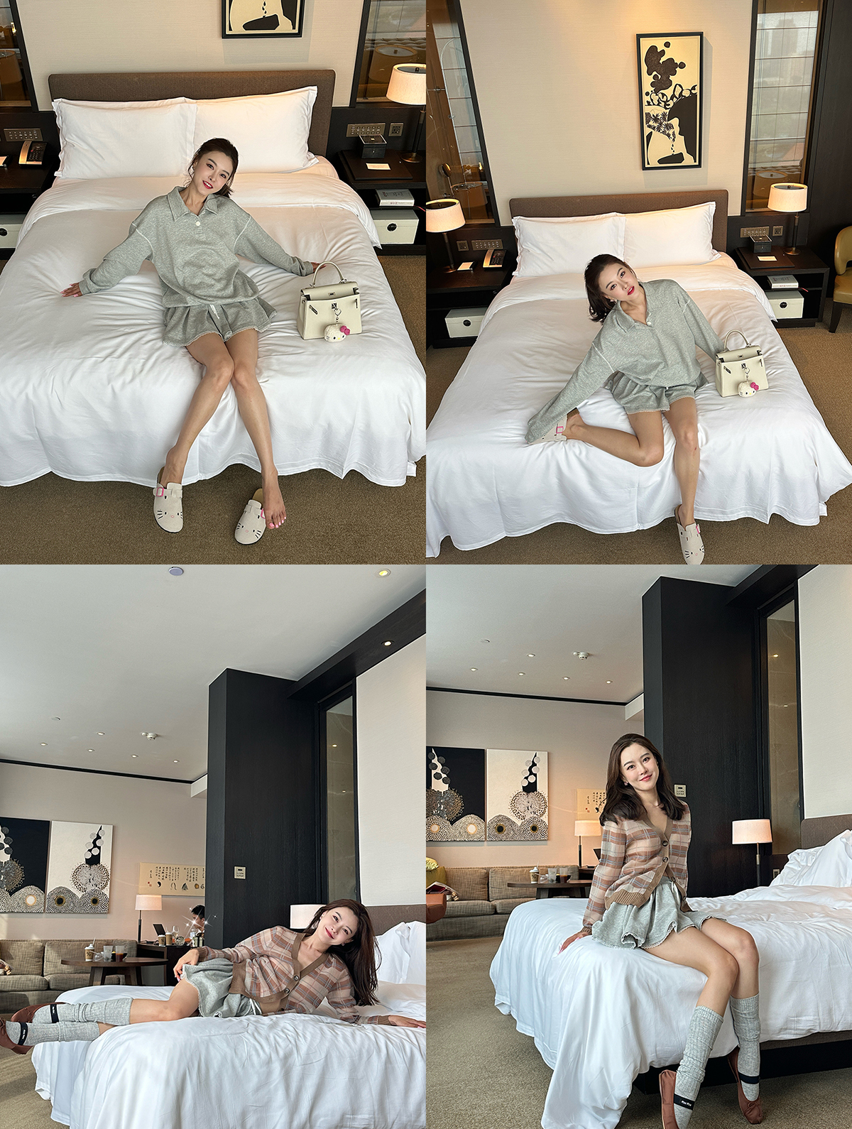 DUO智仙生 女高运动型录灰色宽松Polo卫衣和蕾丝百褶裙
