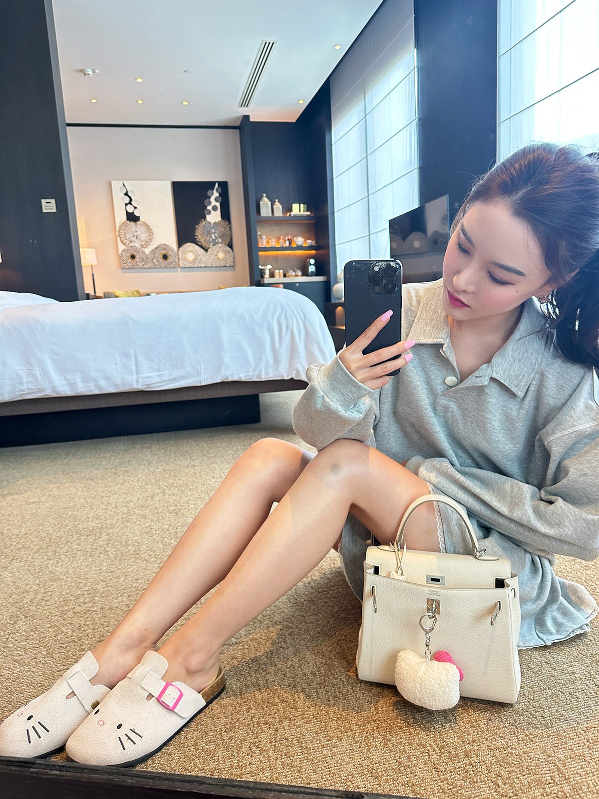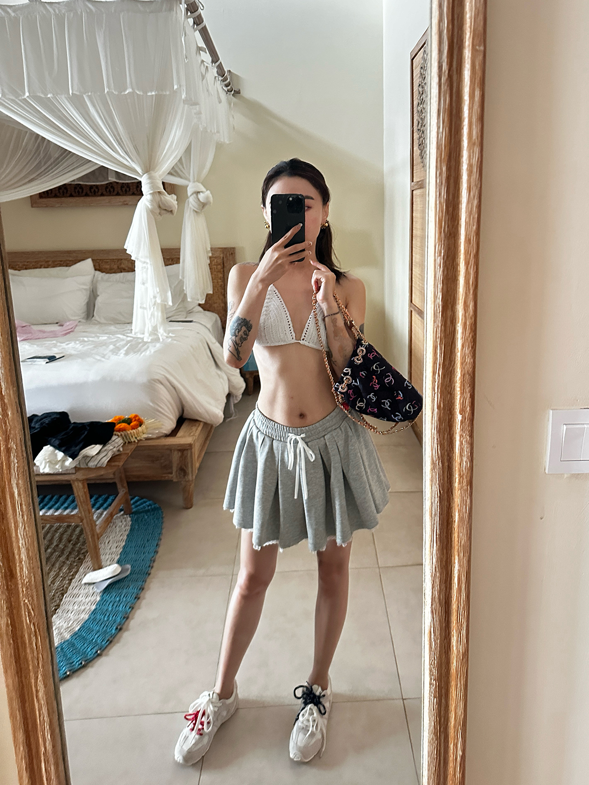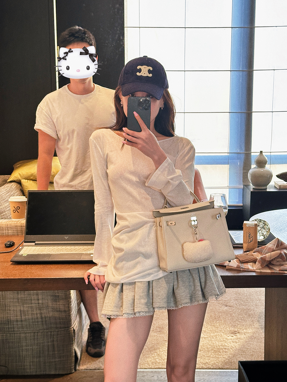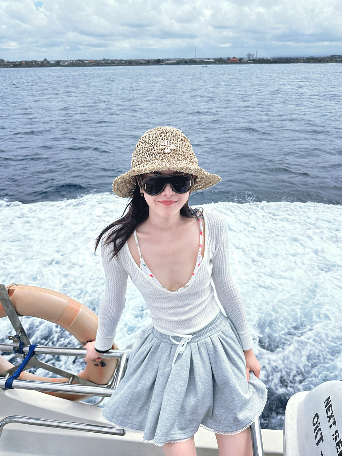 DUO智仙生 女高运动型录灰色宽松Polo卫衣和蕾丝百褶裙